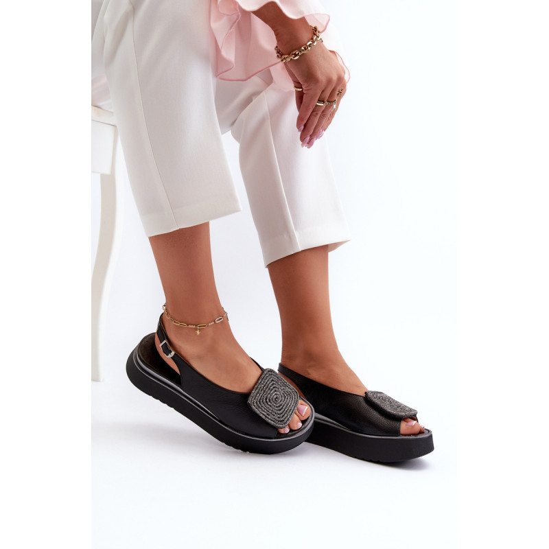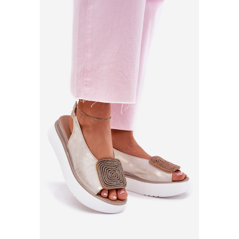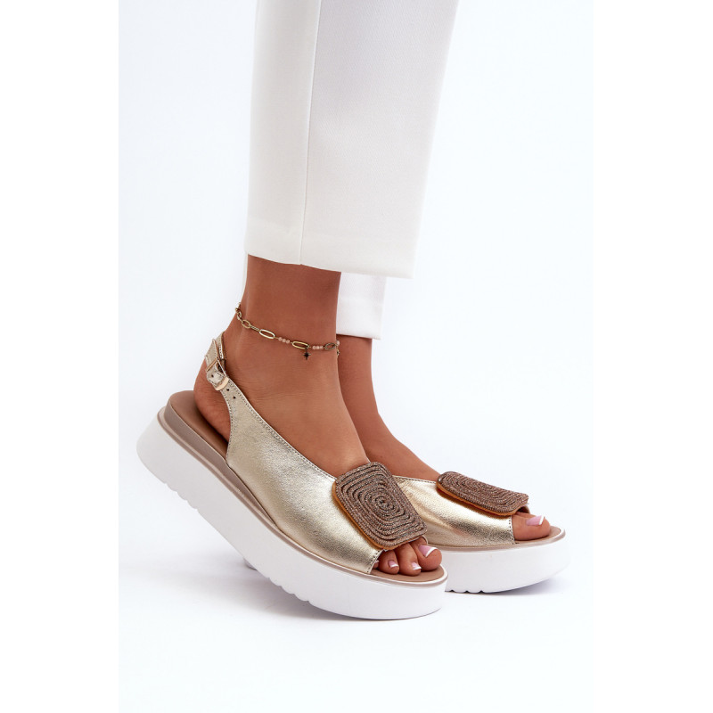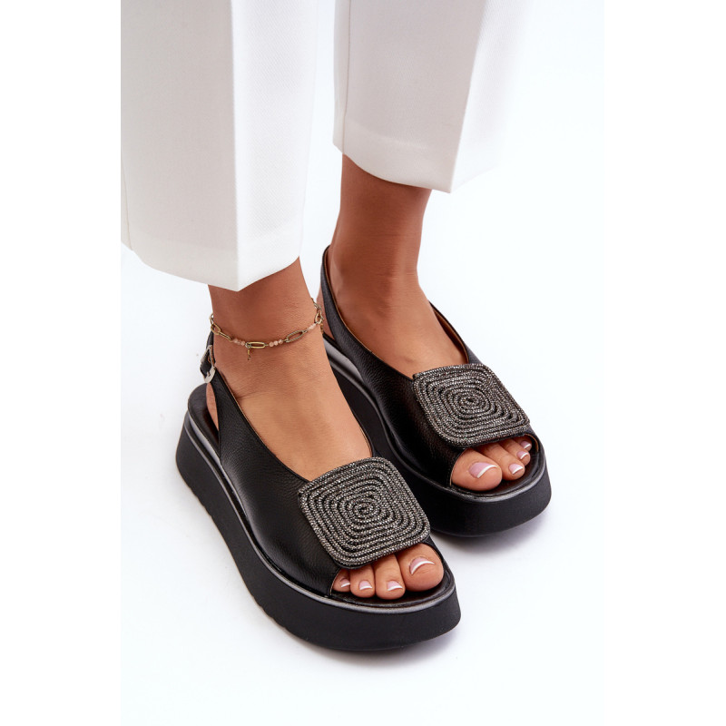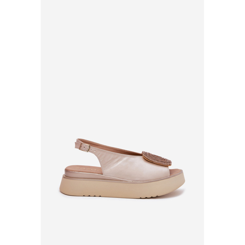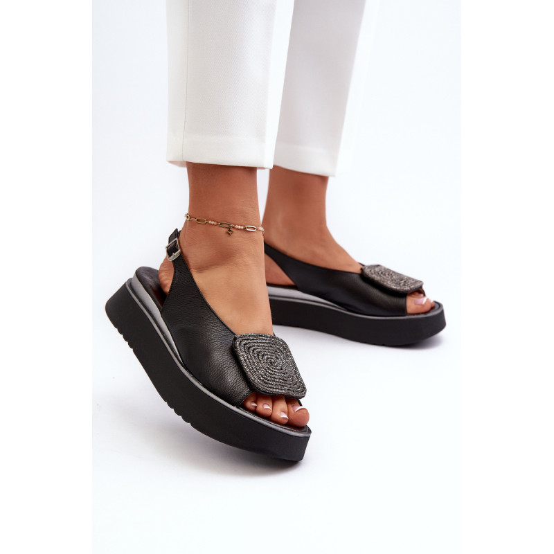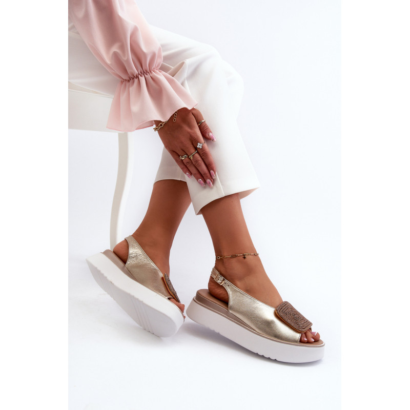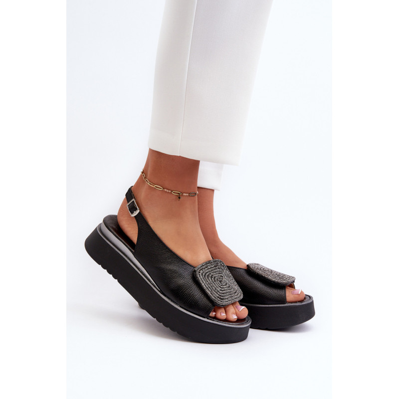 Moteriškos basutės iš natūralios odos – tai klasikinio stiliaus ir patogumo derinys. Nustatyti ant platformos, jie užtikrina stabilumą ir komfortą nešiojant. Priekinė apdaila suteikia blizgesio, pabrėžia jų unikalią išvaizdą. Užsegamas reguliuojamu dirželiu su sagtimi, užtikrinančiu puikų prigludimą prie pėdos. Šios basutės ne tik stilingos, bet ir praktiškos bei funkcionalios – puikiai tiks įvairioms progoms. Rinkdamiesi dydį, žiūrėkite dydžių lentelę.
