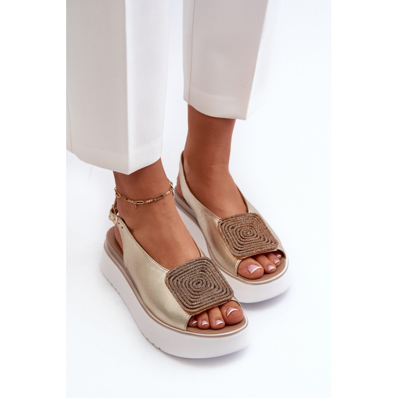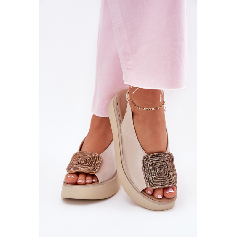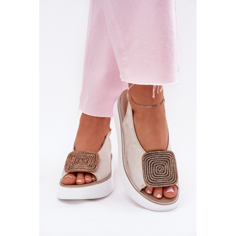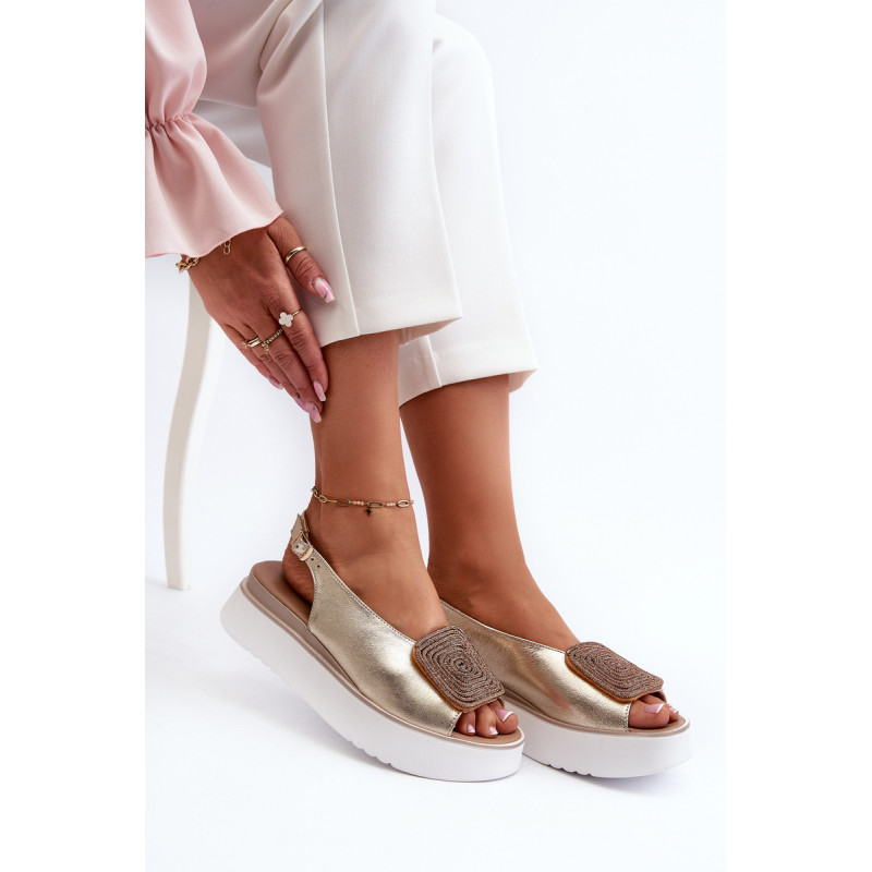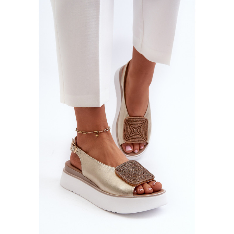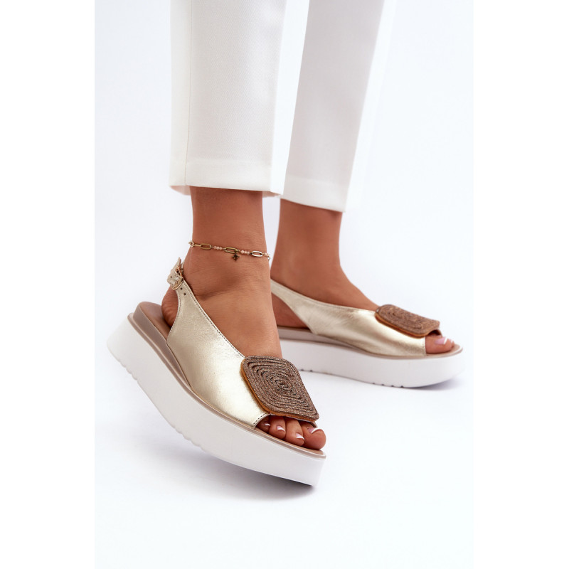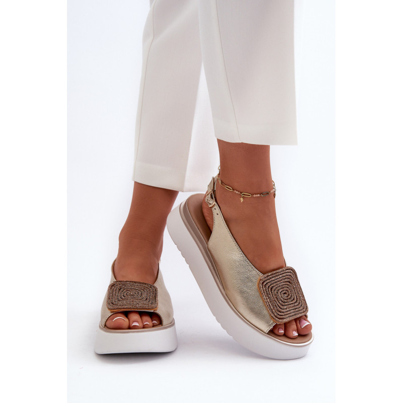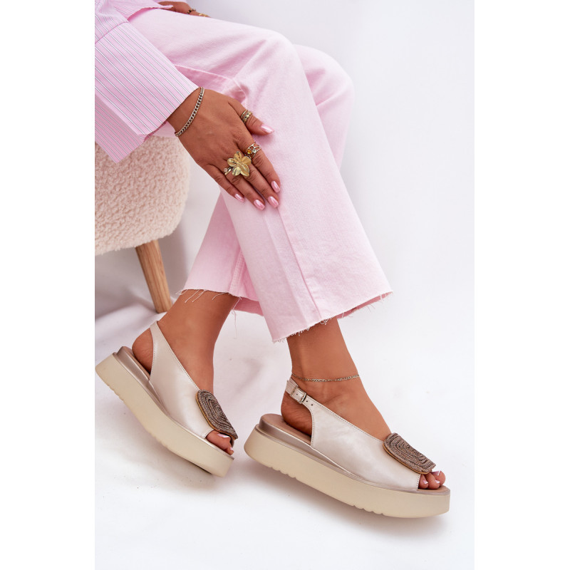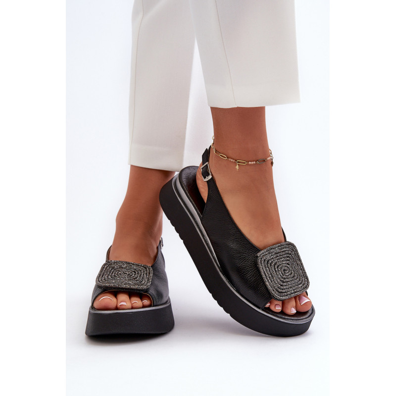 Moteriškos basutės iš natūralios odos – tai klasikinio stiliaus ir patogumo derinys. Nustatyti ant platformos, jie užtikrina stabilumą ir komfortą nešiojant. Priekinė apdaila suteikia blizgesio, pabrėžia jų unikalią išvaizdą. Užsegamas reguliuojamu dirželiu su sagtimi, užtikrinančiu puikų prigludimą prie pėdos. Šios basutės ne tik stilingos, bet ir praktiškos bei funkcionalios – puikiai tiks įvairioms progoms. Rinkdamiesi dydį, žiūrėkite dydžių lentelę.