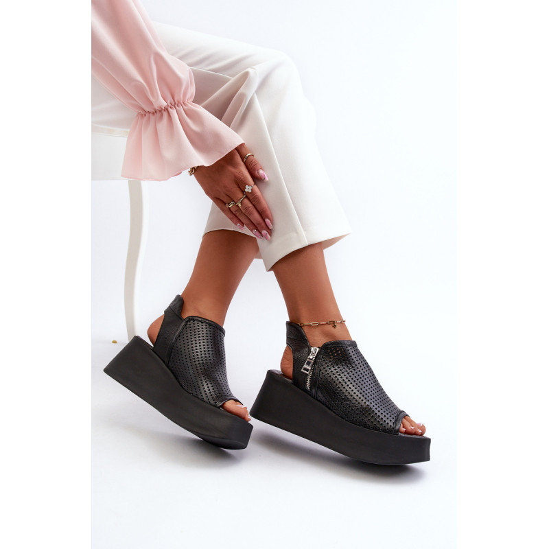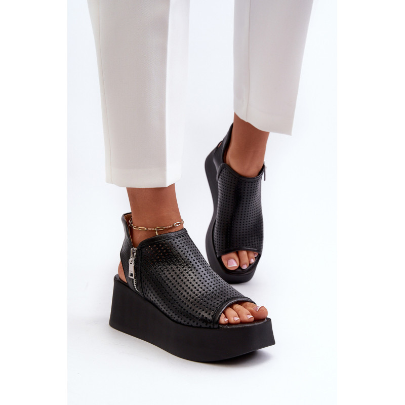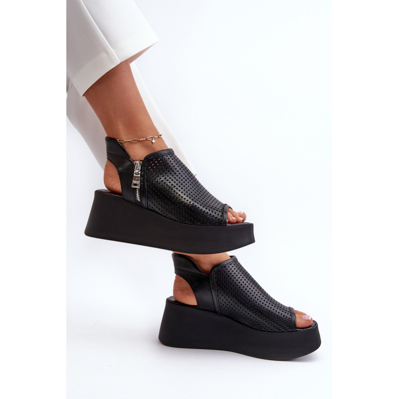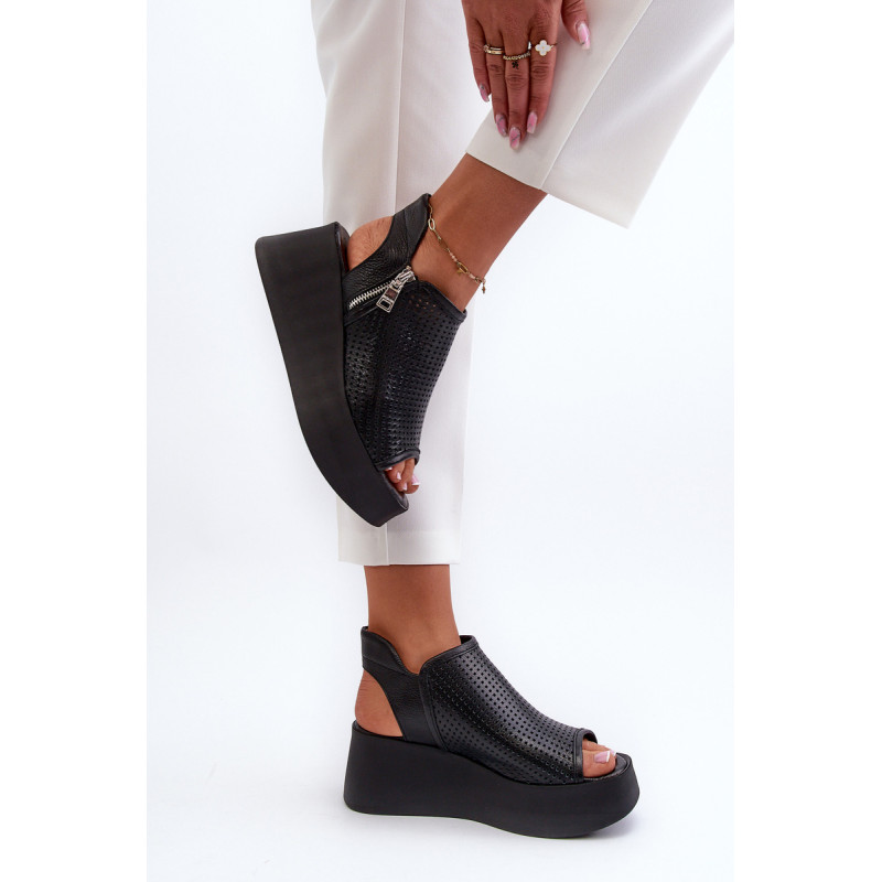 Iš natūralios odos pagaminti sandalai yra ne tik stilingi, bet ir patvarūs bei patogūs. Unikalus dizainas suteikia žavesio kiekvienai vasaros aprangai, pabrėžia individualų stilių. Pleištinis kulnas kartu su platforma suteikia papildomo aukščio. Idealiai tinka moterims, kurios vertina madą ir patogumą viename! Rinkdamiesi dydį, žiūrėkite dydžių lentelę.