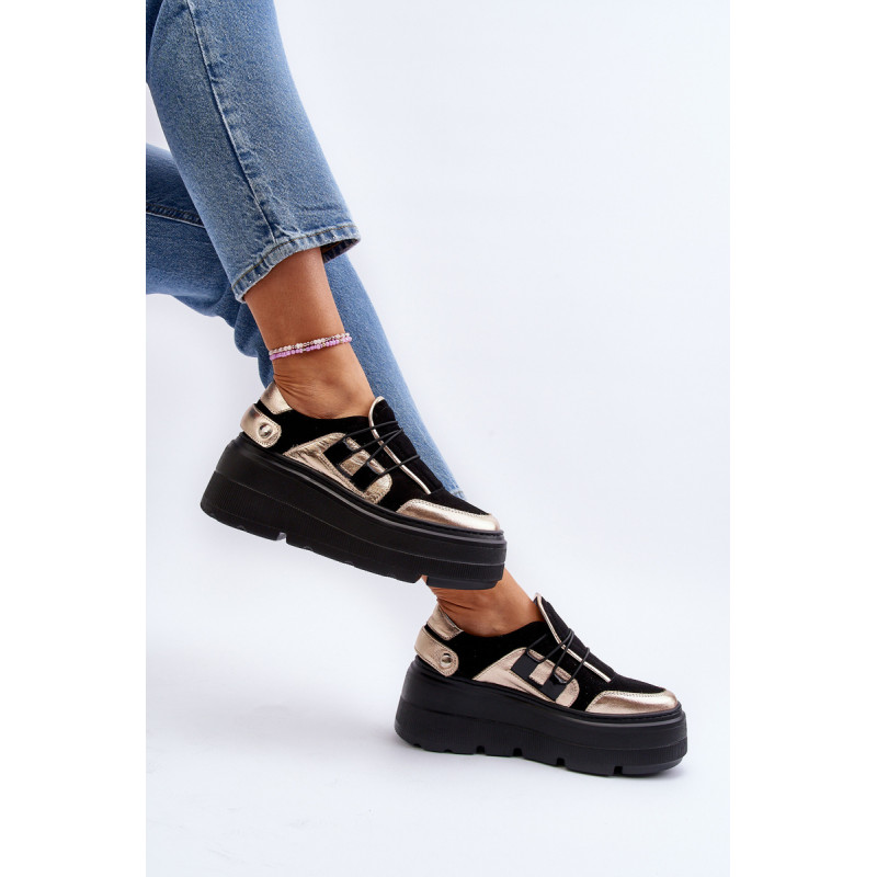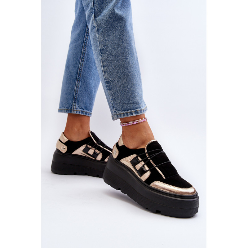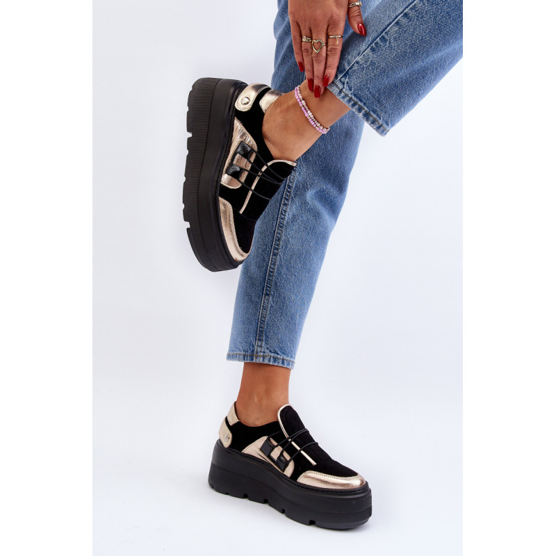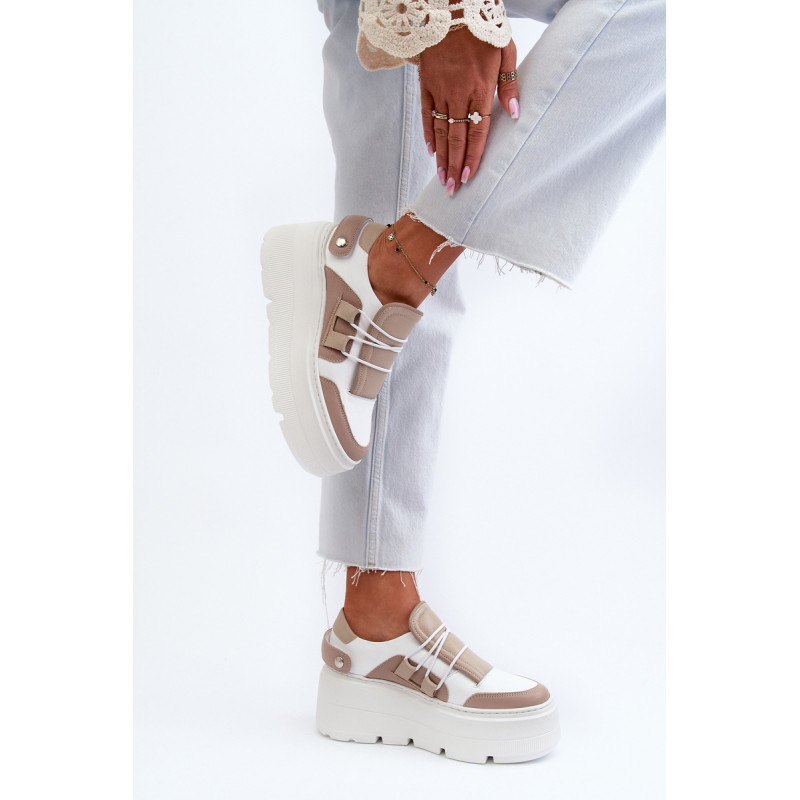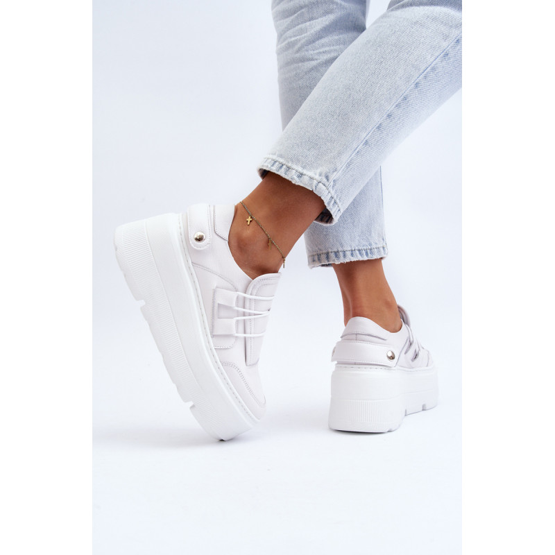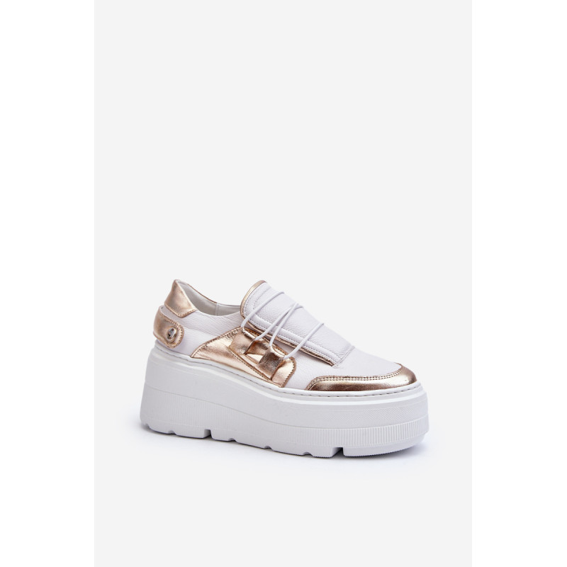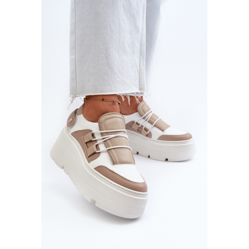 Moteriški sportiniai batai iš natūralios odos. Masyvi platforma daro juos itin stilingus. Odinis vidpadis suteikia komforto naudojimo metu. Suapvalinti kojų pirštai. Puikiai tinka kasdienei stilizacijai! Rinkdamiesi dydį, žiūrėkite dydžių lentelę.