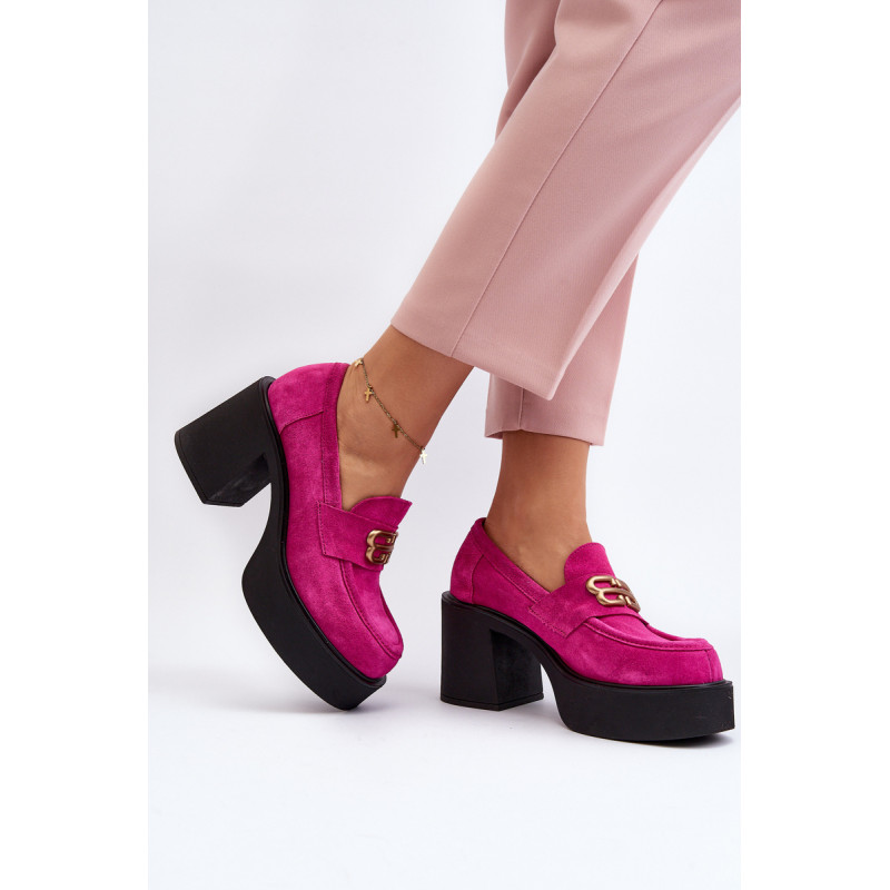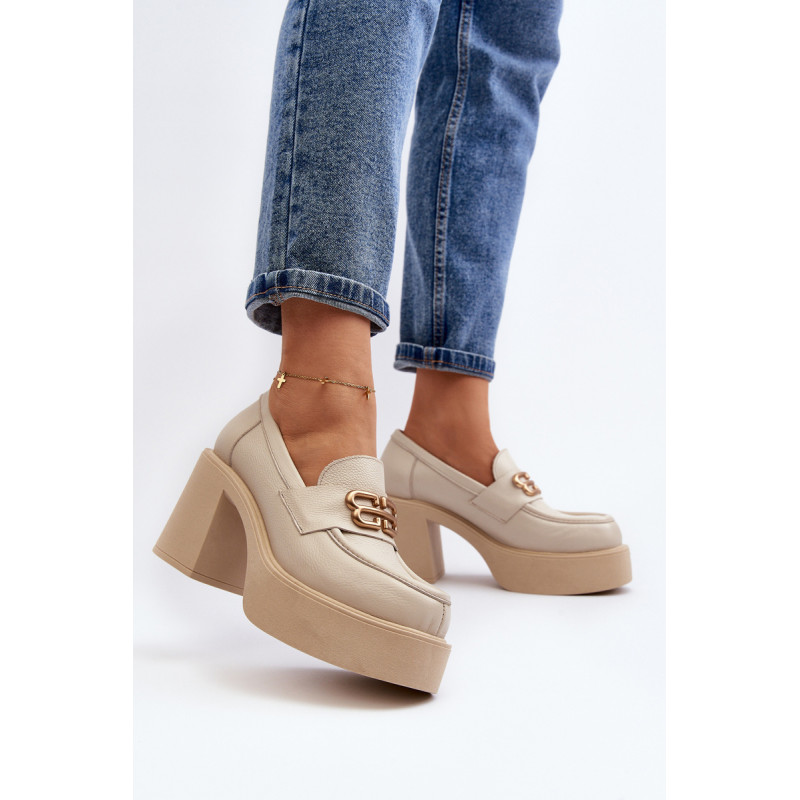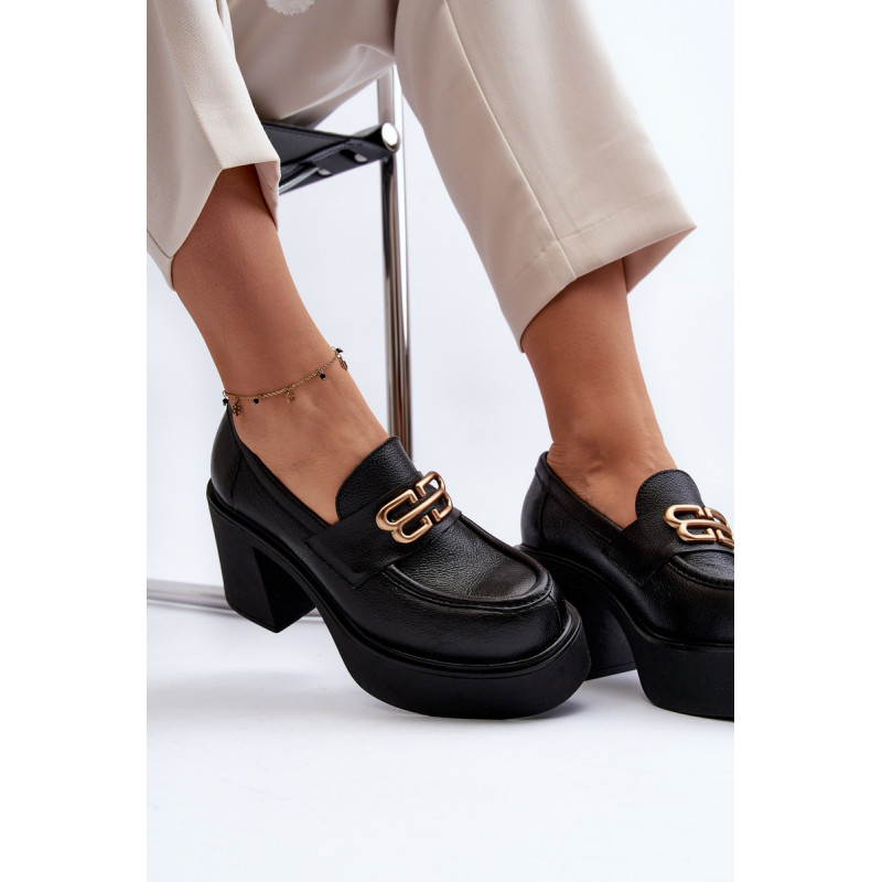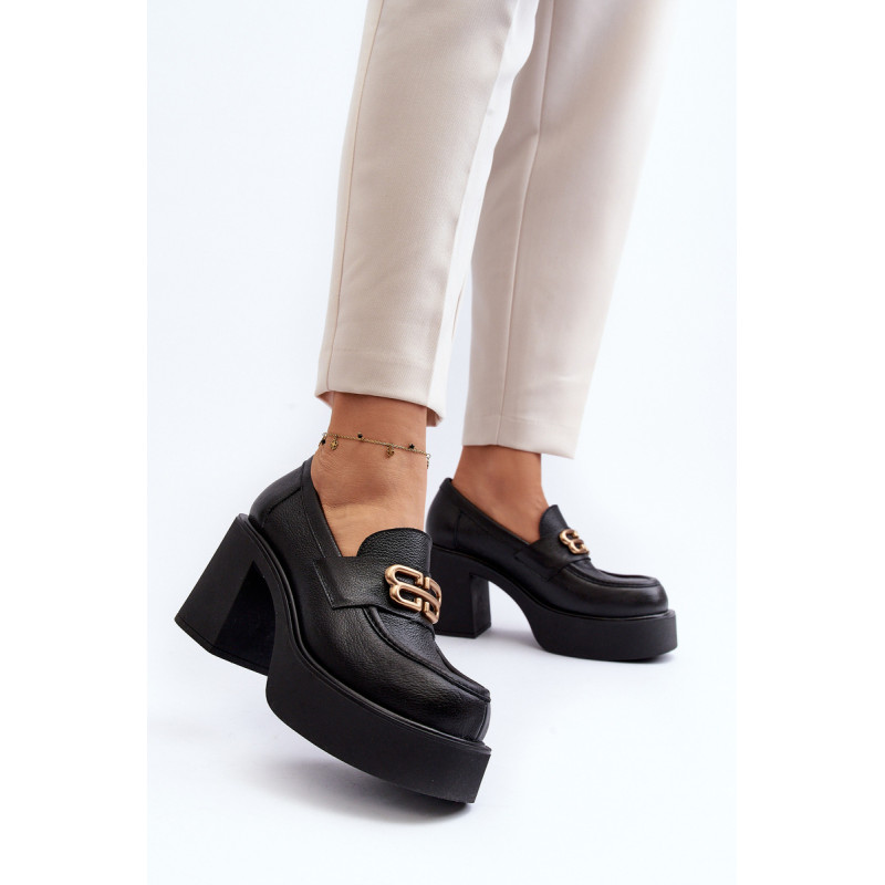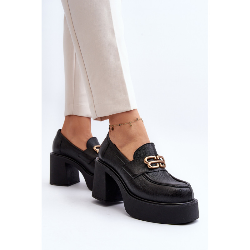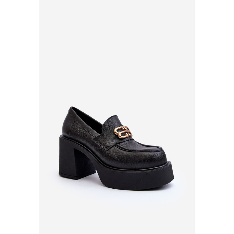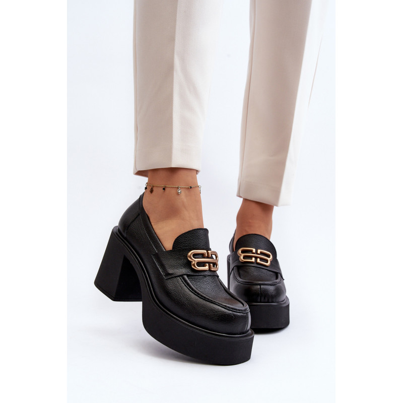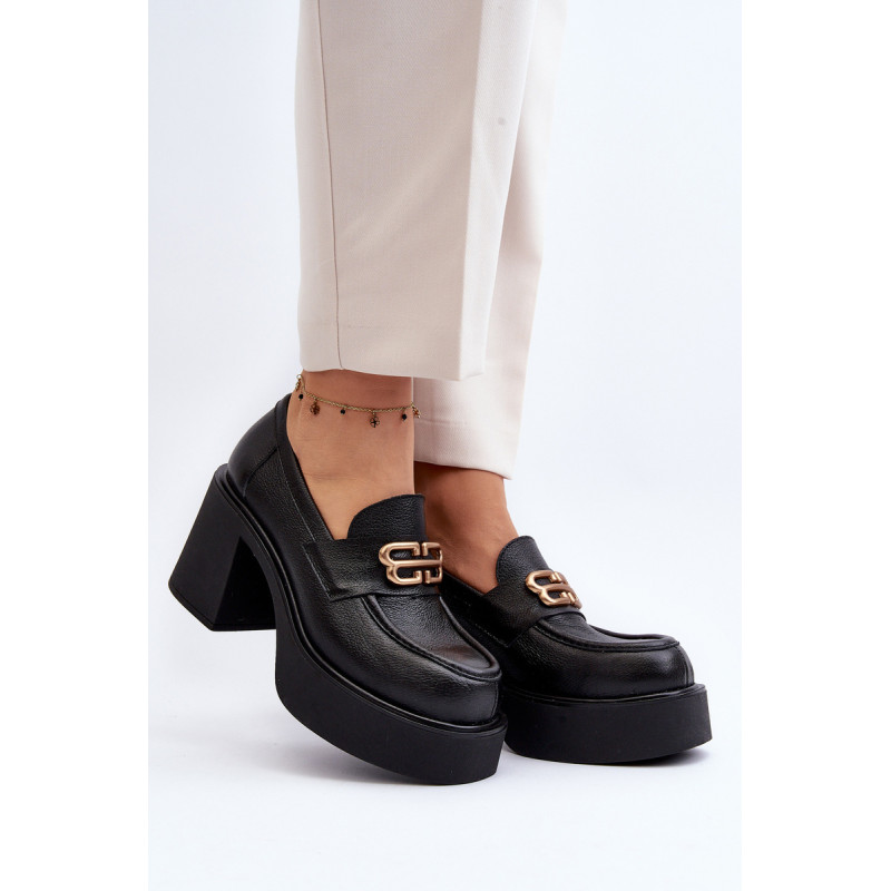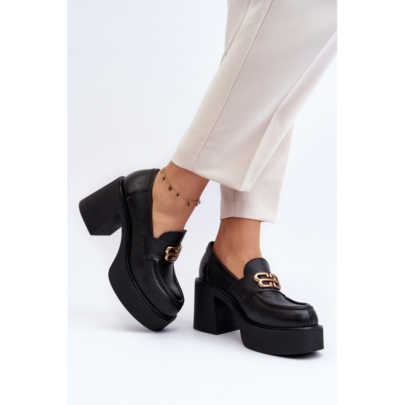 Moteriški aukštakulniai batai, kurių viršutinė dalis pagaminta iš natūralios odos. Nustatykite ant storo pado ir kulno masyvios kolonos pavidalu. Šis modelis turi apvalius pirštus. Odinis vidpadis suteiks komforto naudojimo metu. Priekyje yra dirželis ir dekoracija. Rinkdamiesi dydį žiūrėkite dydžių lentelę.