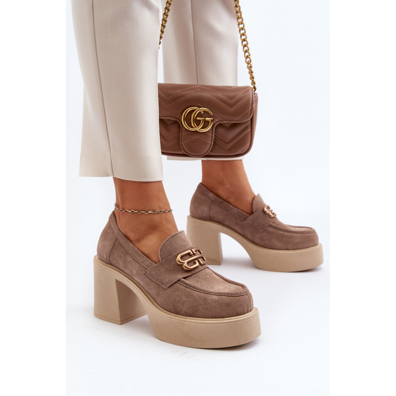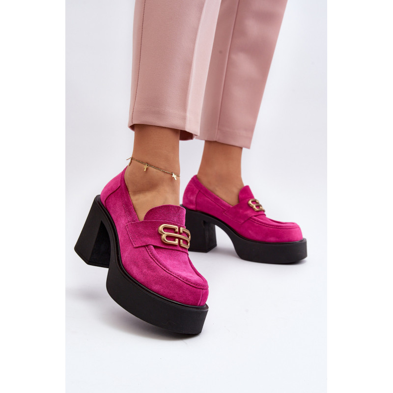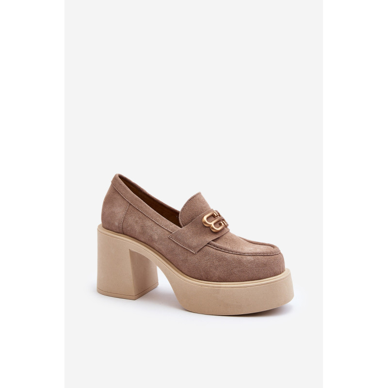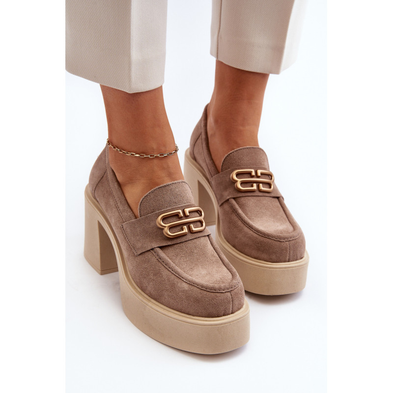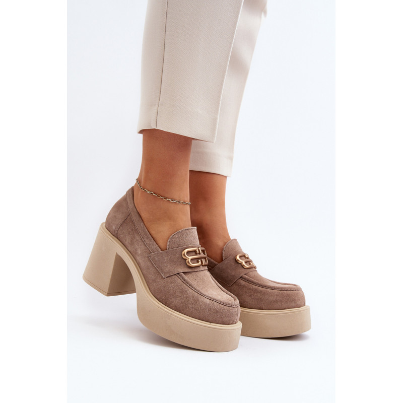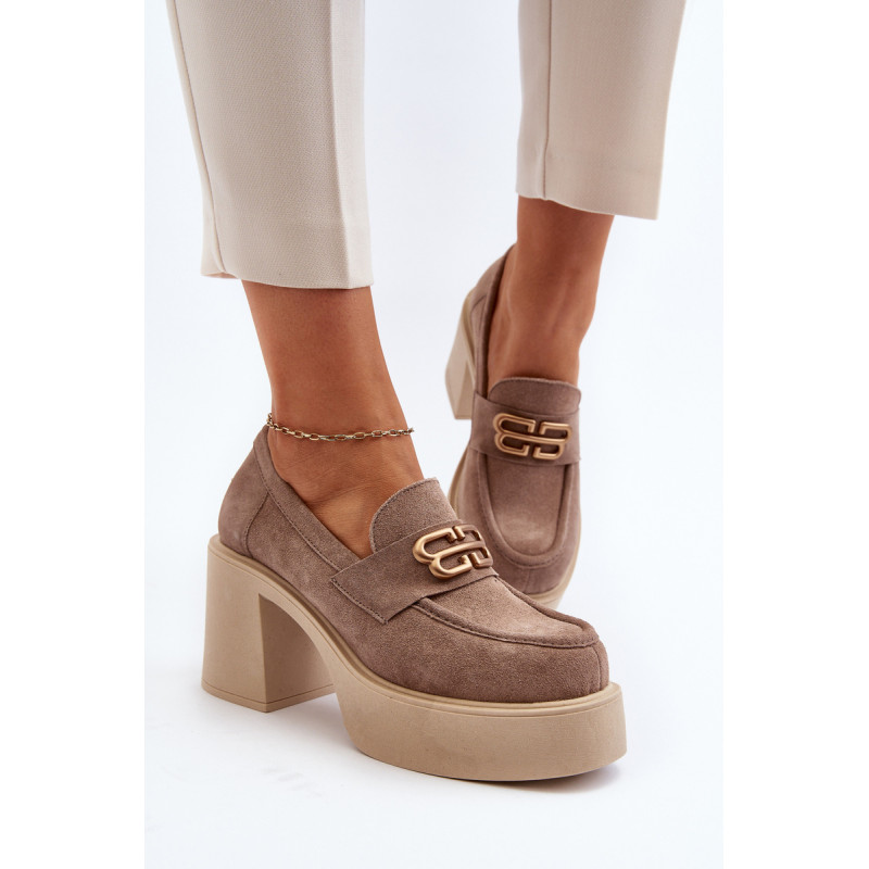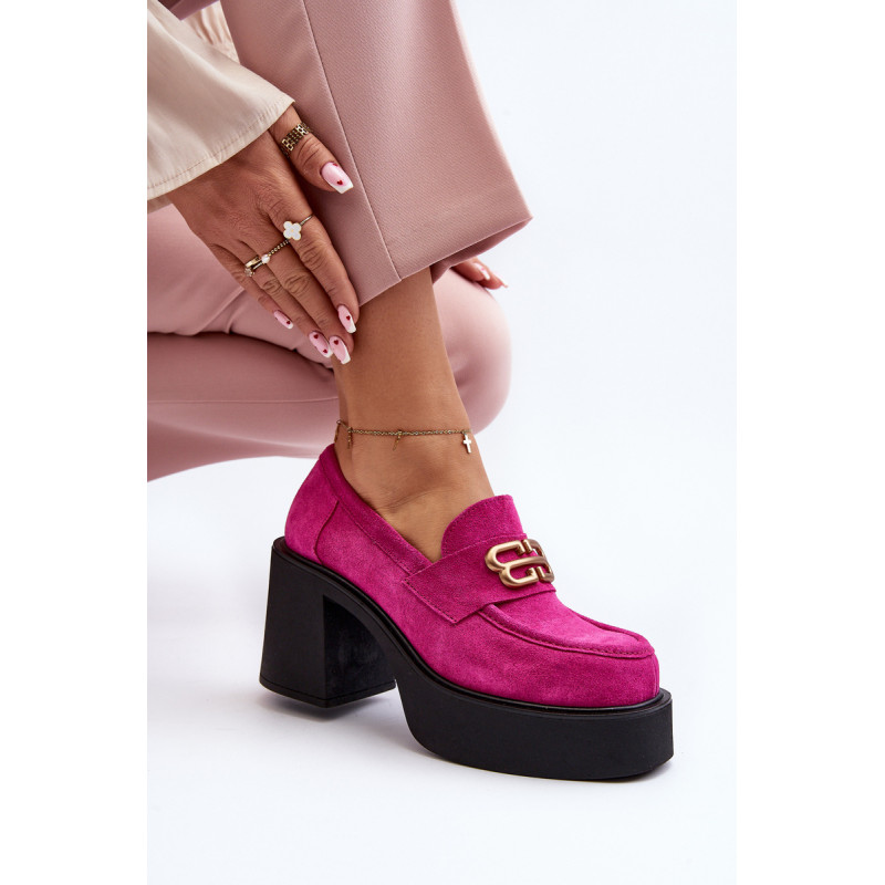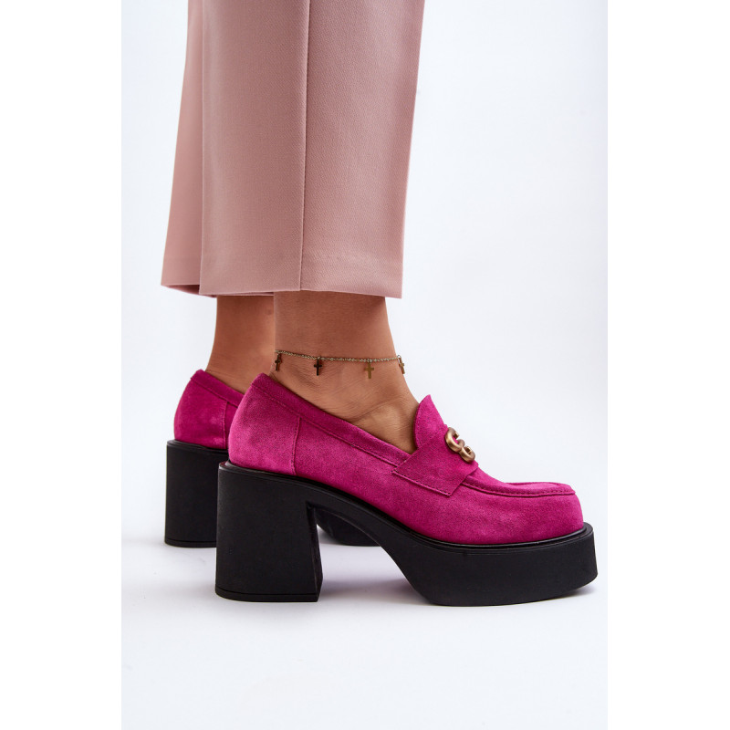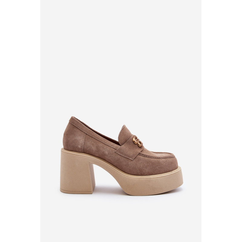 Moteriški aukštakulniai batai, kurių viršutinė dalis pagaminta iš natūralios odos. Nustatykite ant storo pado ir kulno masyvios kolonos pavidalu. Šis modelis turi apvalius pirštus. Odinis vidpadis suteiks komforto naudojimo metu. Priekyje yra dirželis ir dekoracija. Rinkdamiesi dydį žiūrėkite dydžių lentelę.