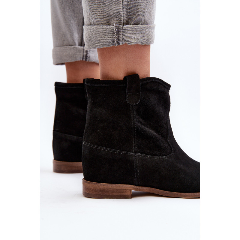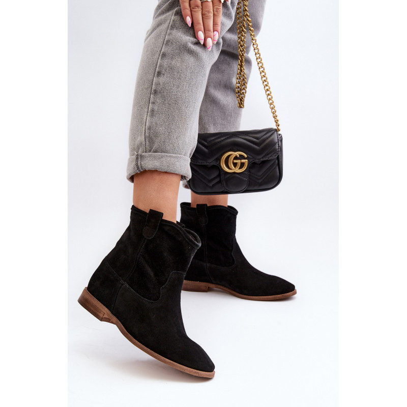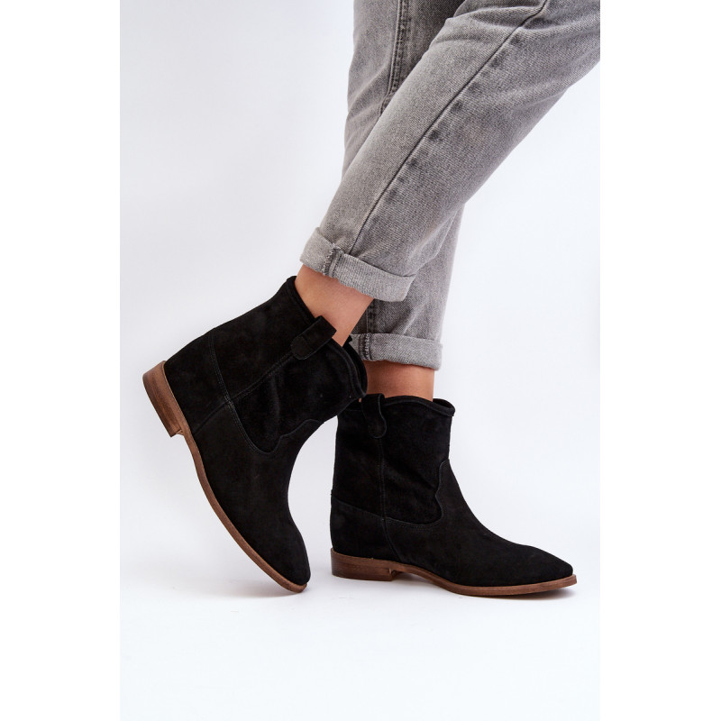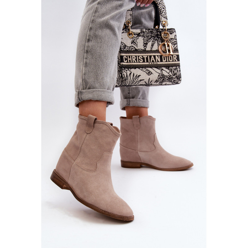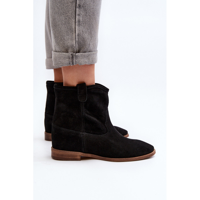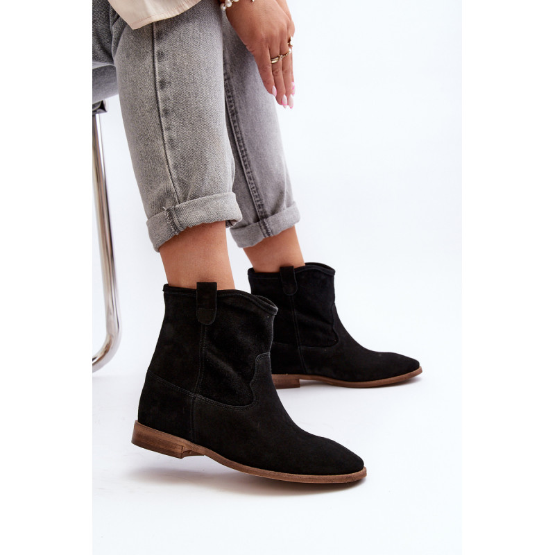 Moteriški batai iš natūralios zomšos. Nustatykite ant plokščio kulno su paslėpta platforma. Suapvalinti kojų pirštai. Vidpadis iš natūralios odos suteikia komforto naudojimo metu. Prie šio klasikinio modelio galite derinti daugybę stilių! Rinkdamiesi dydį, žiūrėkite dydžių lentelę.