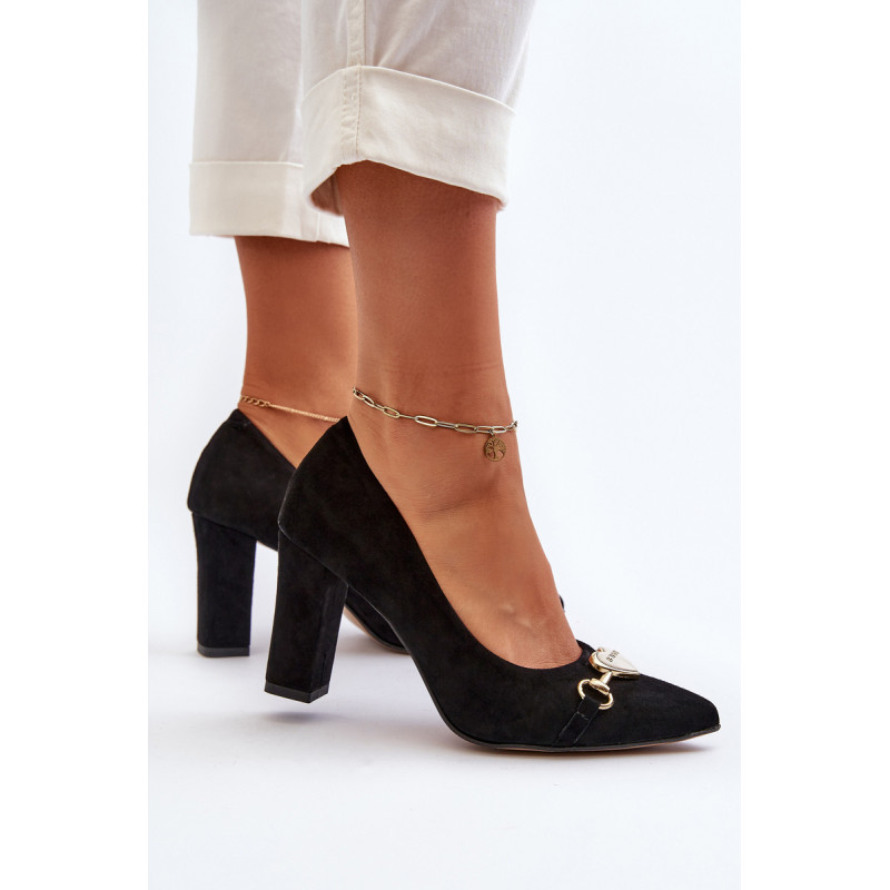Iš natūralios zomšos pagaminti siurbliai yra elegantiško dizaino, kuris tikrai patraukia dėmesį. Blokuotas kulnas ir smailus pirštas suteikia stilingą išvaizdą ir patogumą. Papildomo žavesio prideda priekyje dedama širdelės formos puošmena, suteikianti subtilų romantišką akcentą. Šios siurblys puikiai tinka daugeliui progų – tai patikima kiekvienos moters drabužių spinta! Rinkdamiesi dydį, žiūrėkite dydžių lentelę.