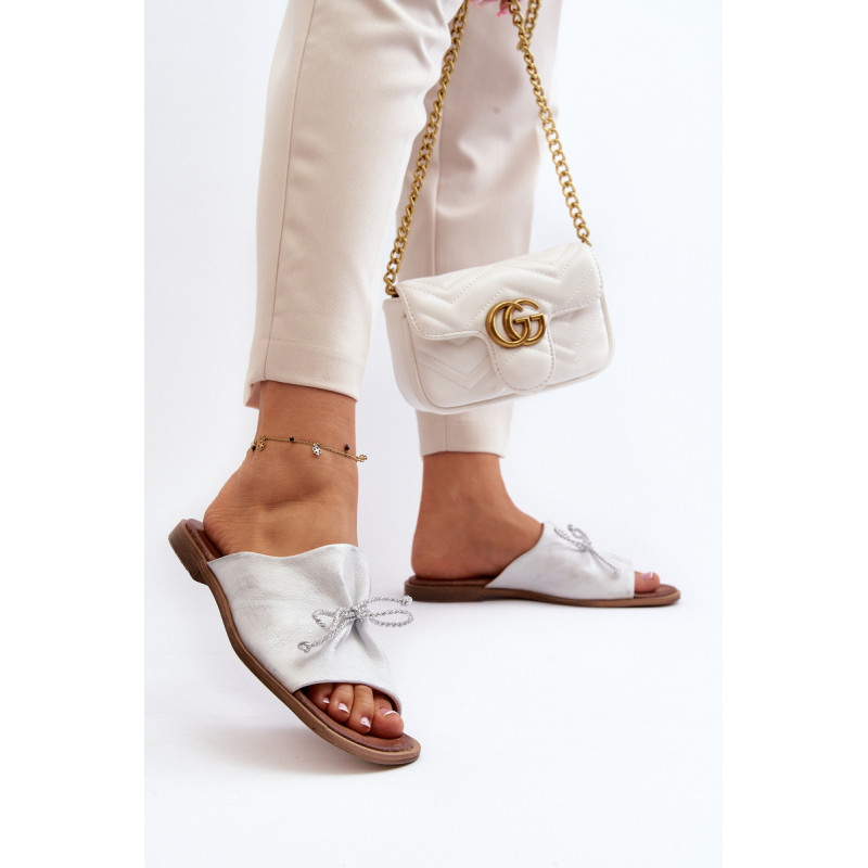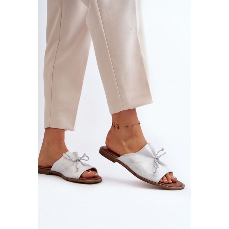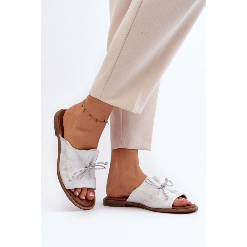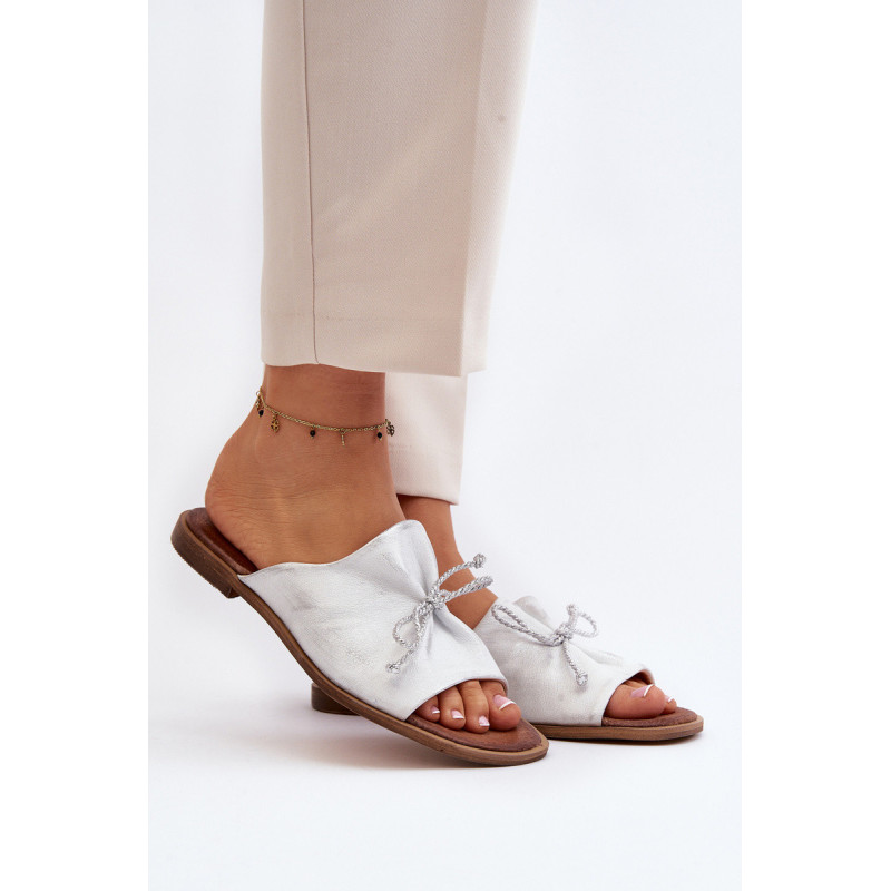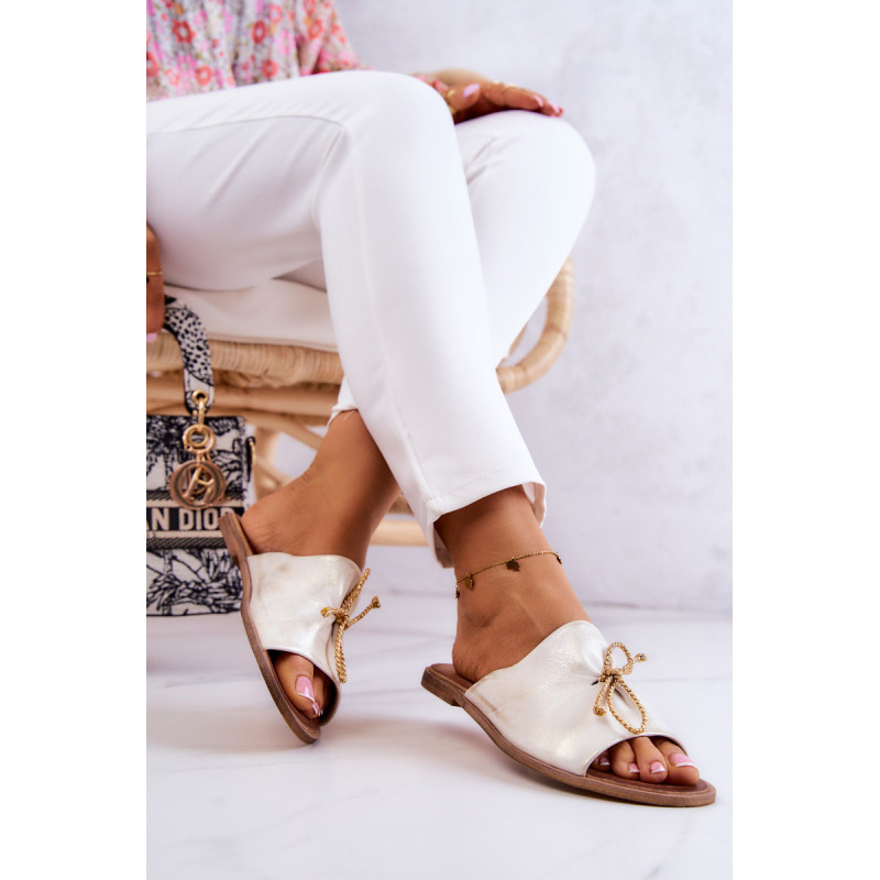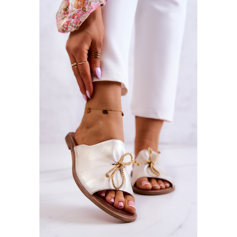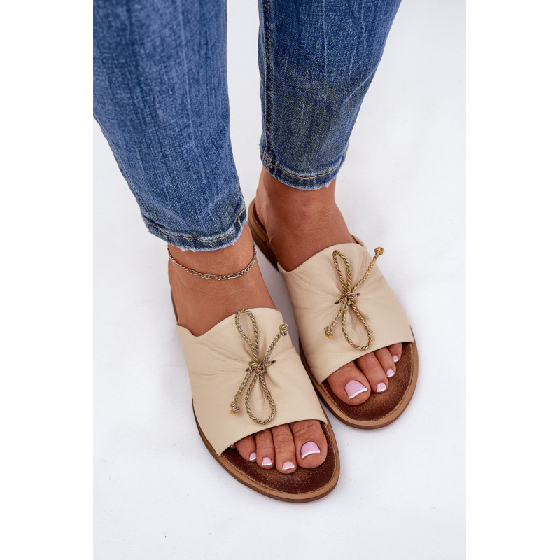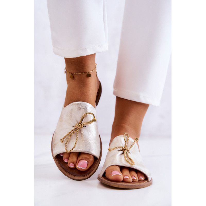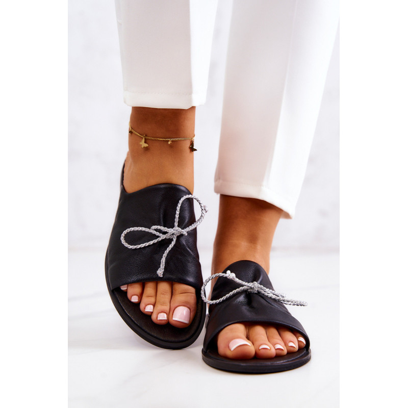 Patogios šlepetės, puoštos madinga, pinta virvele. Subtilus susiraukšlėjimas suteikia šiems atvartams subtilų vaizdą. Batai visiškai pagaminti iš odos. Jie turi standų, plastikinį padą. Minkštas vidpadis suteiks komforto net karštomis dienomis! Būtinai peržiūrėkite visą mūsų moteriškų sandalų kolekciją! Renkantis dydį, naudokite dydžių lentelę.