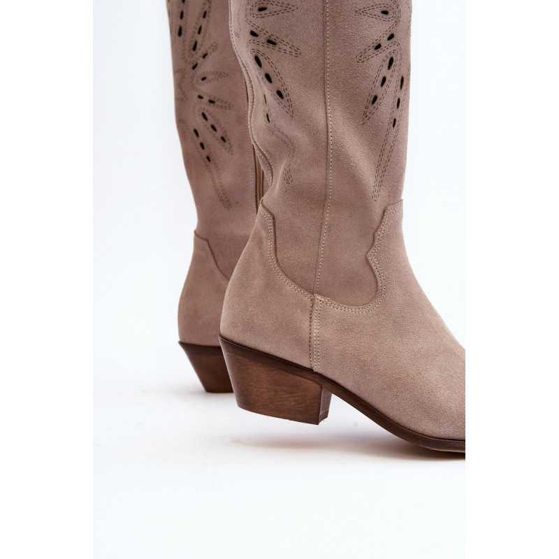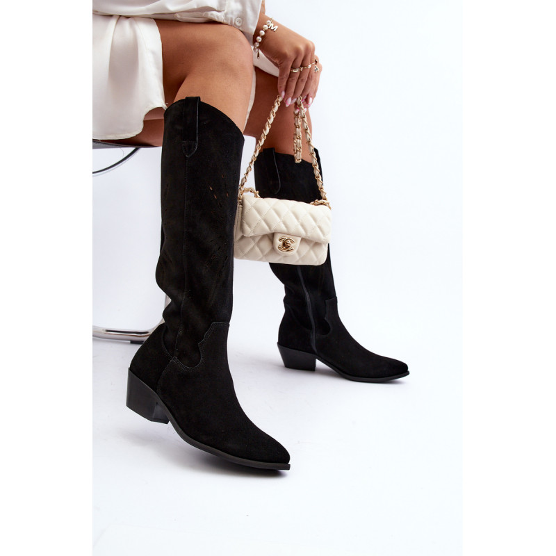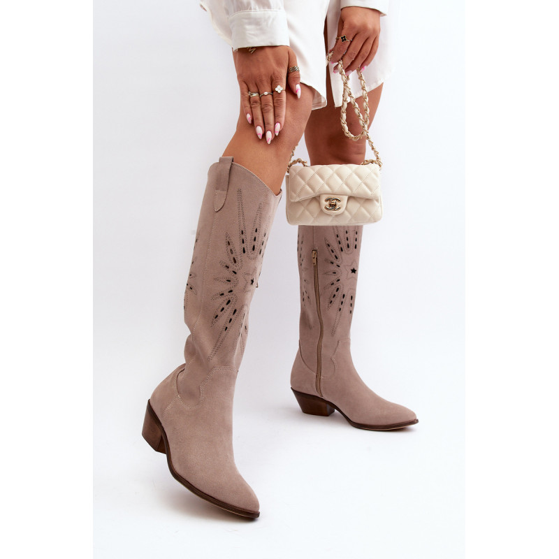 Auliniai batai iki kelių su grotelėmis. Pagaminta iš natūralios odos. Nustatykite ant žemo kulno. Užsegamas modelis su papildomu užtrauktuku. Smailūs pirštai. Lengvai profiliuotas vidpadis iš natūralios odos užtikrina komfortą naudojimo metu. Puikiai tinka daugeliui stilizacijų! Jūs tikrai turėtumėte juos turėti savo garderobe! Rinkdamiesi dydį, žiūrėkite dydžių lentelę.