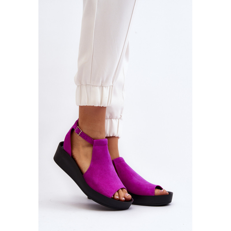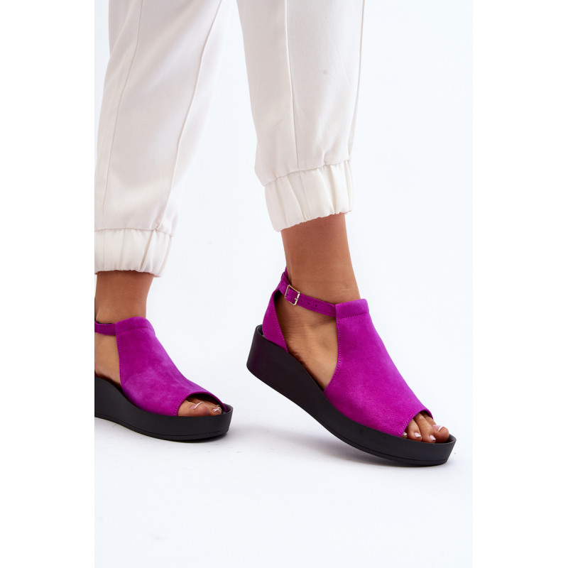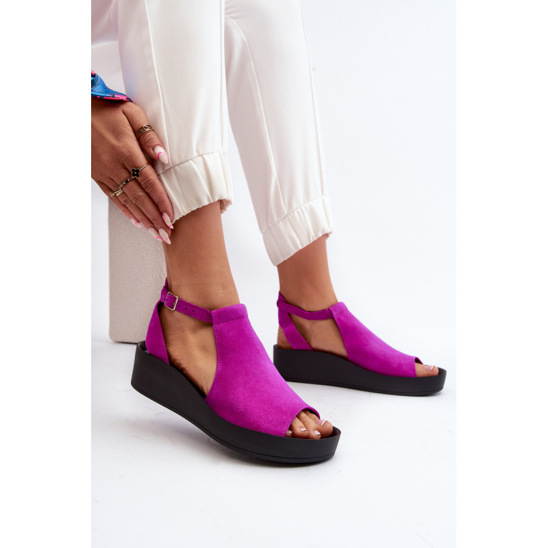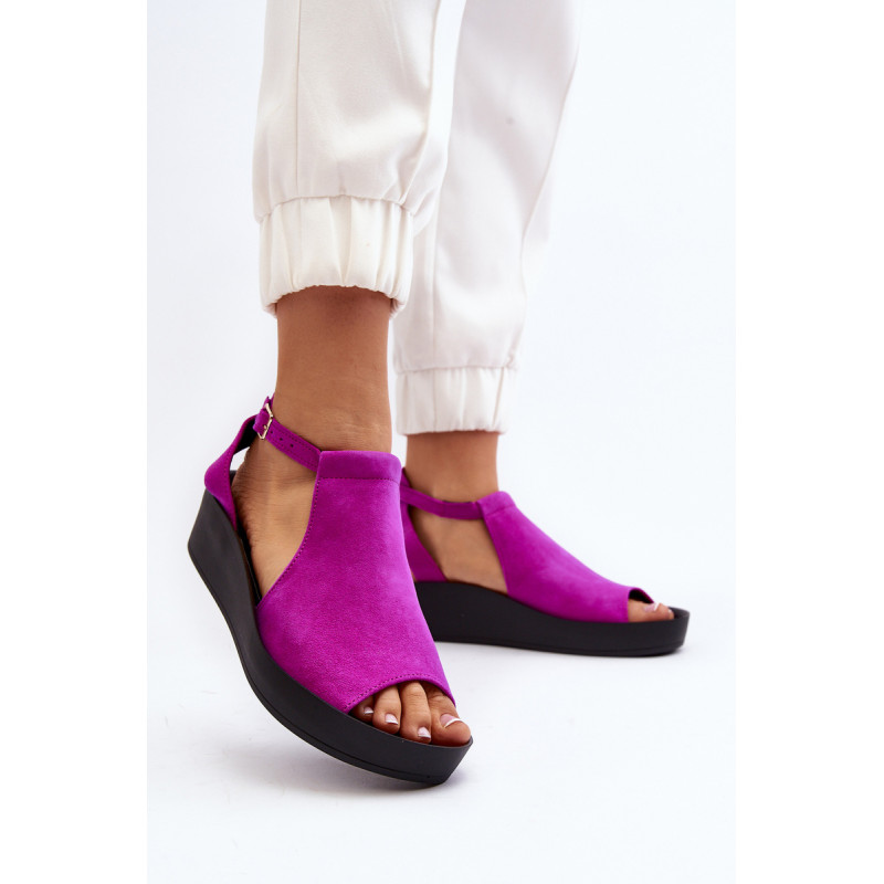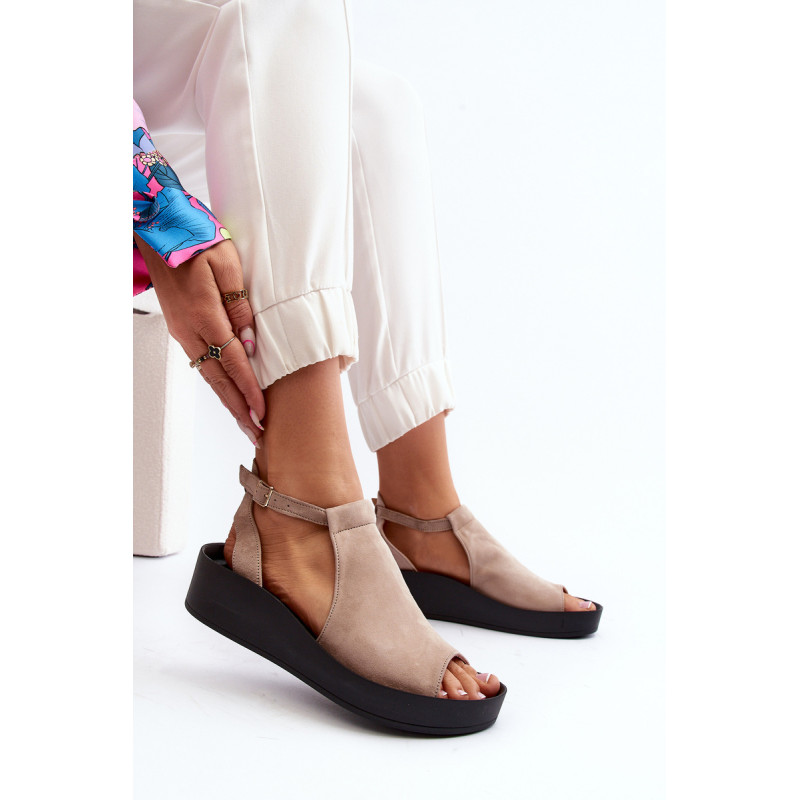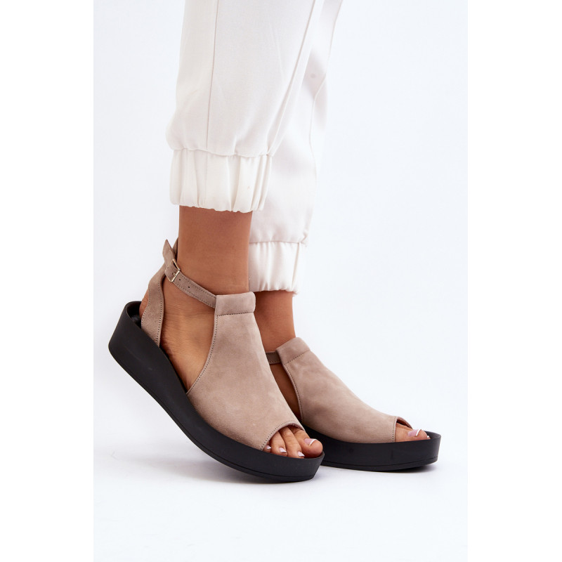Patogūs moteriški sandalai yra puikus pasirinkimas vasaros dienoms! Pagaminta iš natūralios zomšos. Pastatykite ant platformos ir subtilaus pleišto. Užsegamas reguliuojamu dirželiu su sagtimi. Minkštas odinis vidpadis suteiks patogumo naudojant avalynę. Puikiai tinka bet kokiam vasaros stiliui! Rinkdamiesi dydį, žiūrėkite dydžių lentelę.