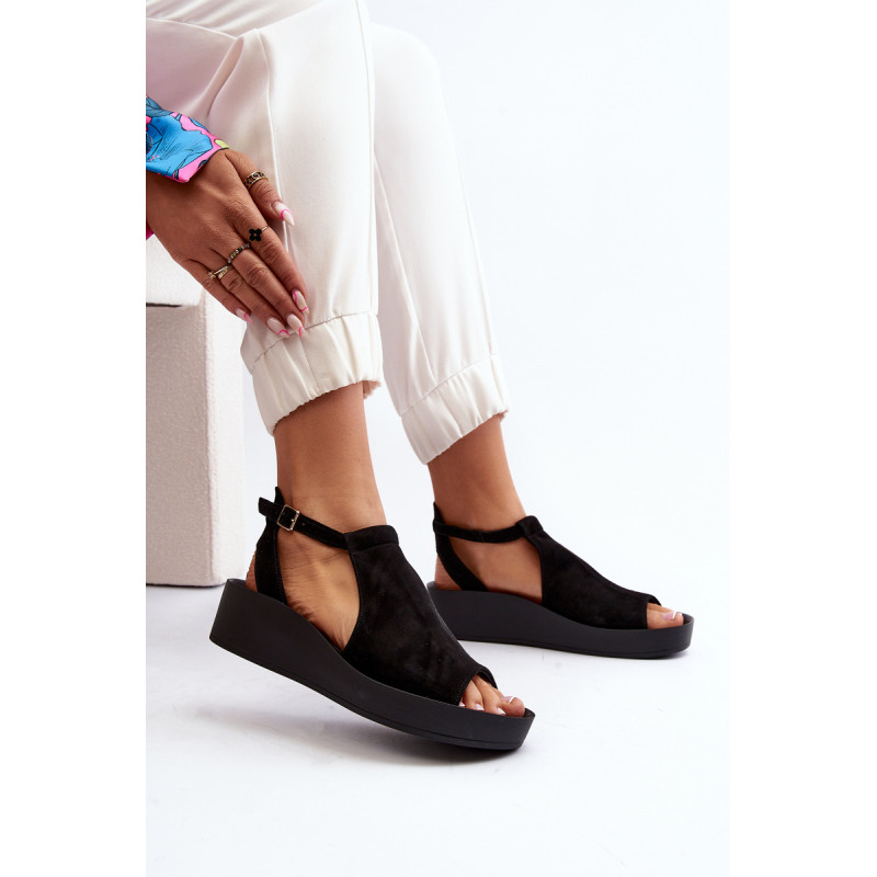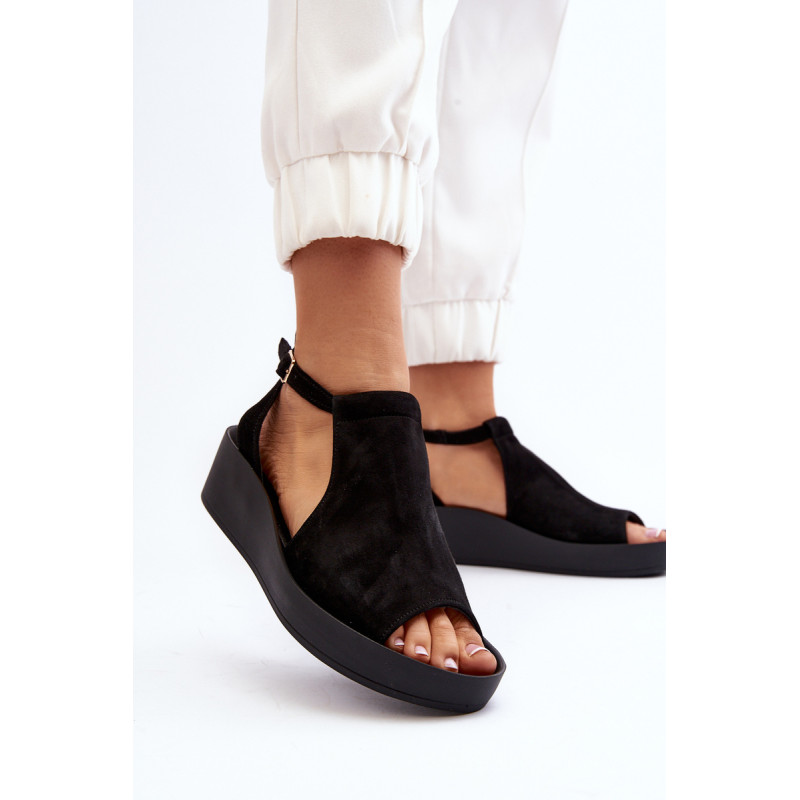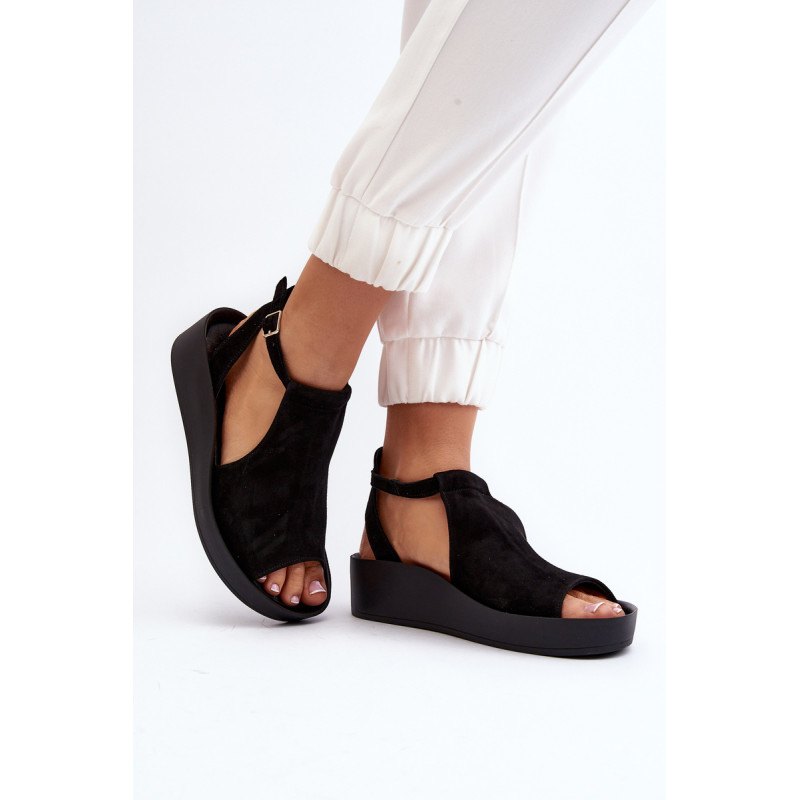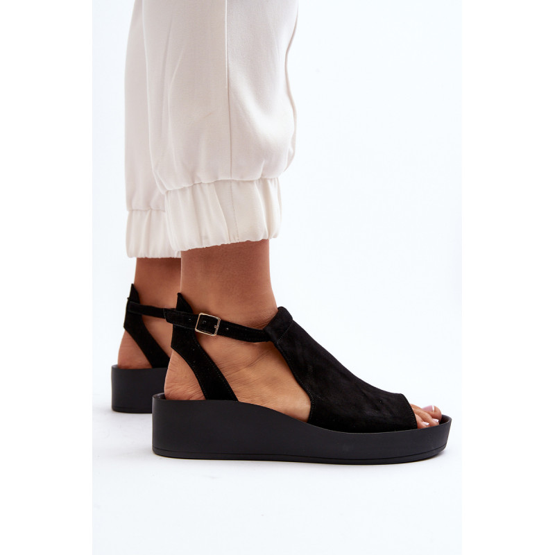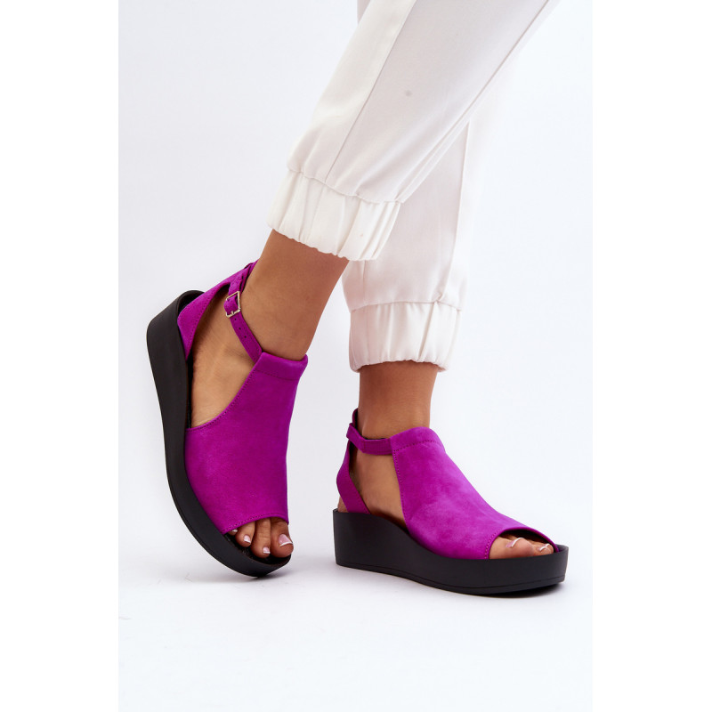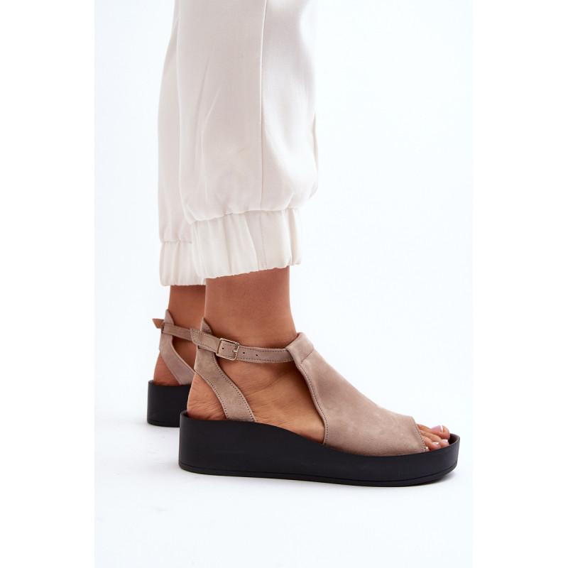 Patogūs moteriški sandalai yra puikus pasirinkimas vasaros dienoms! Pagaminta iš natūralios zomšos. Pastatykite ant platformos ir subtilaus pleišto. Užsegamas reguliuojamu dirželiu su sagtimi. Minkštas odinis vidpadis suteiks patogumo naudojant avalynę. Puikiai tinka bet kokiam vasaros stiliui! Rinkdamiesi dydį, žiūrėkite dydžių lentelę.