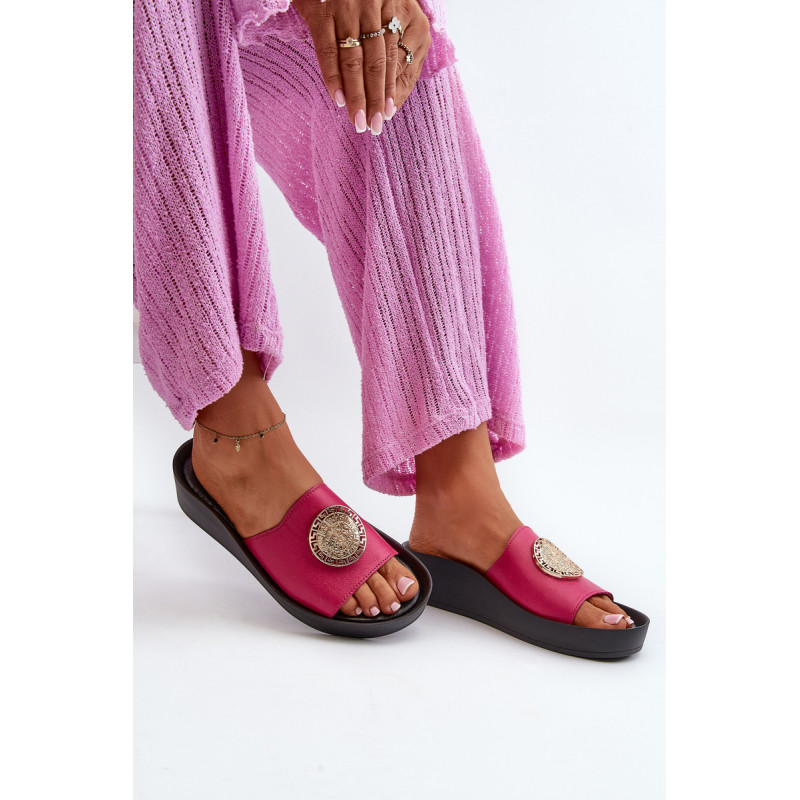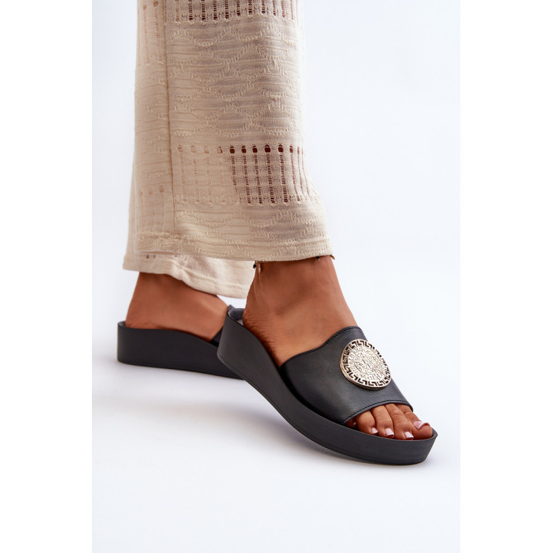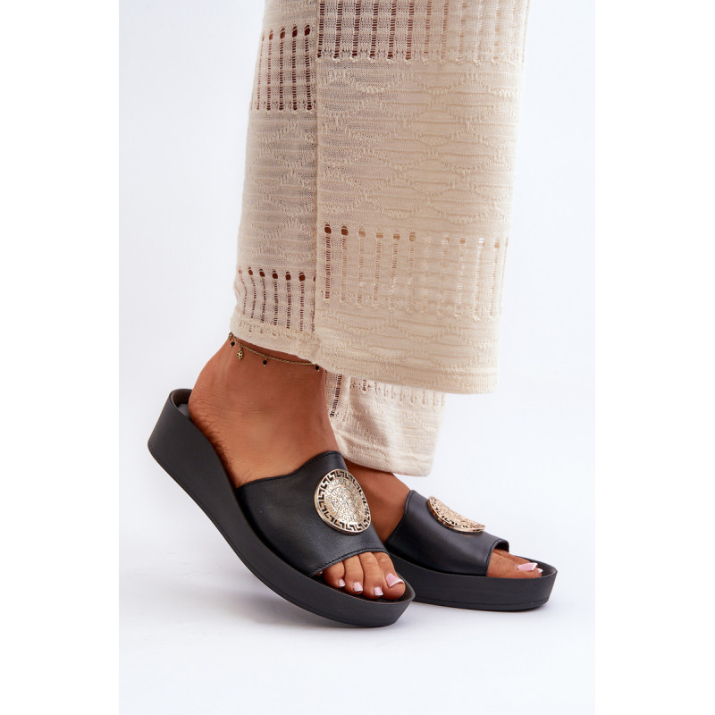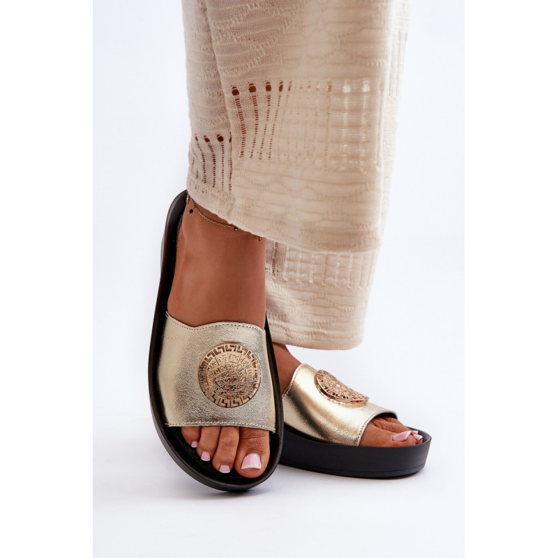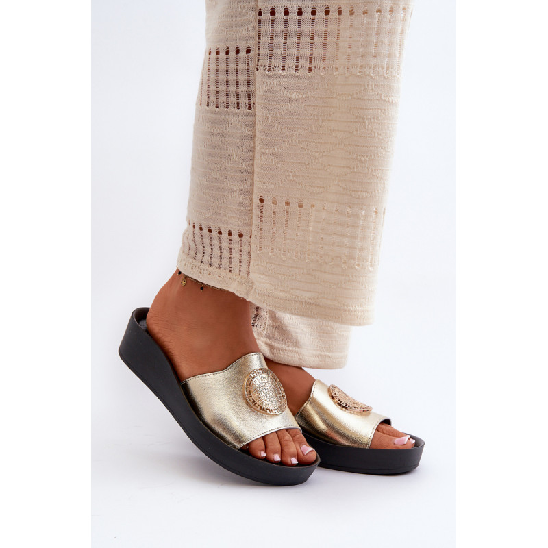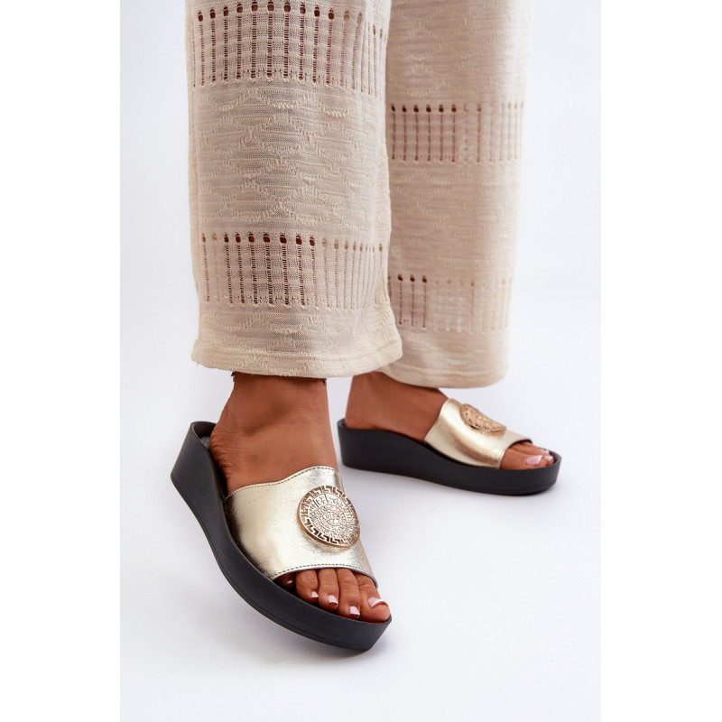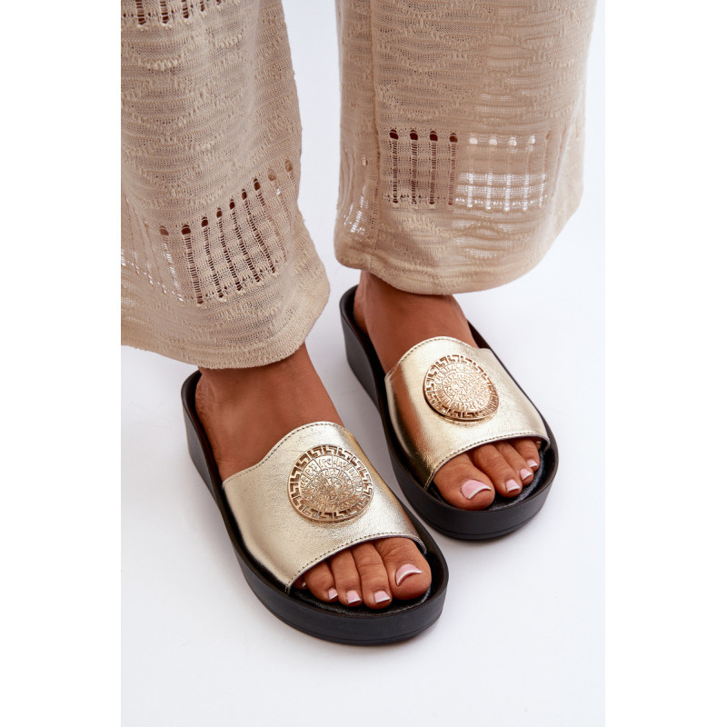 Elegantiškos šlepetės, pagamintos iš aukštos kokybės natūralios odos, yra puikus pasirinkimas moterims, kurios vertina stilių ir patogumą. Sumontuoti ant pleišto, jie suteikia ne tik papildomo aukščio, bet ir stabilumo bei atramos pėdoms visą dieną. Minkštas vidpadis prisitaiko prie pėdos formos, užtikrina išskirtinį komfortą dėvint. Papildomas privalumas – auksinė detalė, kuri tikrai patrauks akį. Šios šlepetės puikiai tiks tiek kasdienai, tiek ypatingoms progoms, papildys bet kokią aprangą nuo kasdieninės iki formalesnės. Rinkdamiesi dydį, žiūrėkite dydžių lentelę.