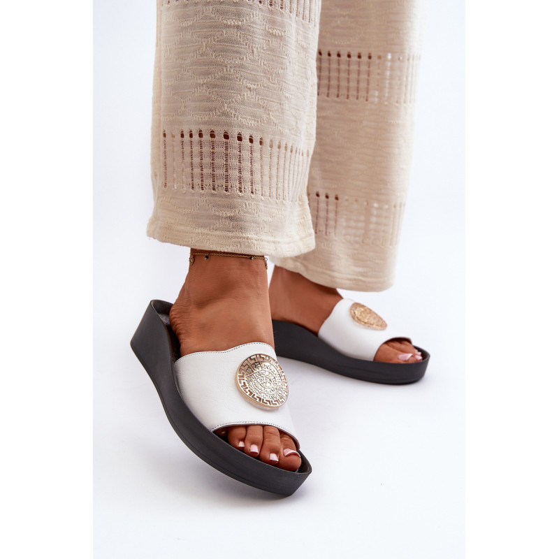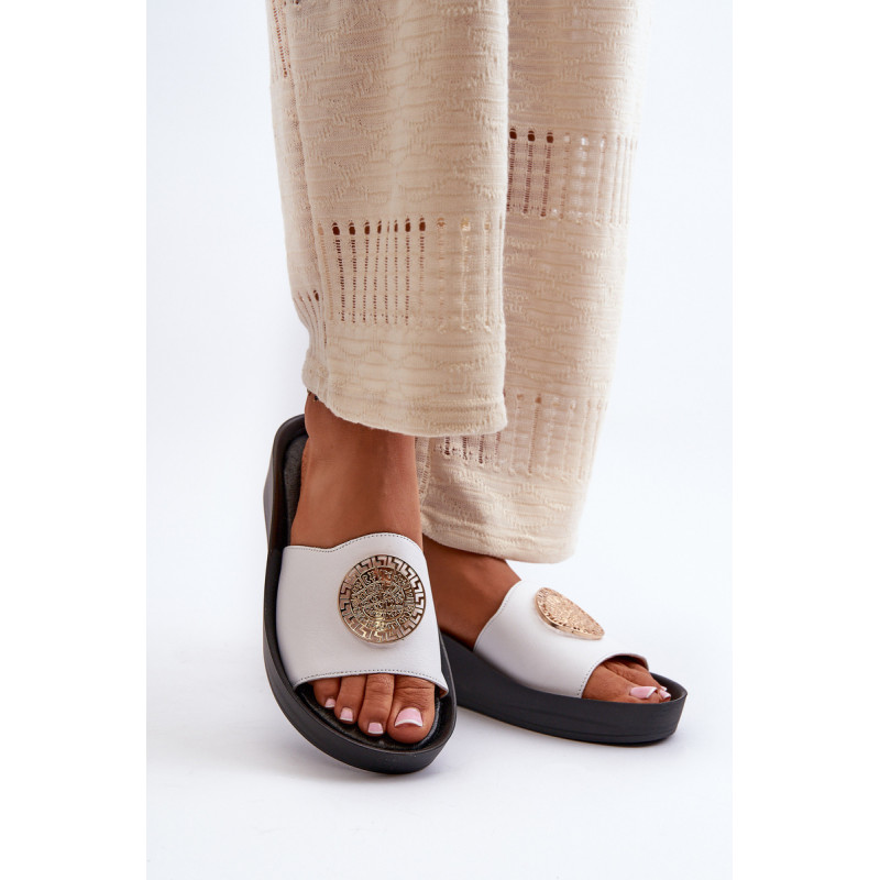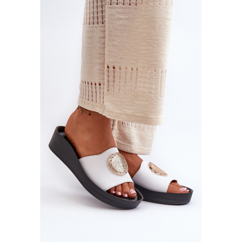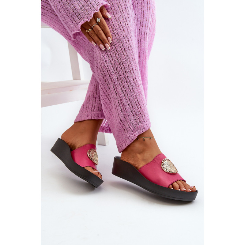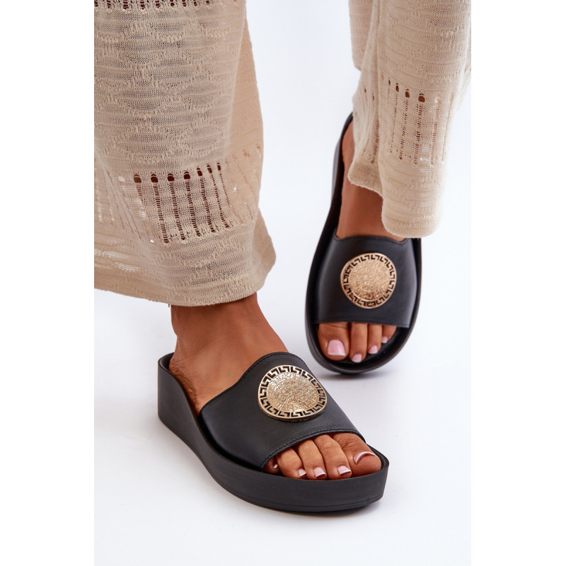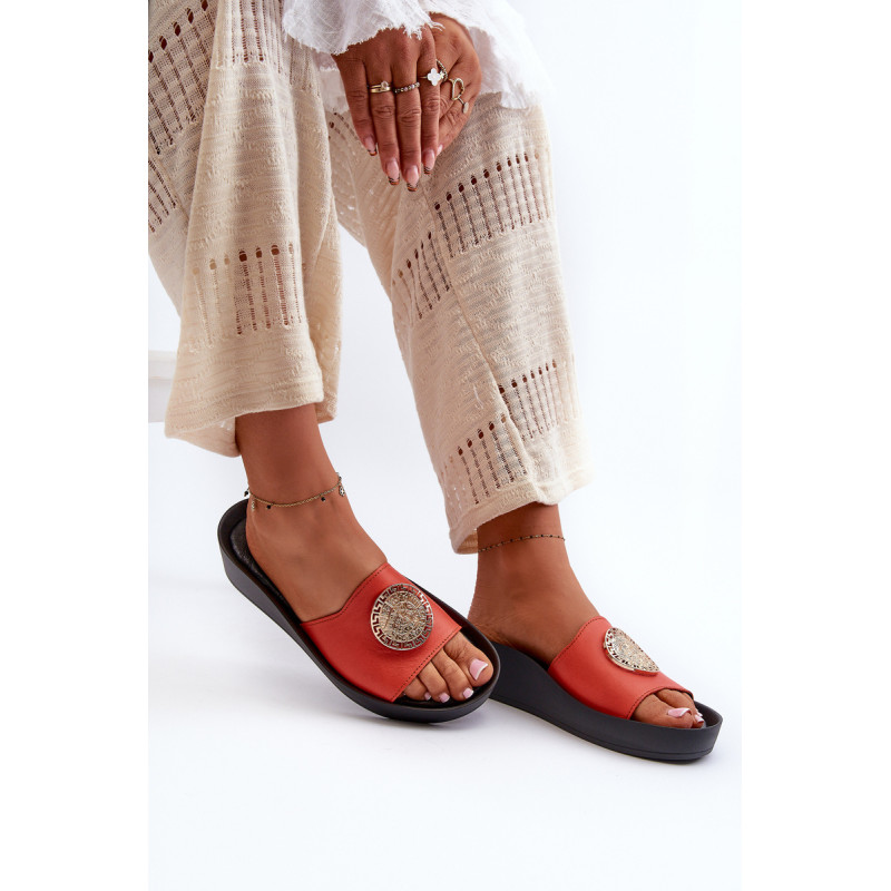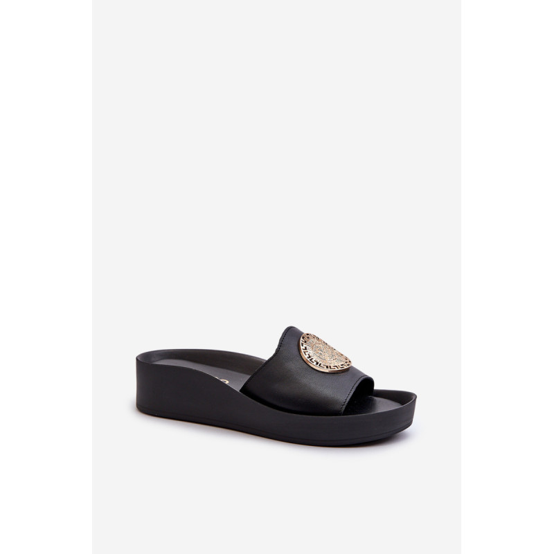 Elegantiškos šlepetės, pagamintos iš aukštos kokybės natūralios odos, yra puikus pasirinkimas moterims, kurios vertina stilių ir patogumą. Sumontuoti ant pleišto, jie suteikia ne tik papildomo aukščio, bet ir stabilumo bei atramos pėdoms visą dieną. Minkštas vidpadis prisitaiko prie pėdos formos, užtikrina išskirtinį komfortą dėvint. Papildomas privalumas – auksinė detalė, kuri tikrai patrauks akį. Šios šlepetės puikiai tiks tiek kasdienai, tiek ypatingoms progoms, papildys bet kokią aprangą nuo kasdieninės iki formalesnės. Rinkdamiesi dydį, žiūrėkite dydžių lentelę.