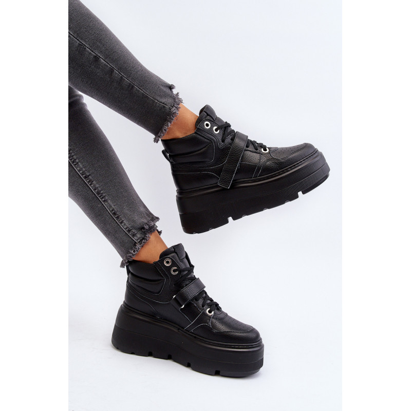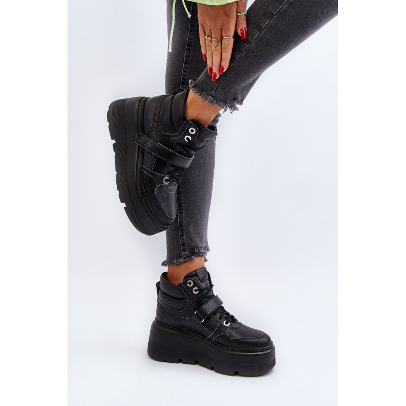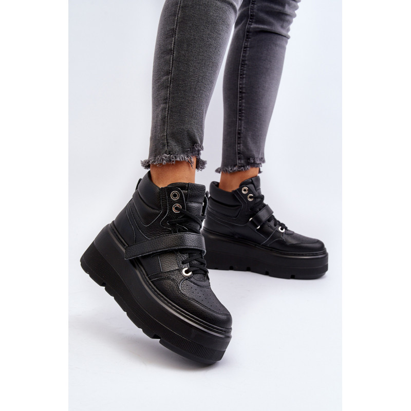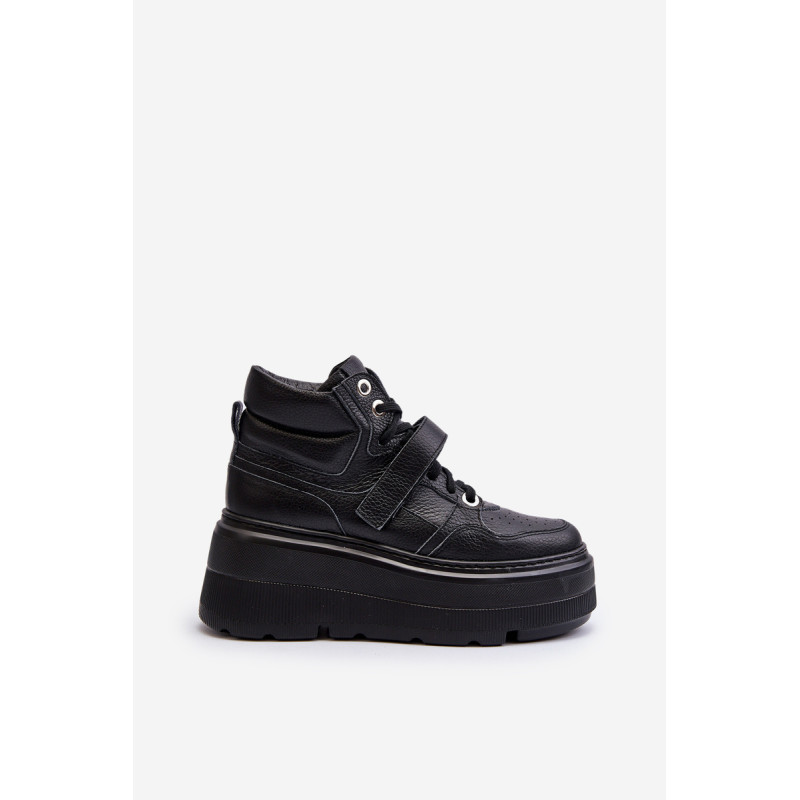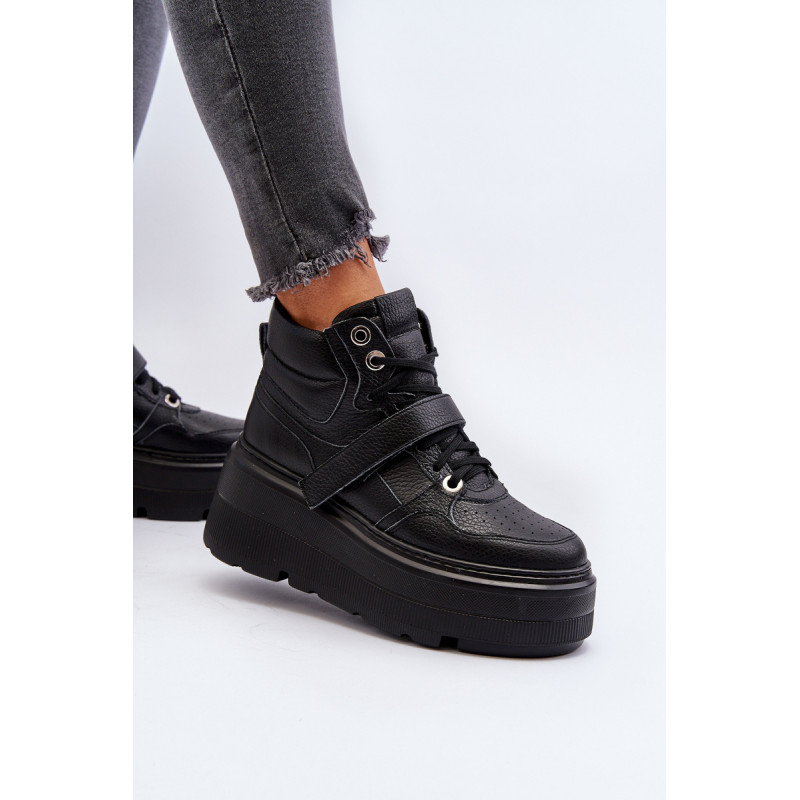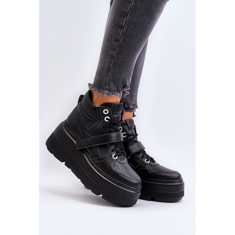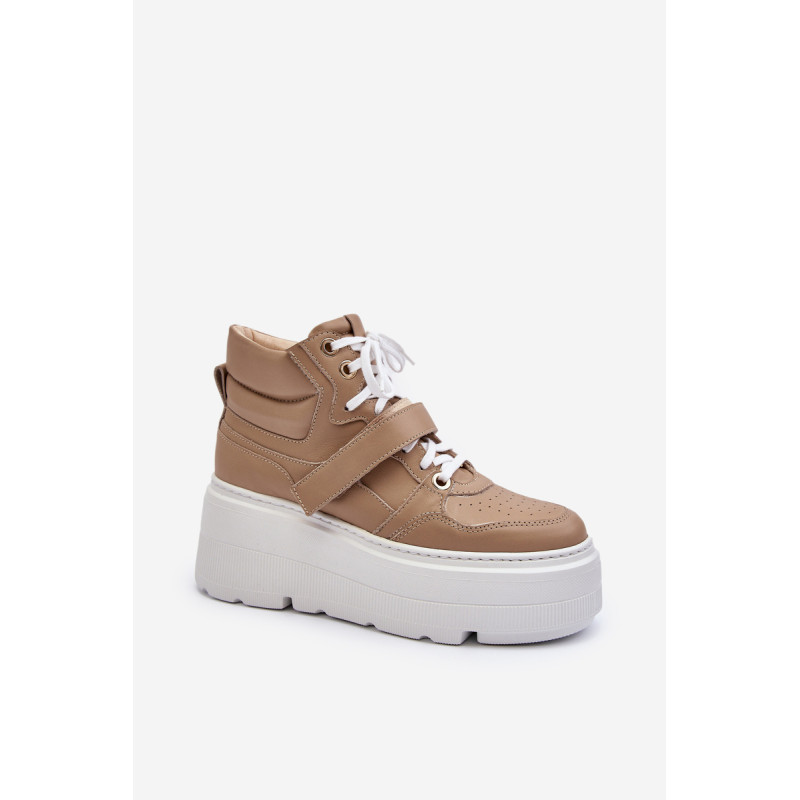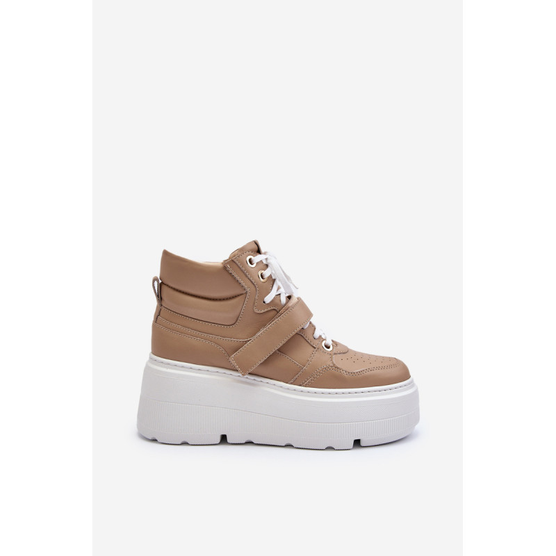 Moteriški sportbačiai, pagaminti iš aukštos kokybės natūralios odos. Suvarstymas, praturtintas papildomu Velcro užsegimu, užtikrina puikų prigludimą prie pėdos, suteikia stabilumo einant. Platforma ne tik suteikia charakterio visam stiliui, bet ir suteikia stabilumo bei komforto einant. Šie sportbačiai, puikiai tinkantys pasivaikščiojimui po miestą ir vakarui su draugais, yra nepakeičiamas kiekvienos madingos moters drabužių spintos elementas. Rinkdamiesi dydį, žiūrėkite dydžių lentelę.