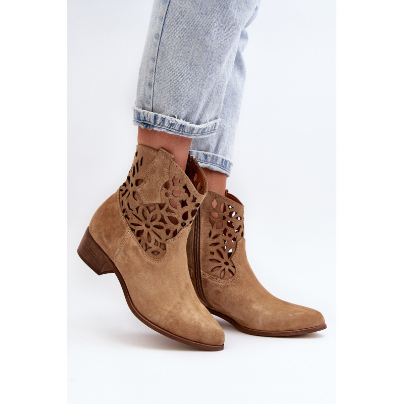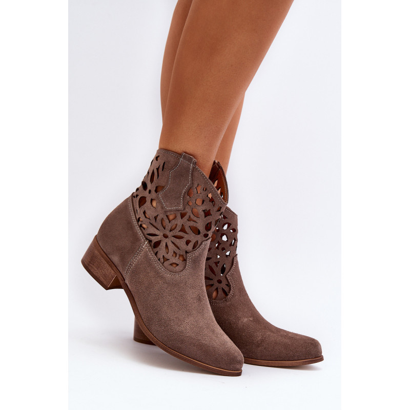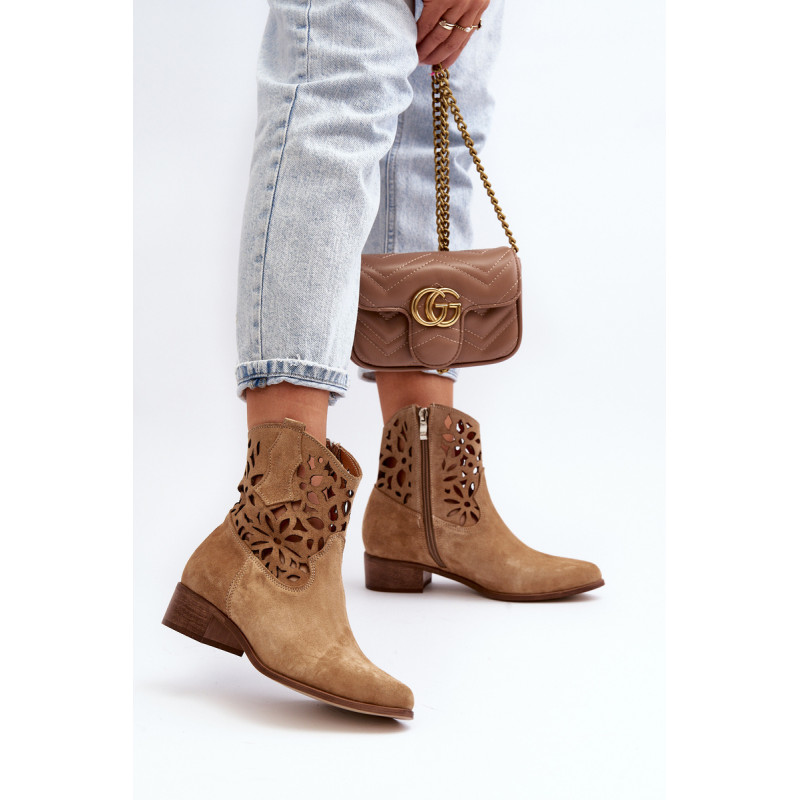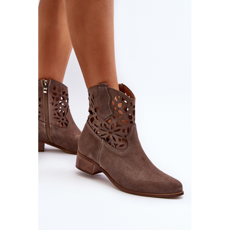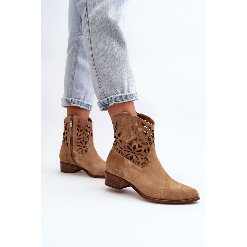 Moteriški batai iš natūralios zomšos. Ant žemo kulno, todėl jie yra stilingi ir patogūs. Tinklinis raštas ant batviršių suteikia jiems elegancijos. Šis modelis užsegamas užtrauktuku, todėl jį lengva užsidėti. Minkštas vidpadis užtikrina komfortą dėvint. Rinkdamiesi dydį, žiūrėkite dydžių lentelę.