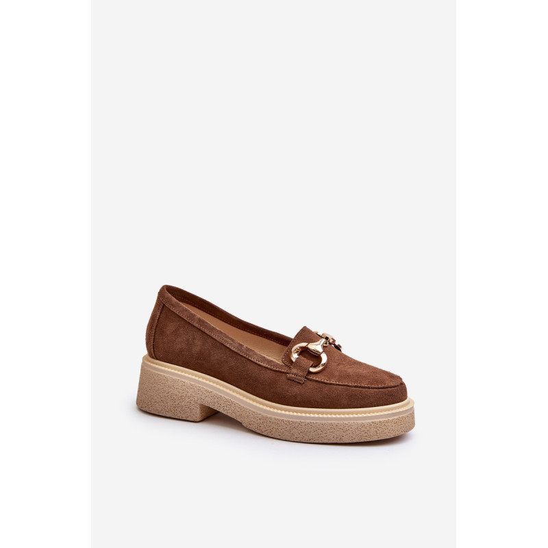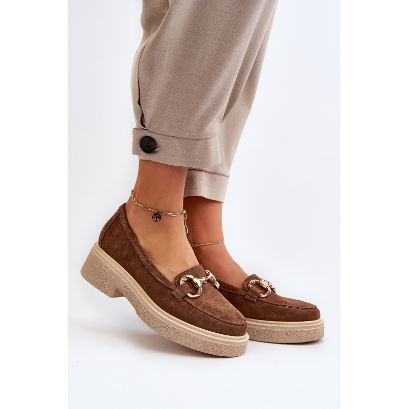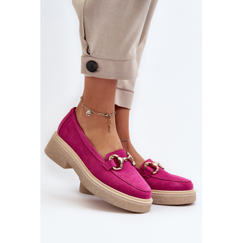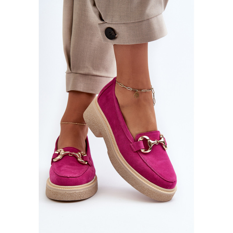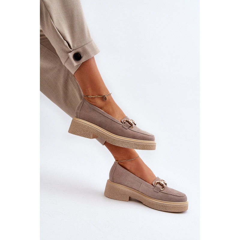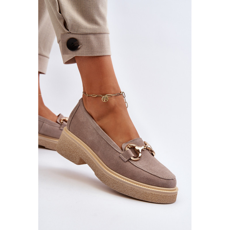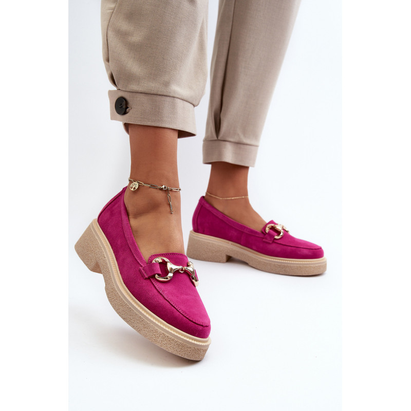 Šie elegantiški moteriški mokasinai iš natūralios zomšos yra ne tik išskirtinai stilingi, bet ir nepaprastai patogūs. Jų priekį puošia auksinė puošyba, kuri suteikia joms prabangos ir elegancijos. Nustatykite ant platformos ir plokščio kulno. Profiliuotas vidpadis suteiks komforto naudojimo metu. Itin madingas dizainas, kurį galite naudoti daugeliui stilių! Rinkdamiesi dydį žiūrėkite dydžių lentelę.