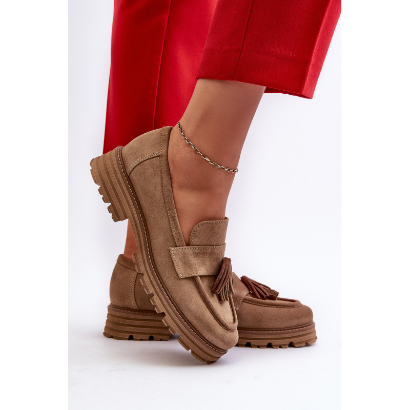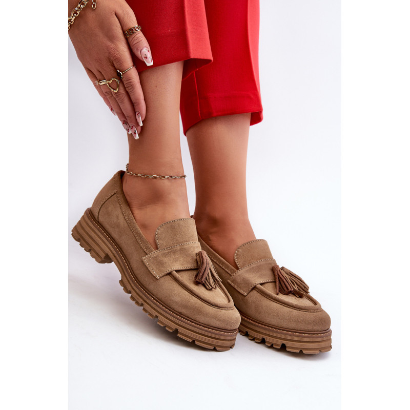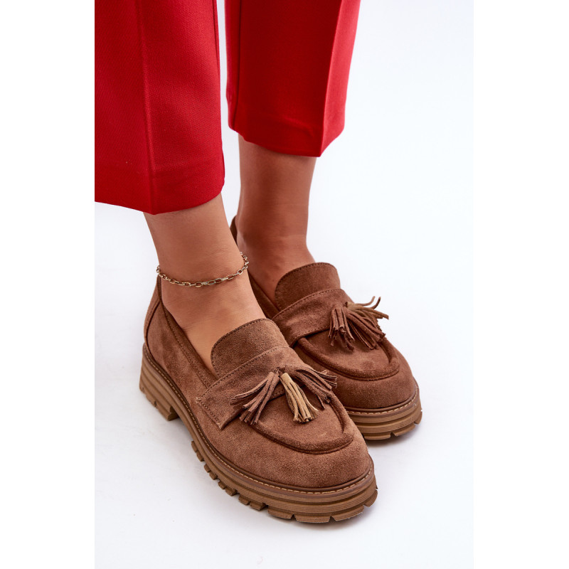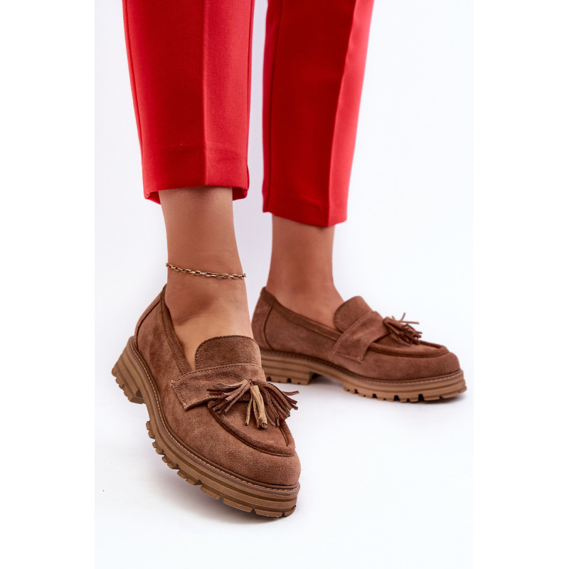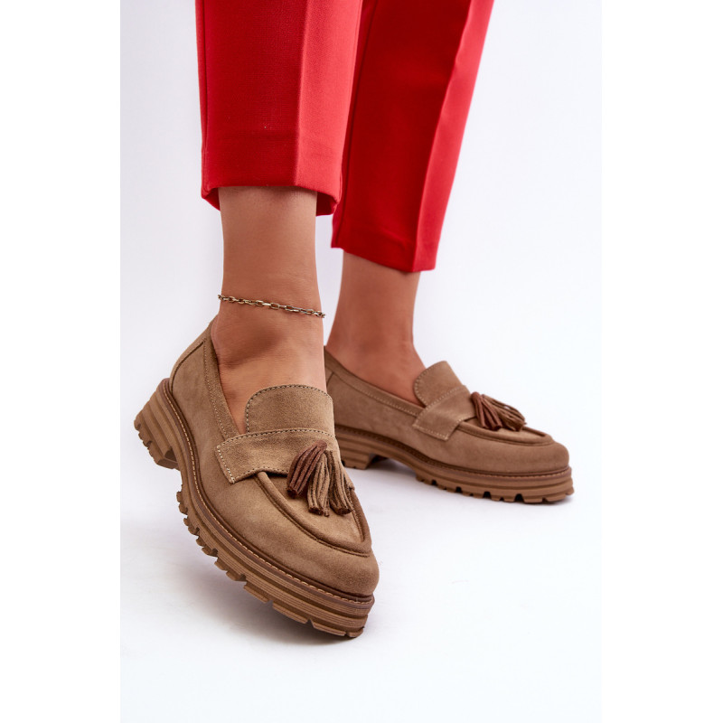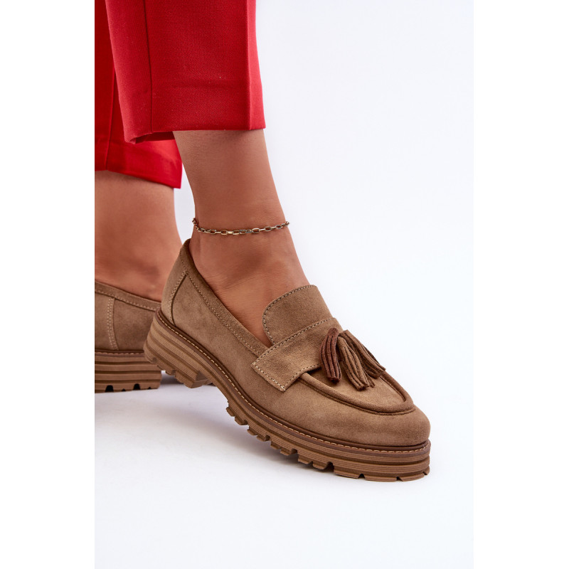 Moteriški mokasinai iš natūralios zomšos yra labai stilingi ir patogūs. Priekis dekoruotas kutais. Nustatyti ant platformos ir plokščio kulno, suteikiančio pasitikėjimo einant. Lengvos profiliuotos odos vidpadis užtikrins komfortą. Madingas stilius, kuris derės prie įvairių aprangų. Rinkdamiesi dydį, žiūrėkite dydžių lentelę.