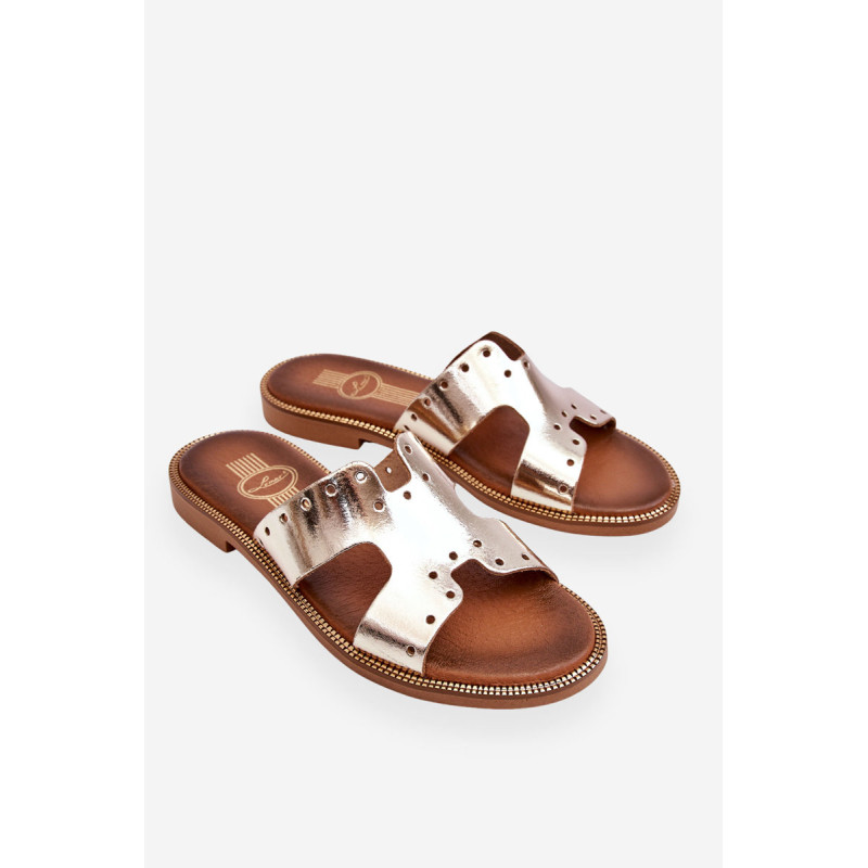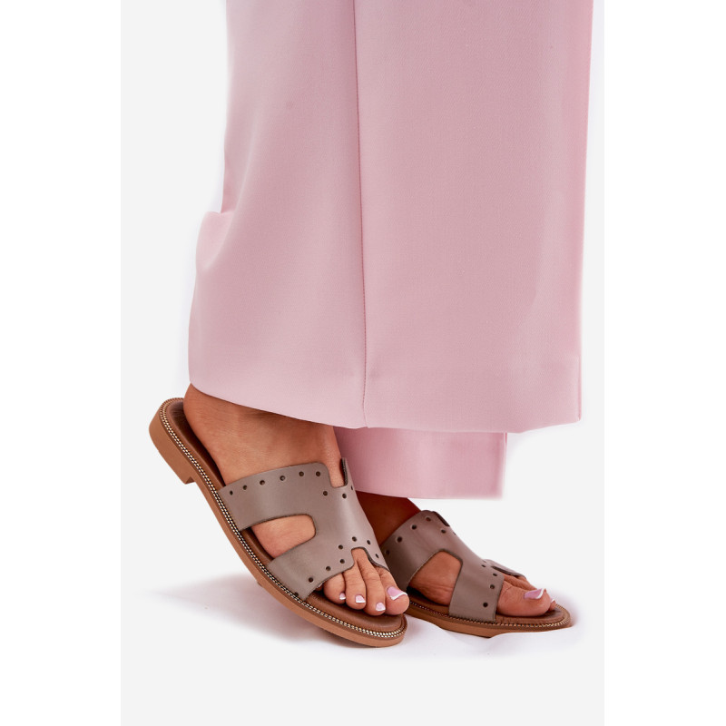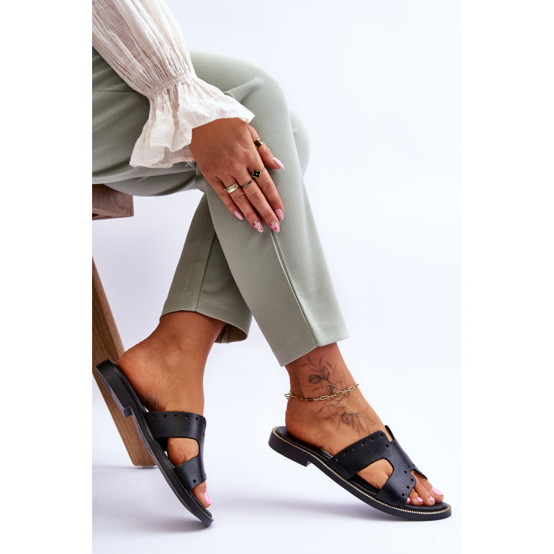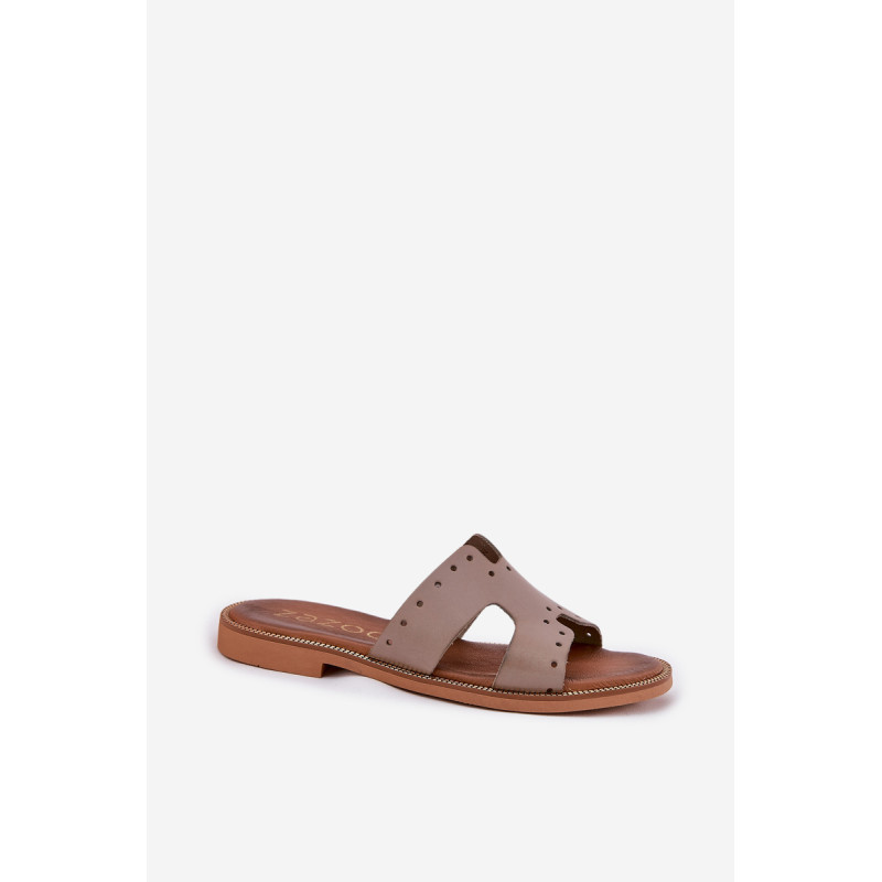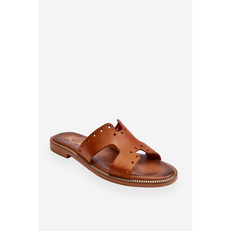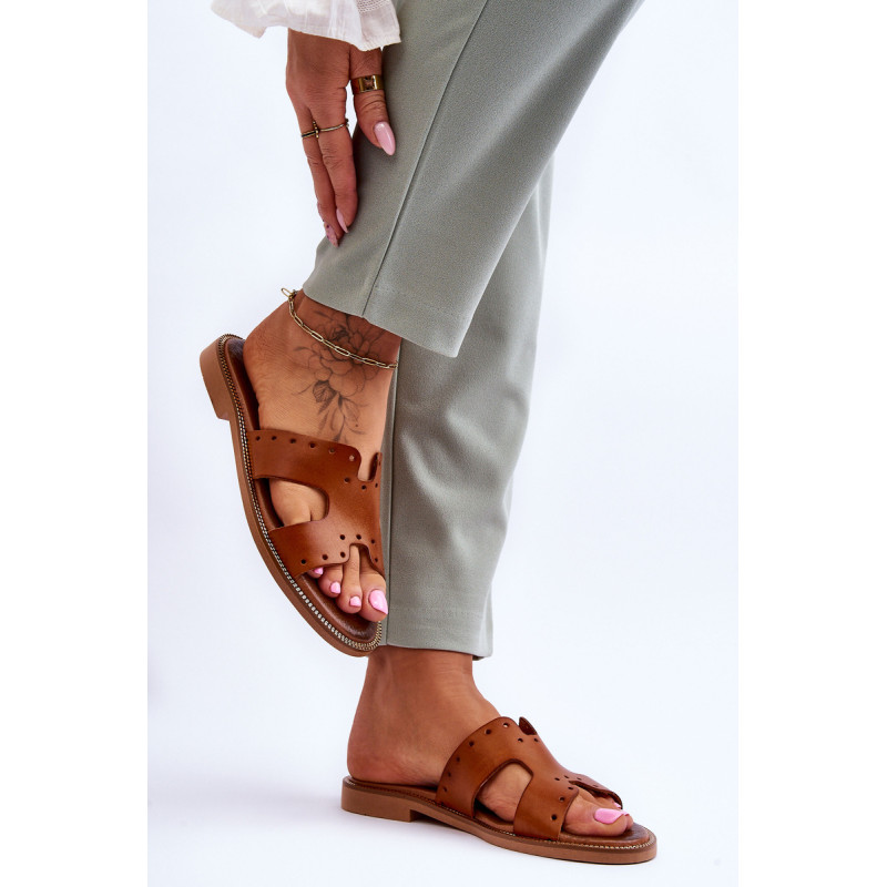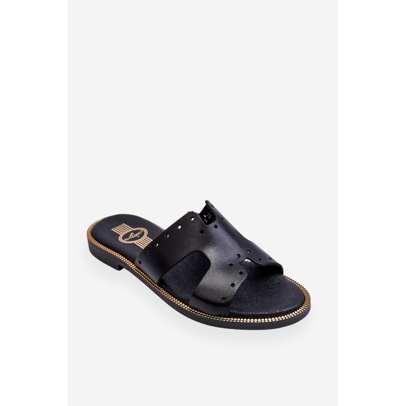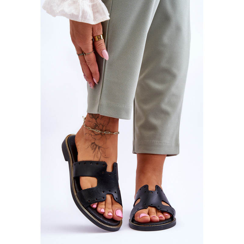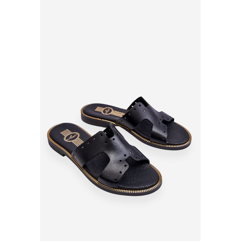 Moteriškos, klasikinės šlepetės yra pagamintos iš natūralios odos su išpjovomis. Ant plokščio kulno su dekoruotu padu. Šis modelis tikrai patiks kiekvienai stilių ir patogumą vertinančiai moteriai. Minkštas, odinis vidpadis leis patogiai dėvėti avalynę net ir visą dieną. Renkantis dydį, vadovaukitės dydžių lentele.