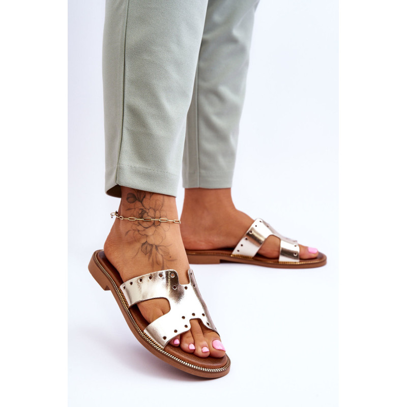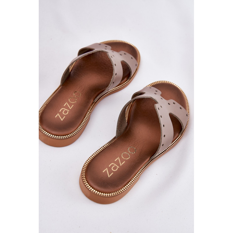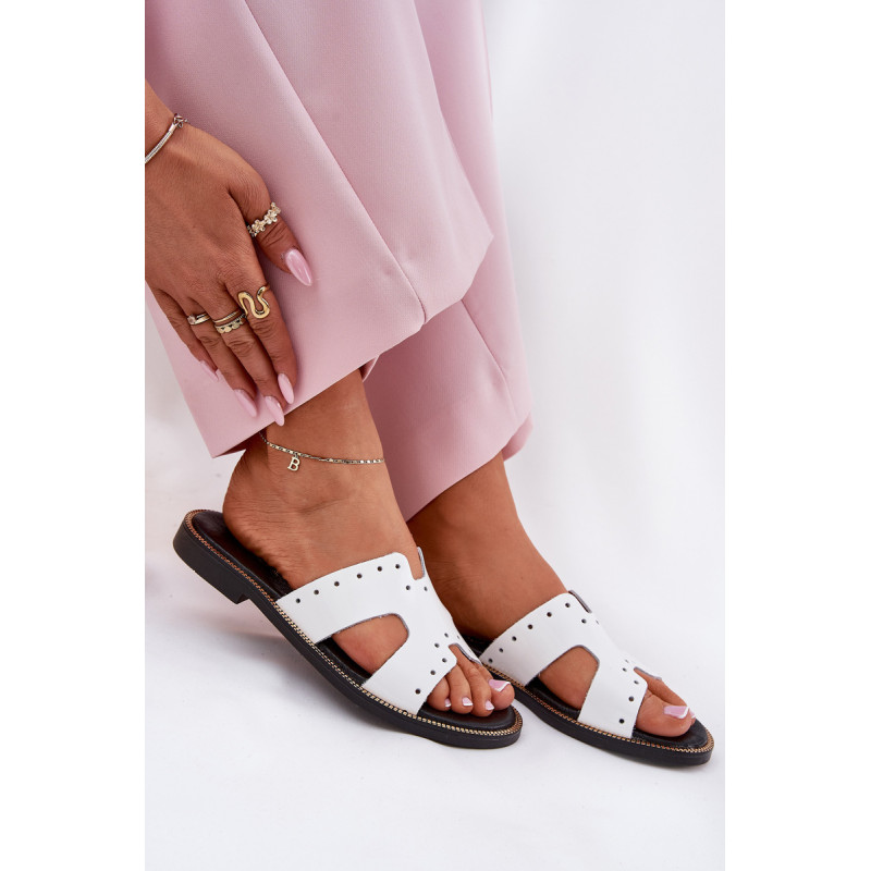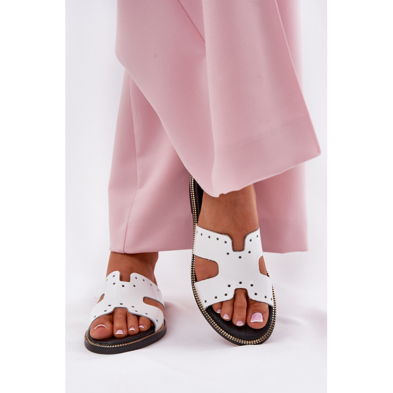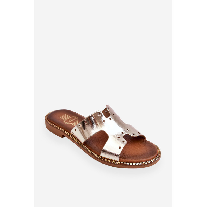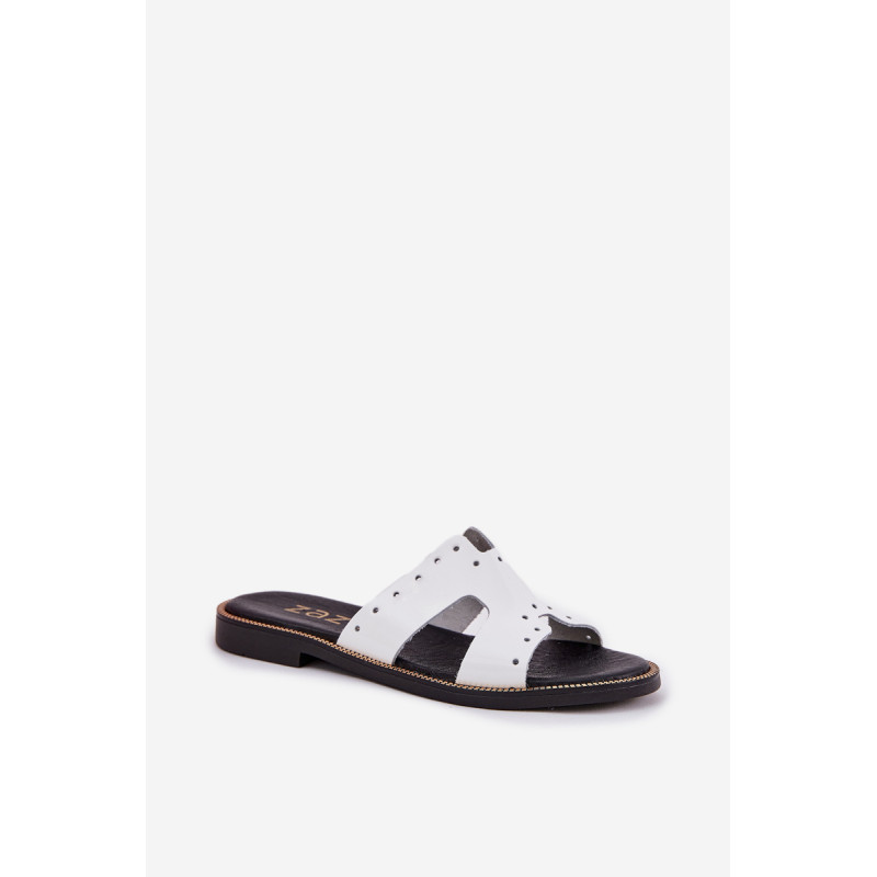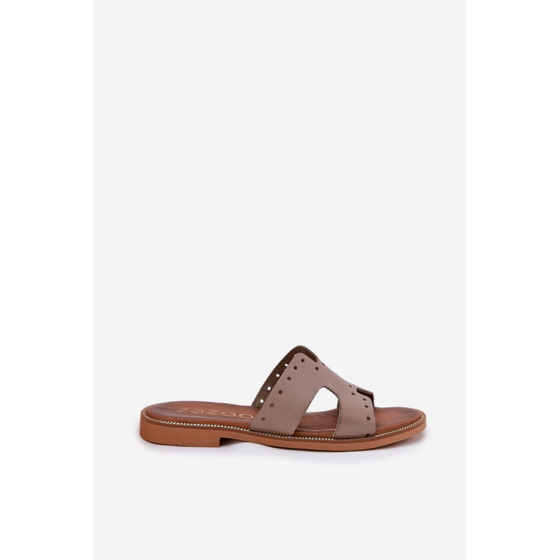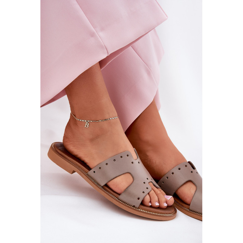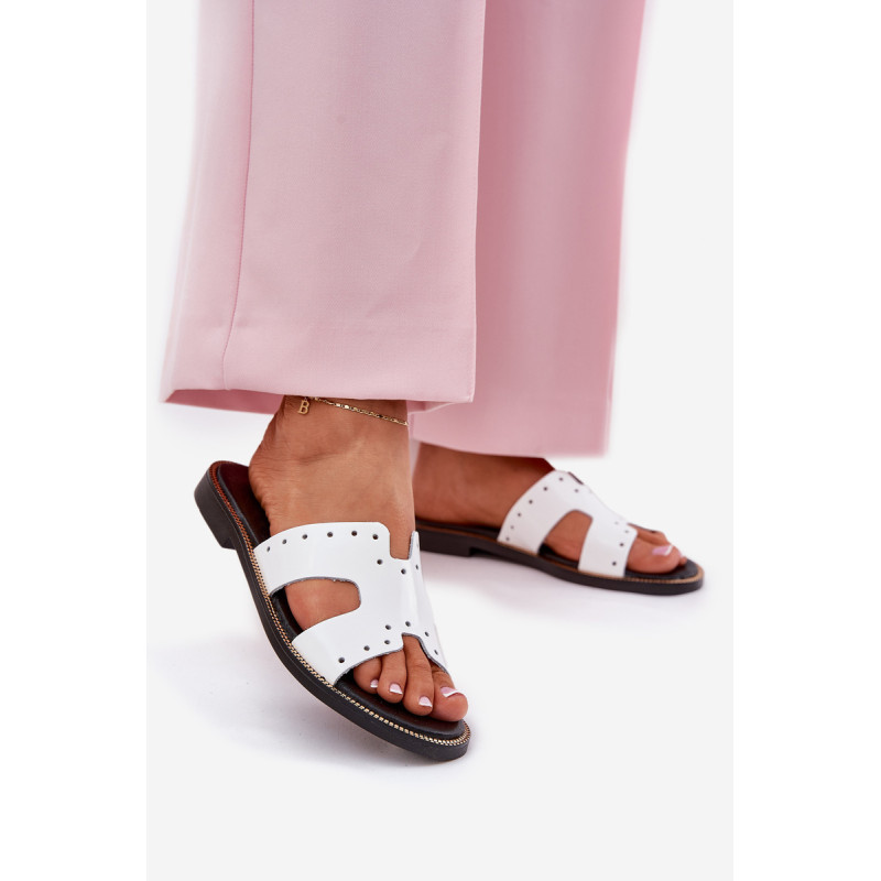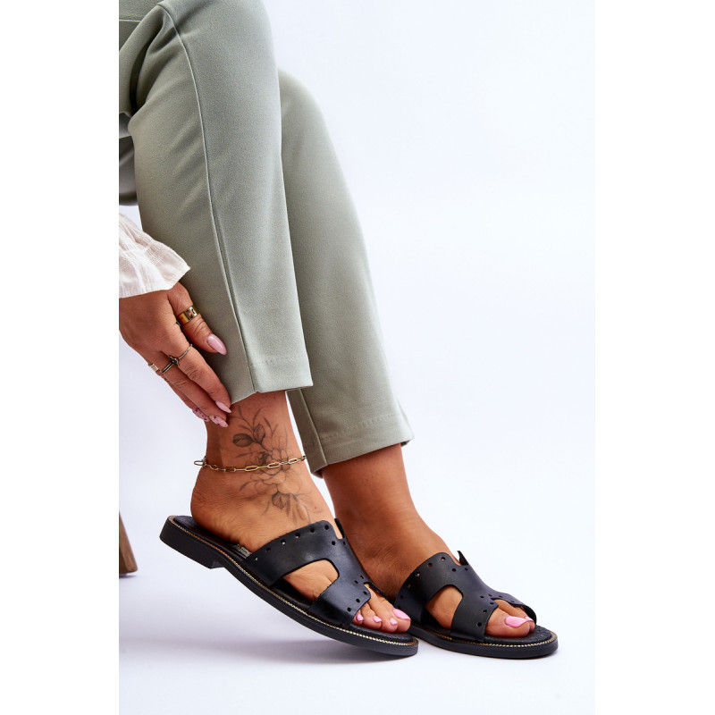 Moteriškos, klasikinės šlepetės yra pagamintos iš natūralios odos su išpjovomis. Ant plokščio kulno su dekoruotu padu. Šis modelis tikrai patiks kiekvienai stilių ir patogumą vertinančiai moteriai. Minkštas, odinis vidpadis leis patogiai dėvėti avalynę net ir visą dieną. Renkantis dydį, vadovaukitės dydžių lentele.