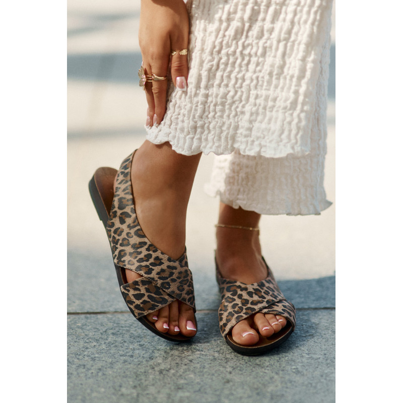 Elegantiški moteriški sandalai pagaminti iš aukštos kokybės natūralios odos. Nustatykite ant plokščio kulno. Sandalai turi atvirą kulną ir pirštus. Minkštas, odinis vidpadis užtikrins patogų naudojimą. Nugaroje ant dirželio yra papildoma guminė juosta, kuri užtikrins geresnį pėdos stabilumą. Puikiai tinka beveik bet kokiam vasaros stiliui. Jūs tikrai turėtumėte juos turėti! Rinkdamiesi dydį žiūrėkite dydžių lentelę.