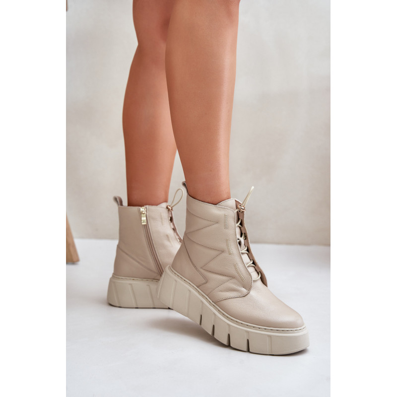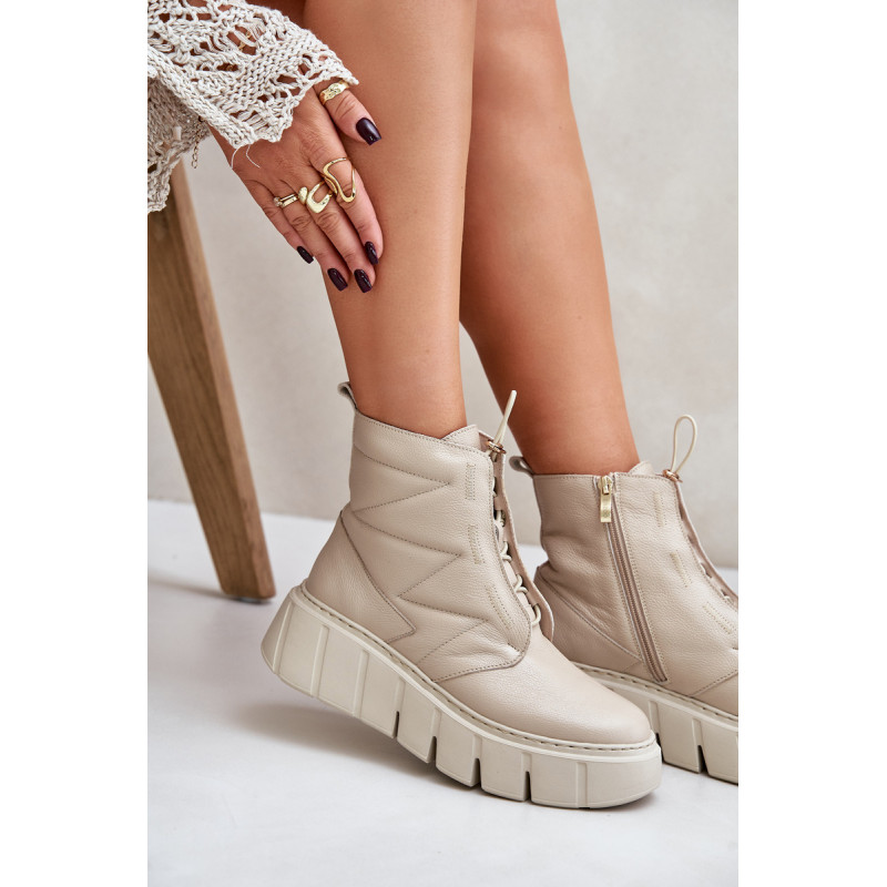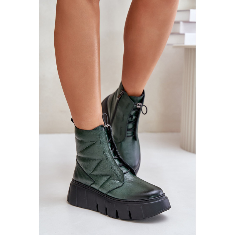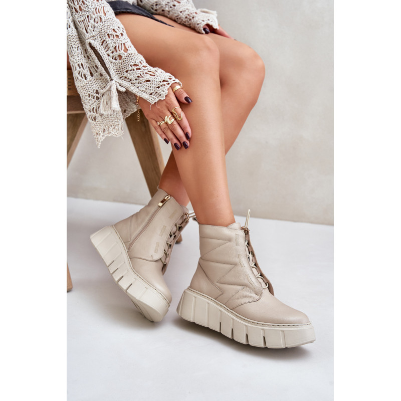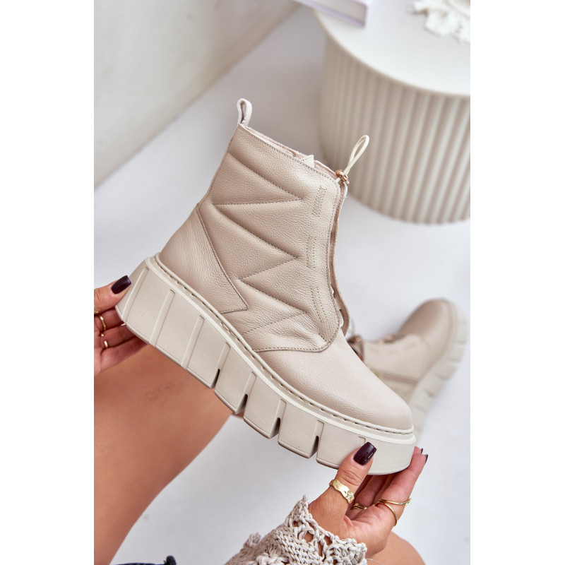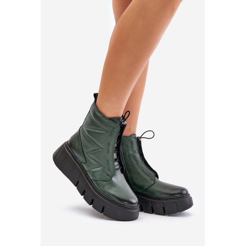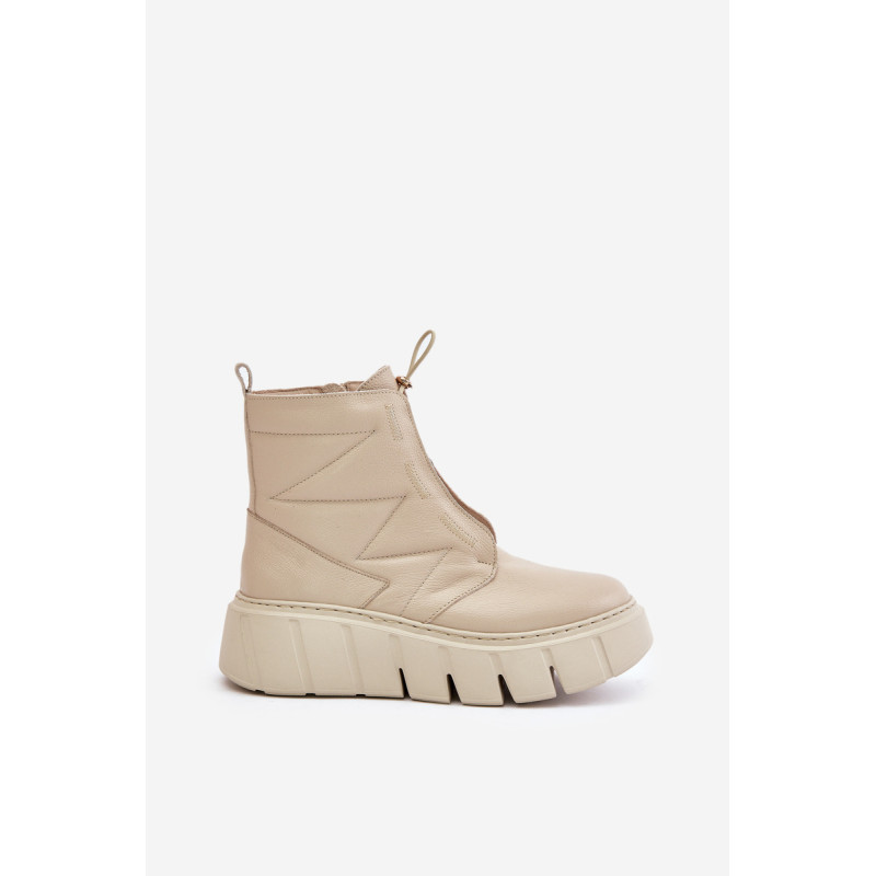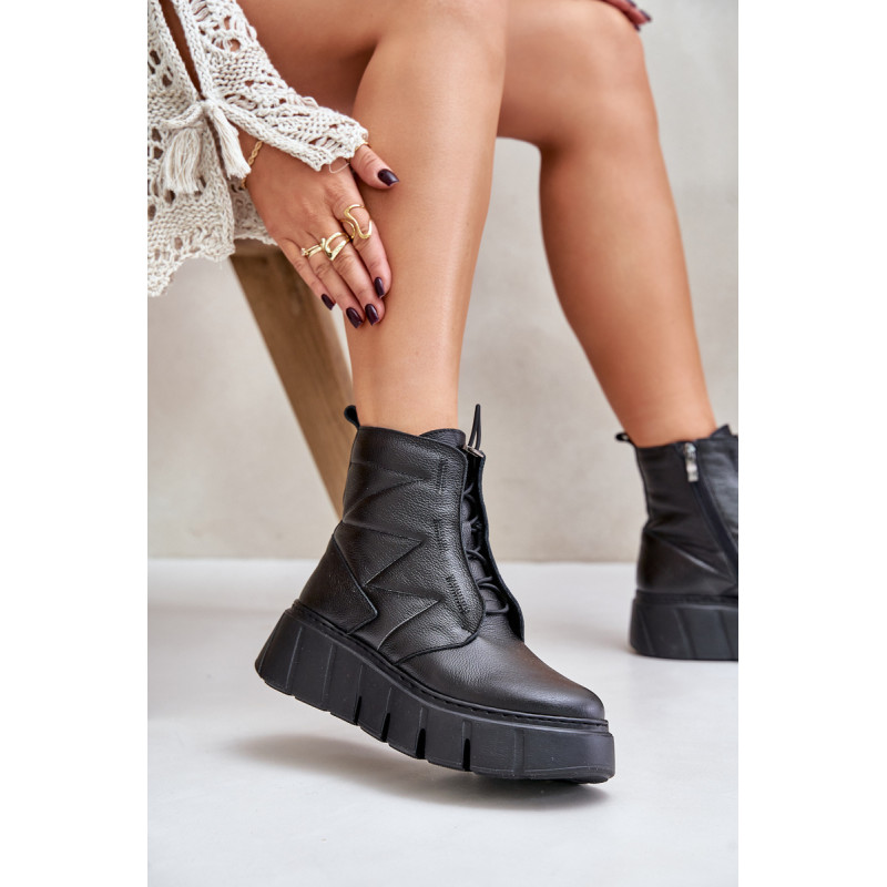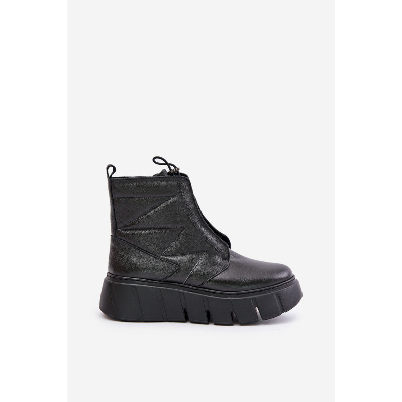 Ženske škornje iz naravne kože, postavljene na platformo in peto, so idealna izbira za hladnejše dni. Oblikovane s filcem, zagotavljajo toploto in udobje med nošenjem. Model z zadrgo olajša obuvanje, elegantna zasnova pa poskrbi, da se škornji odlično prilegajo tako vsakdanjim kot tudi bolj stilskim kombinacijam. Pri izbiri velikosti si oglejte tabelo velikosti.
