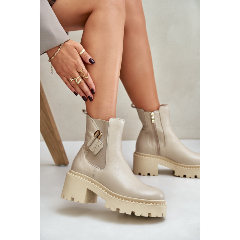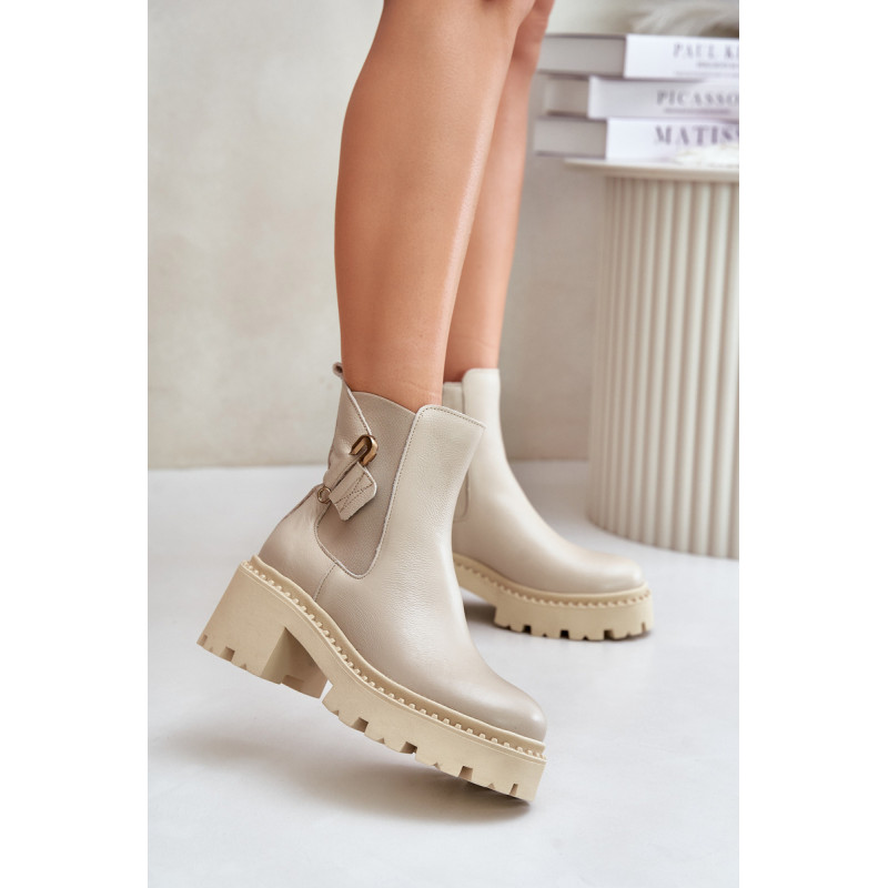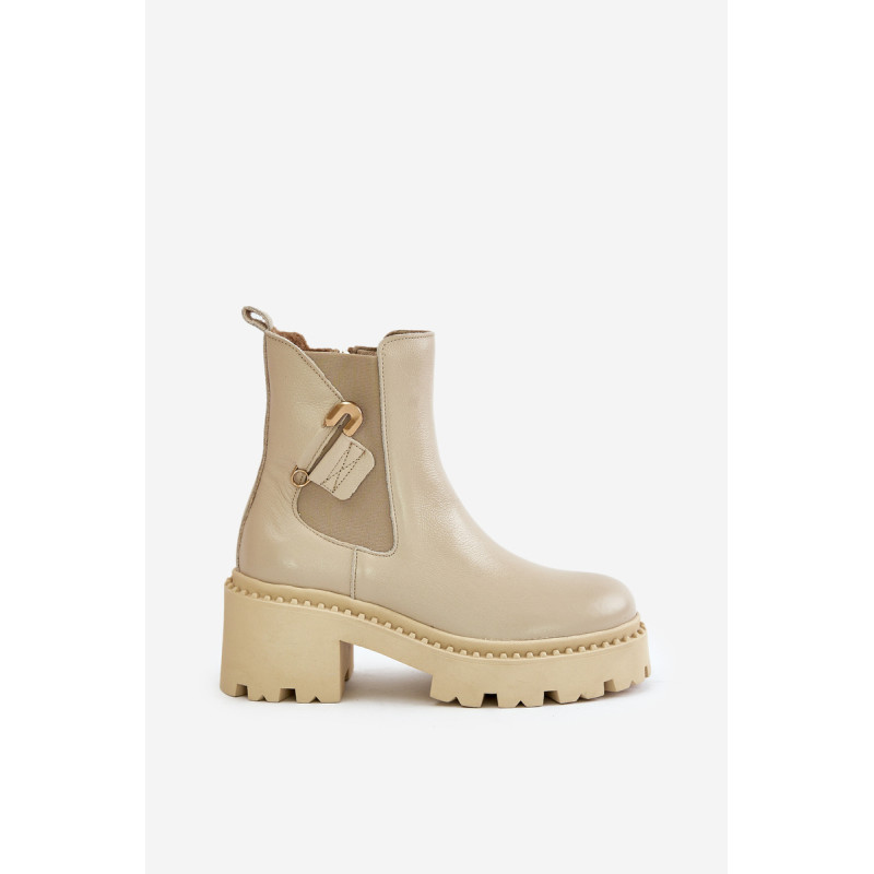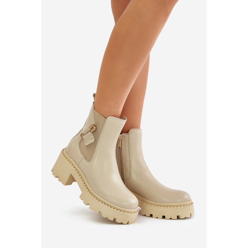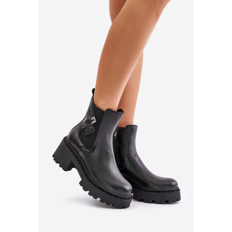 Auliniai batai pagaminti iš aukštos kokybės natūralios odos. Jie užsisega užtrauktuku. Pamušalas su veltiniu, suteikia komforto šaltomis dienomis. Modelis turi apvalius pirštus ir yra pastatytas ant stambaus kulno, kuris suteikia stabilumo. Pagrindinis akcentas – puošmena sagės pavidalu. Rinkdamiesi dydį, žiūrėkite dydžių lentelę.