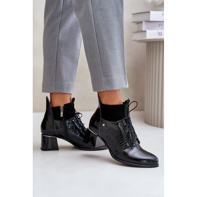 Elegantne gležnjarje iz naravne kože, podložene s filcem, so kombinacija stila in udobja za hladne dni. Zapirajo se z zadrgo. Odlikuje jih zgornji del z očarljivim živalskim vzorcem, ki jim daje karakter. Idealni za elegantne stilizacije, bodo odličen dodatek k vsakemu jesensko-zimskemu garderobnemu izboru. Pri izbiri velikosti si oglejte tabelo velikosti.