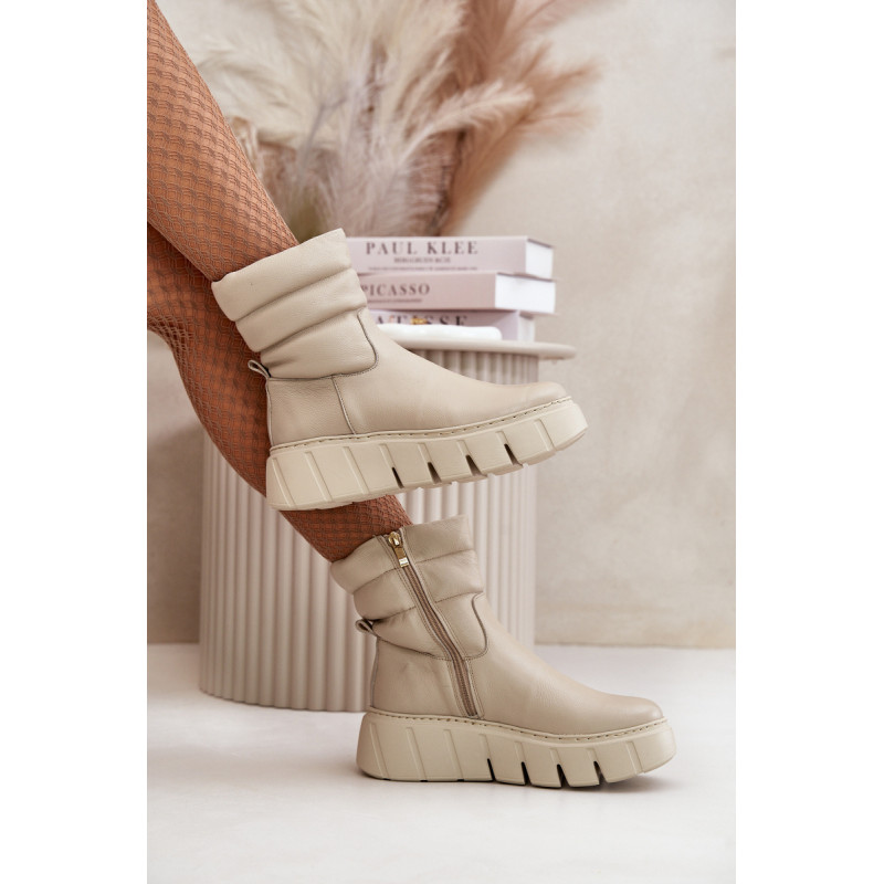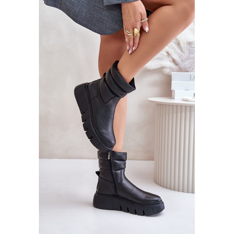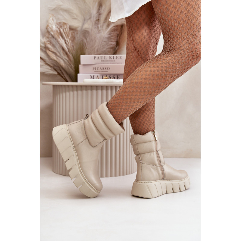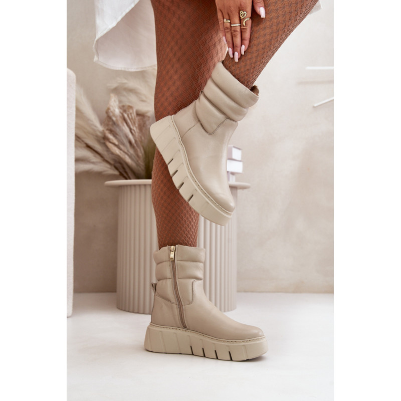 Moteriški aukštakulniai batai iš aukštos kokybės natūralios odos yra puikus pasirinkimas rudeniui ir žiemai. Jie turi praktišką užtrauktuką koto šone, todėl juos lengva užsidėti. Ant platformos su subtiliu pleištu dera modernus stilius ir patogumas. Interjeras išklotas veltiniu, suteikiančiu šilumą, o suapvalinti pirštai suteikia klasikinio žavesio. Šis modelis neabejotinai puikiai papildys daugelį rudens-žiemos aprangų. Rinkdamiesi dydį žiūrėkite dydžių lentelę.