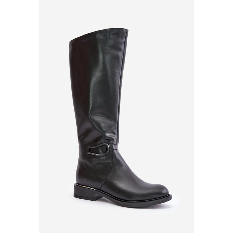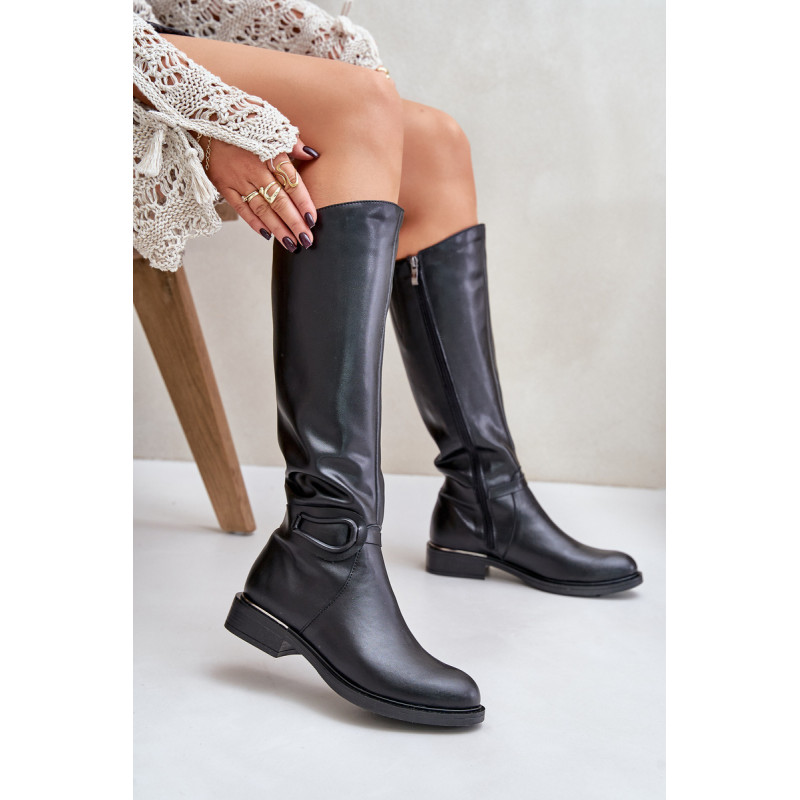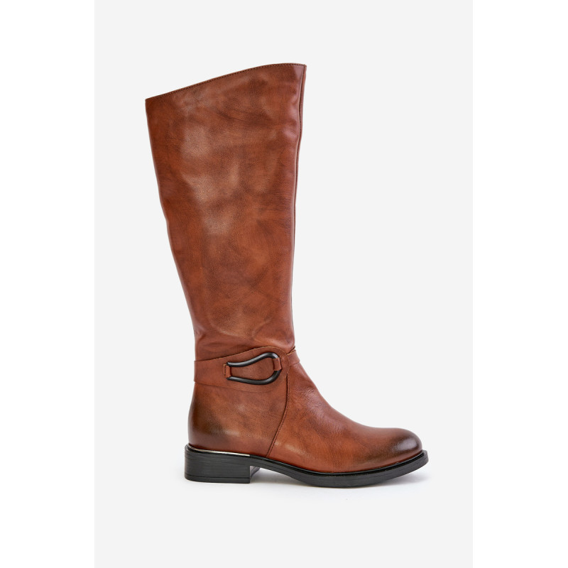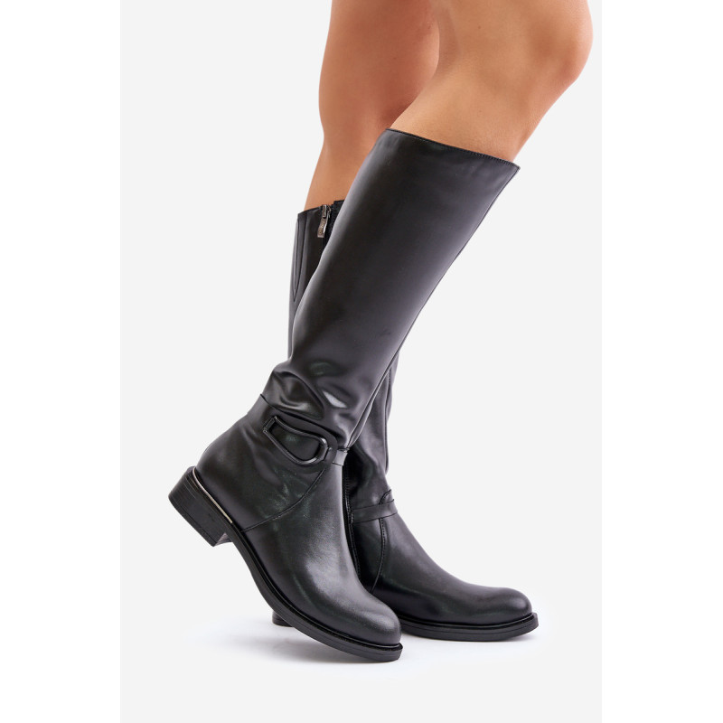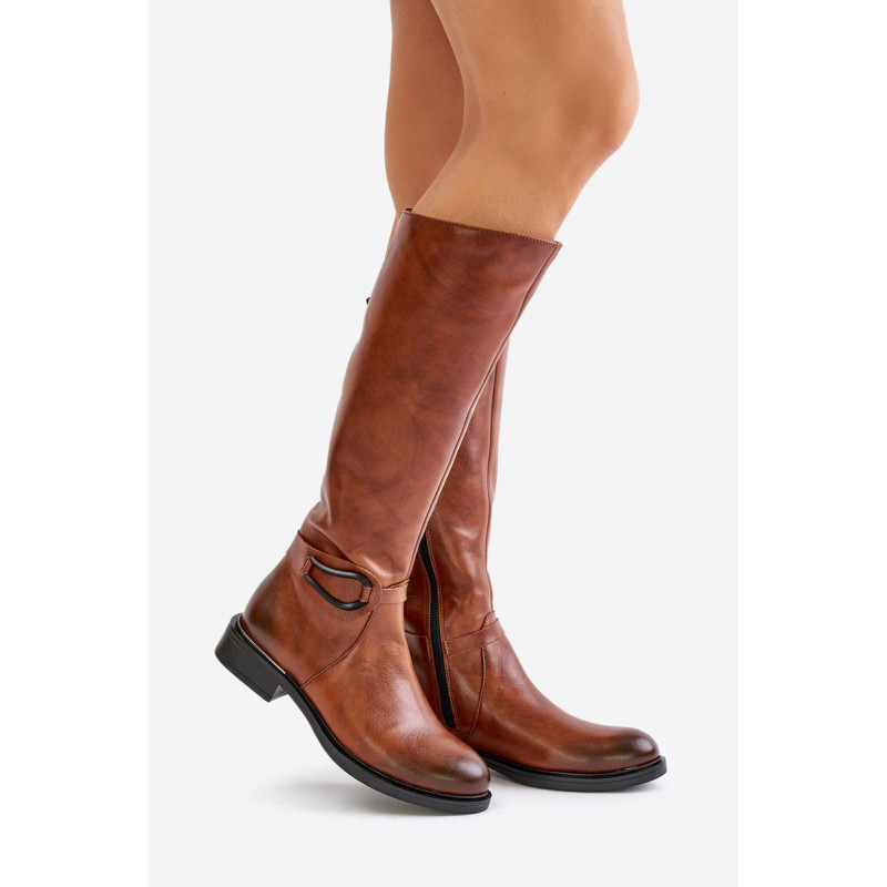 Ženski škornji iz naravne kože so elegantna in udobna rešitev. Zaradi ravnega pete je nošenje čez dan izjemno udobno. Škorenj, ki sega nad koleno, dodaja eleganco in se odlično prilega različnim stilom. Zapenjajo se z zadrgo, kar olajša obuvanje. Dekorativni pas na škornju jim daje edinstven značaj. Idealni tako za vsakodnevne izhode kot za posebne priložnosti, ti škornji bodo odličen dodatek vaši garderobi! Pri izbiri velikosti si oglejte tabelo velikosti.