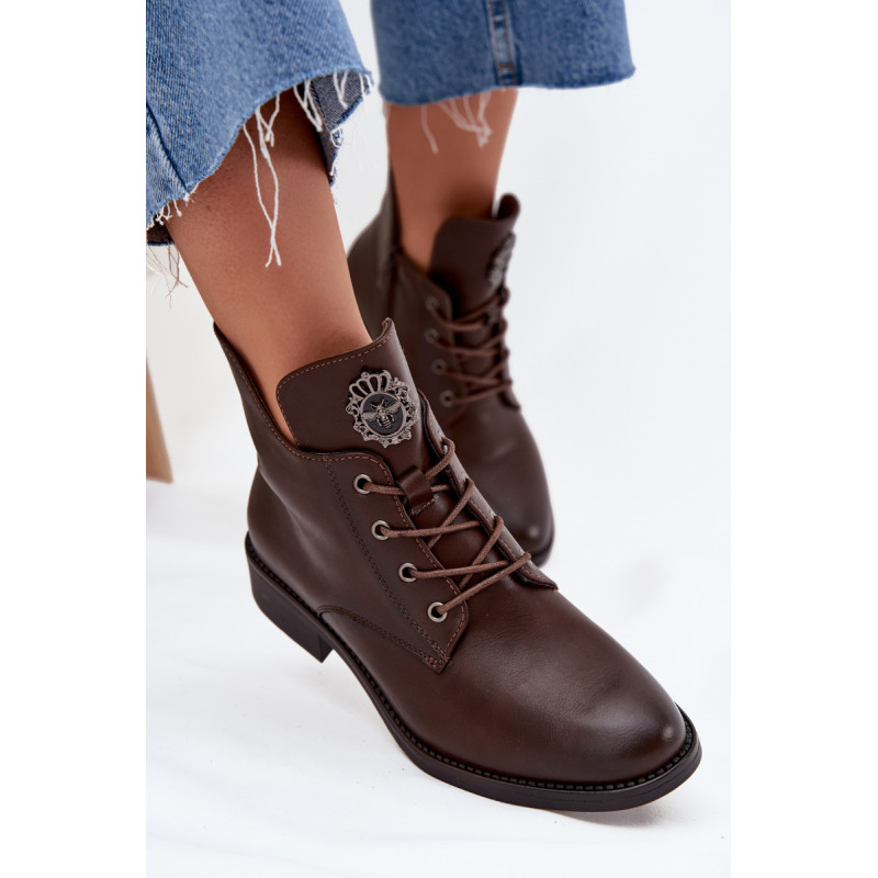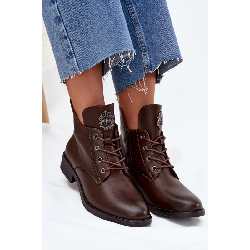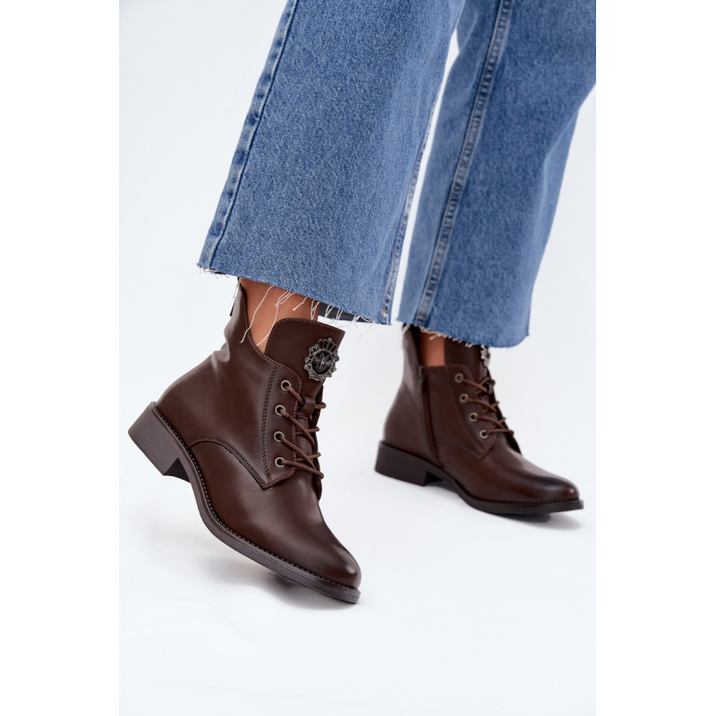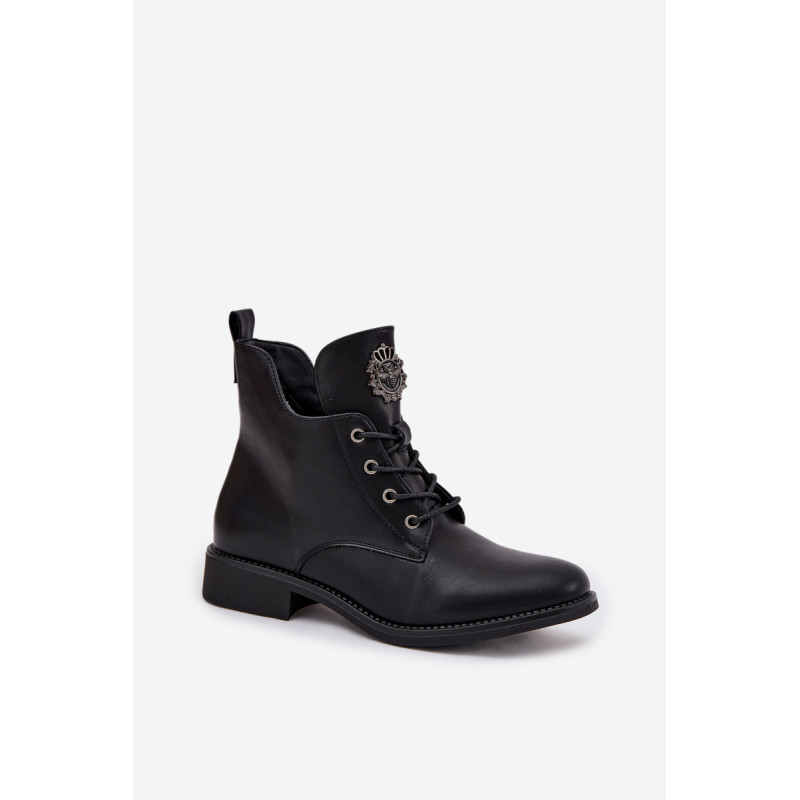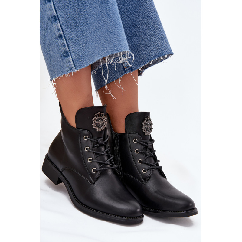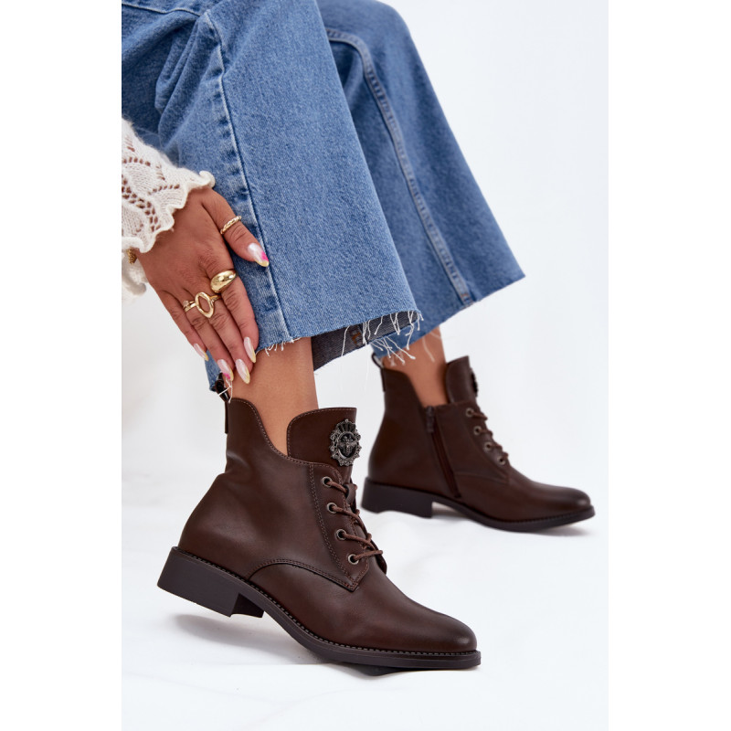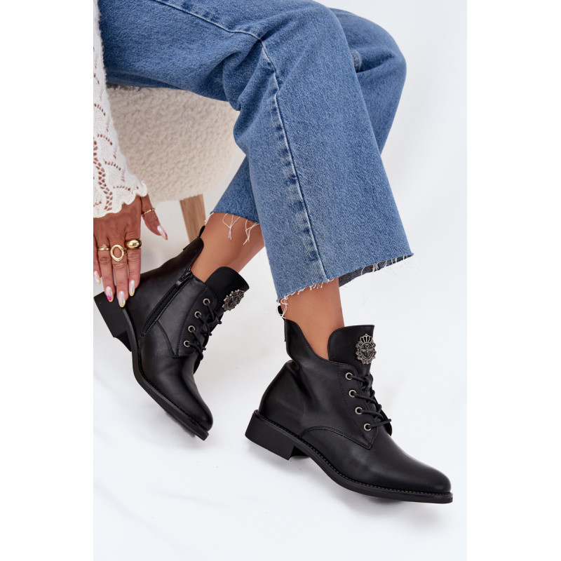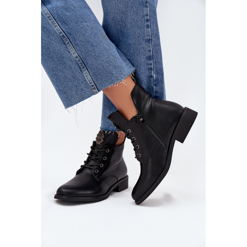 Ekologinės odos kulkšnies batai yra stilinga ir patogi avalynė vėsesnėms dienoms. Ant plokščio kulno jie suteikia patogumo dėvėti visą dieną. Modelis yra suvarstomas ir su užtrauktuku, todėl jį lengva reguliuoti ir greitai užsidėti. Vidus išklotas šilta avalynės vilna, kuri suteikia papildomos šilumos. Detalė ant liežuvio suteikia originalumo. Puikiai tinka kasdieniam laisvalaikio stiliui. Rinkdamiesi dydį, žiūrėkite dydžių lentelę.