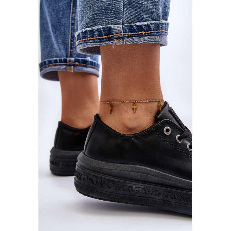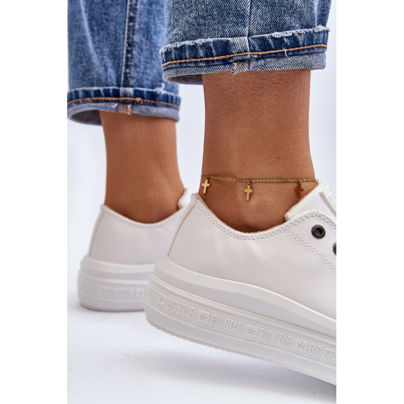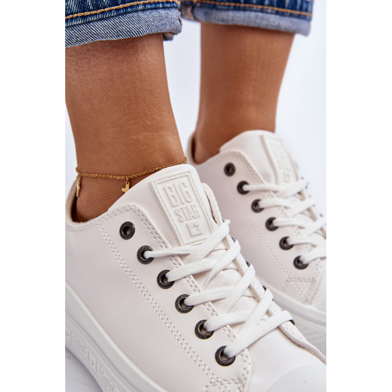 BIG STAR prekės ženklo moteriški sportbačiai su viršumi iki kulkšnies. Pagaminta iš eko odos. Modelis užsegamas užtrauktuku ir papildomai suvarstomas. Galinėje pusėje yra dekoratyvinis prekės ženklo logotipas. Rinkinys ant pado iš guminės medžiagos. Būtinai peržiūrėkite visą mūsų BIG STAR batų kolekciją. Rinkdamiesi dydį, žr. dydžių lentelę.