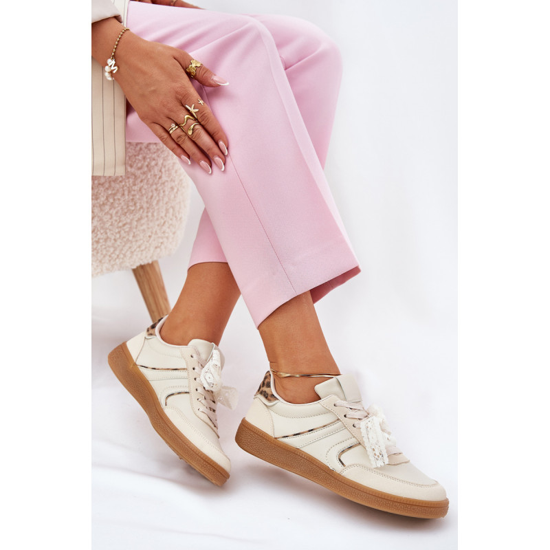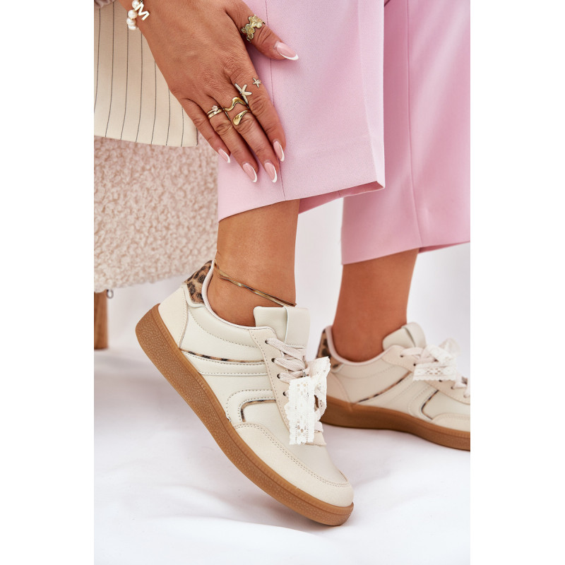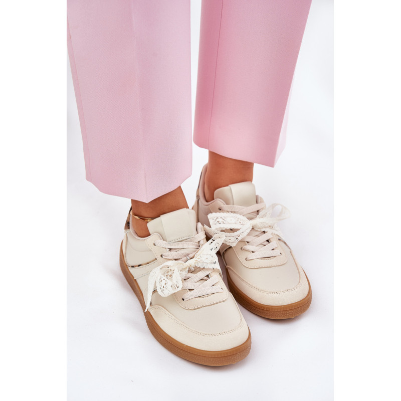 Stilingi moteriški sportbačiai iš ekologiškos odos su žemu pjaustymu, kurie sujungia komfortą su madingu išvaizda. Išimama putų padas, padengtas medžiaga, užtikrina komfortą ir tinkamą amortizaciją visą dieną. Ant raištelių yra nėriniai, kuriuos galima nuimti, leidžiant pritaikyti išvaizdą pagal asmenines nuostatas. Puikiai tinka kasdieniams stiliams, šie sportbačiai išsiskiria savo unikaliu išvaizdu. Renkantis dydį, vadovaukitės dydžių lentele.