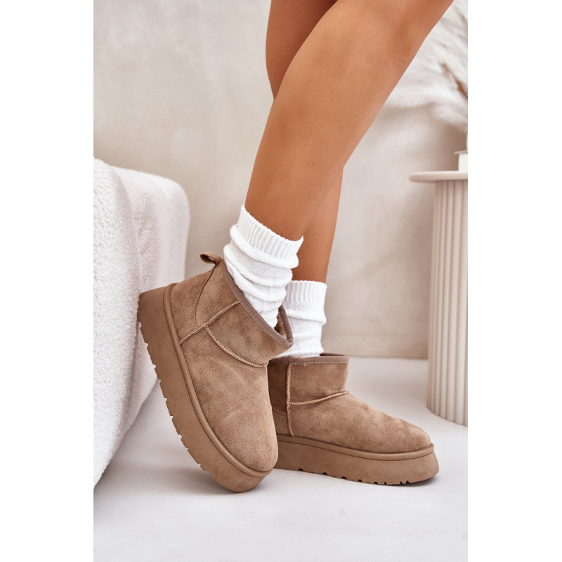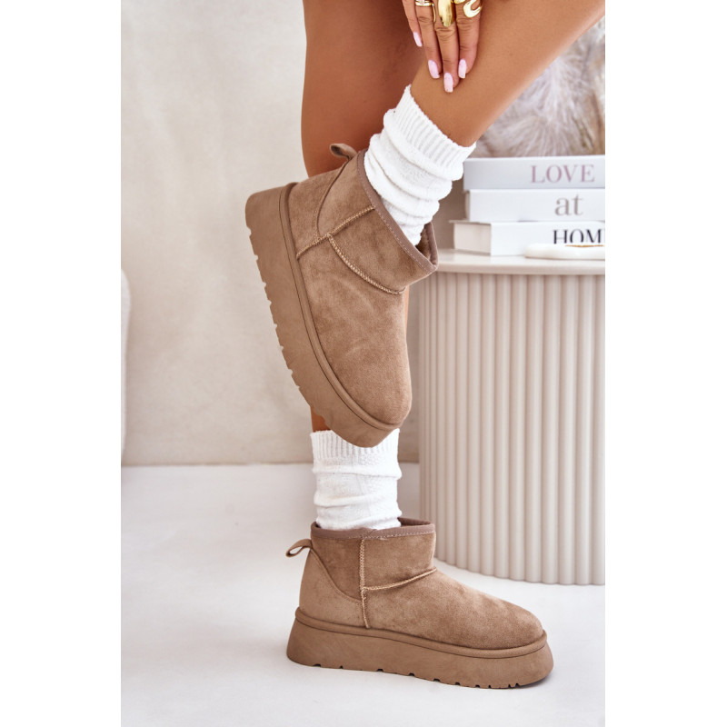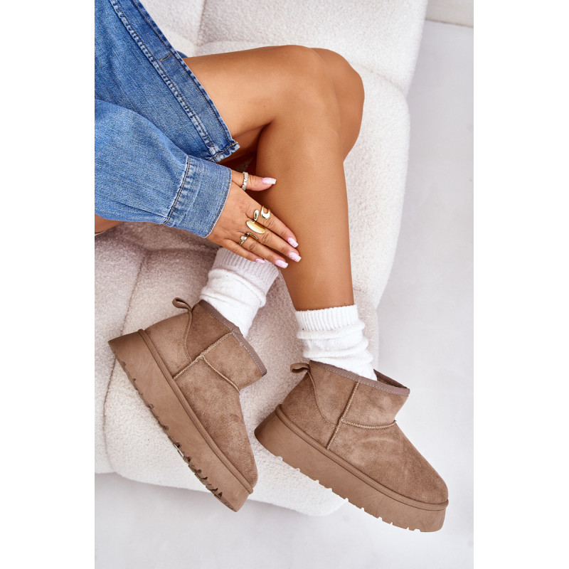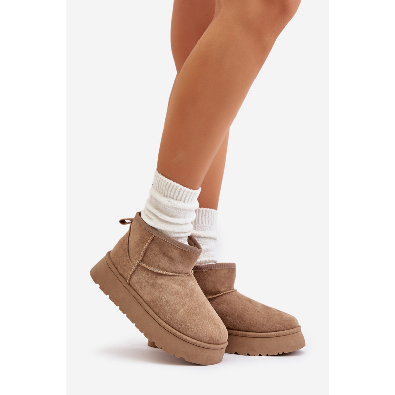 Moteriški sniego batai, pagaminti iš ekologiškos zomšos. Pastatykite ant platformos, kuri puikiai izoliuoja nuo šaltos žemės. Storas kailis viduje suteiks šilumos net šalčiausiomis dienomis. Itin madingas šios avalynės dizainas leidžia derinti prie įvairių aprangų, suteikiant charakterį kiekvienai žiemos įvaizdžiui! Rinkdamiesi dydį, žiūrėkite dydžių lentelę.