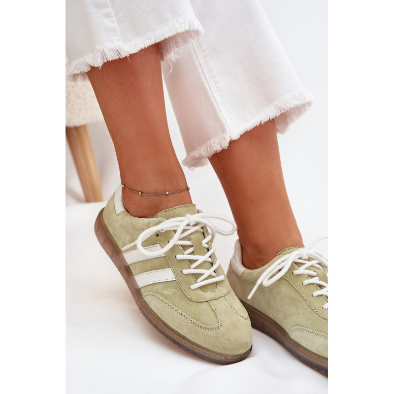 Moteriški sportbačiai, pagaminti iš natūralaus odos ir zamšo derinio, su žemu viršumi, yra puikus pasirinkimas tiems, kurie vertina komfortą ir madingą išvaizdą. Odinė pado įdėklas užtikrina komfortą visą dieną, o stilingas dizainas leidžia batus derinti tiek su kelnių, tiek su sijonų ir suknelių. Jie tikrai taps jūsų mėgstamiausiu kasdienio stiliaus elementu. Renkantis dydį, vadovaukitės dydžių lentele.