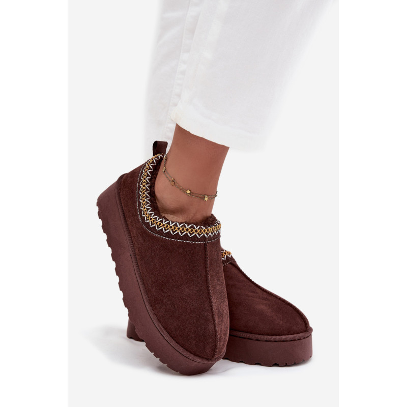 Moteriški žieminiai batai iš ekologiško zomšiaus yra puikus pasirinkimas žiemai. Modelis papuoštas siuvinėta apvade, kuri suteikia visumai išskirtinį charakterį. Įrengti ant gumos platformos, kuri veiksmingai izoliuoja nuo šalčio, o viduje esantis minkštas kailio pamušalas užtikrina komfortą ir šilumą šaltomis dienomis. Šie batai sujungia funkcionalumą su madingu įvaizdžiu – puikiai tinka kasdienėms pasivaikščiojimams ir žieminiams stiliams. Pasirenkant dydį, prašome vadovautis dydžių lentele. Renkantis dydį, vadovaukitės dydžių lentele.
