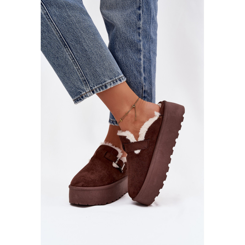Moteriški sniegu batai, pagaminti iš ekologiško zomšos, yra puikus stiliaus ir patogumo derinys žiemą. Pastatyti ant platformos, kuri švelniai siaurina siluetą ir puikiai izoliuoja nuo šalto paviršiaus, jie užtikrina komfortą dėvint. Viršutinė bato dalis papuošta minkštu kailiu ir dekoratyvine juostele, suteikiančia visumui madingą žieminį įvaizdį. Bato vidus taip pat išklotas kailiu, užtikrinantį šilumą ir malonią apgaubiančią jausmą net ir šaltomis dienomis. Tai stilingi sniegų batai, puikiai tinkantys kasdieniams žieminiams deriniams. Renkantis dydį, vadovaukitės dydžių lentele.