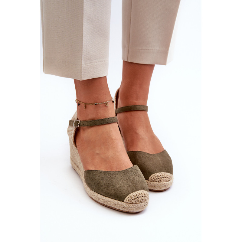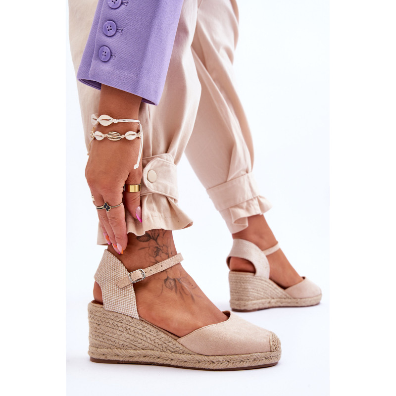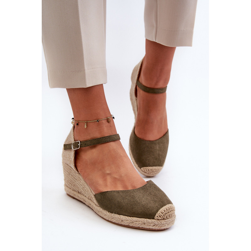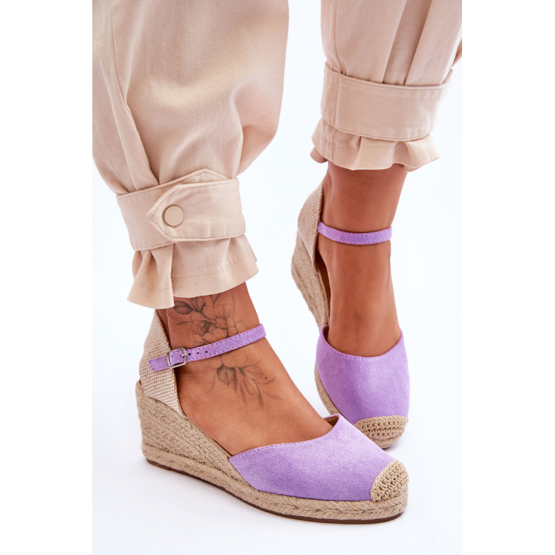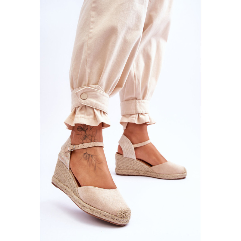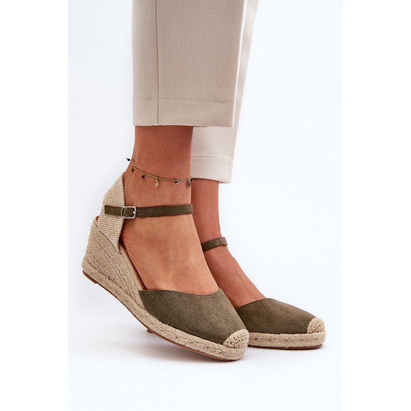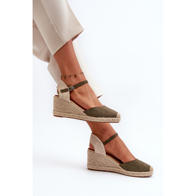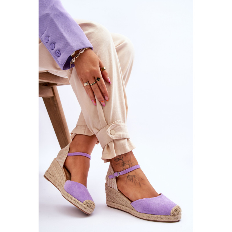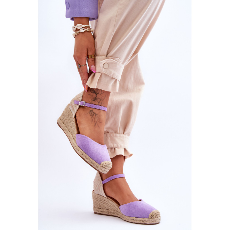 Klasikinės moteriškos espadrilės basutės yra pagamintos iš ekologiškos zomšos ir audinio derinio. Šie sandalai turi reguliuojamą dirželį su sagtimi aplink kulkšnį. Įrenginys ant pleišto ir platformos, papuoštos džiuto pyne. Šių batų padas yra guminis ir neslidus. Minkštas, ekologiškas zomšinis vidpadis pasirūpins Jūsų komfortu ir patogumu. Renkantis dydį, vadovaukitės dydžių lentele.