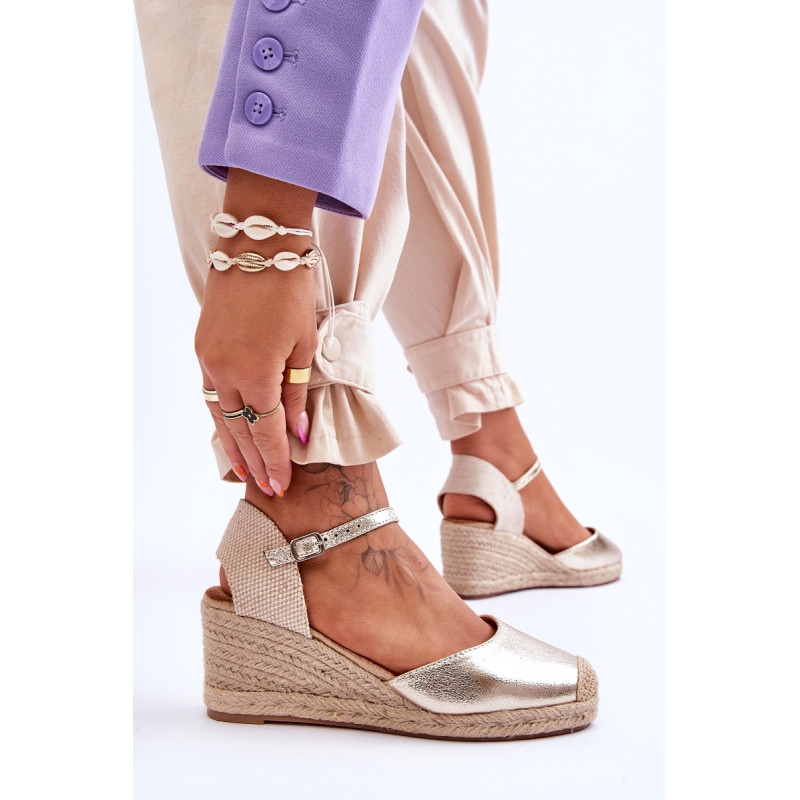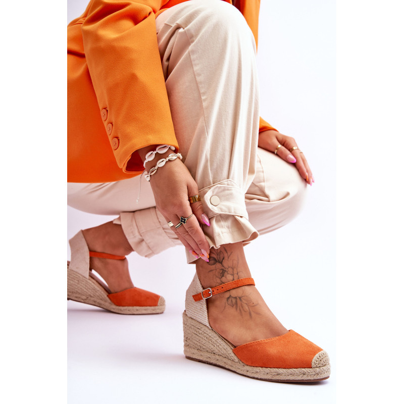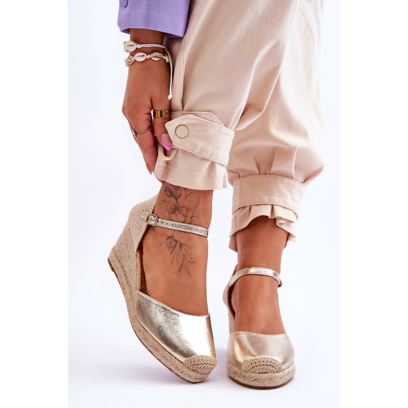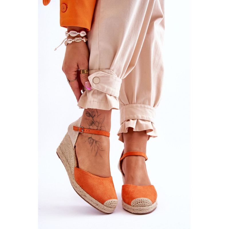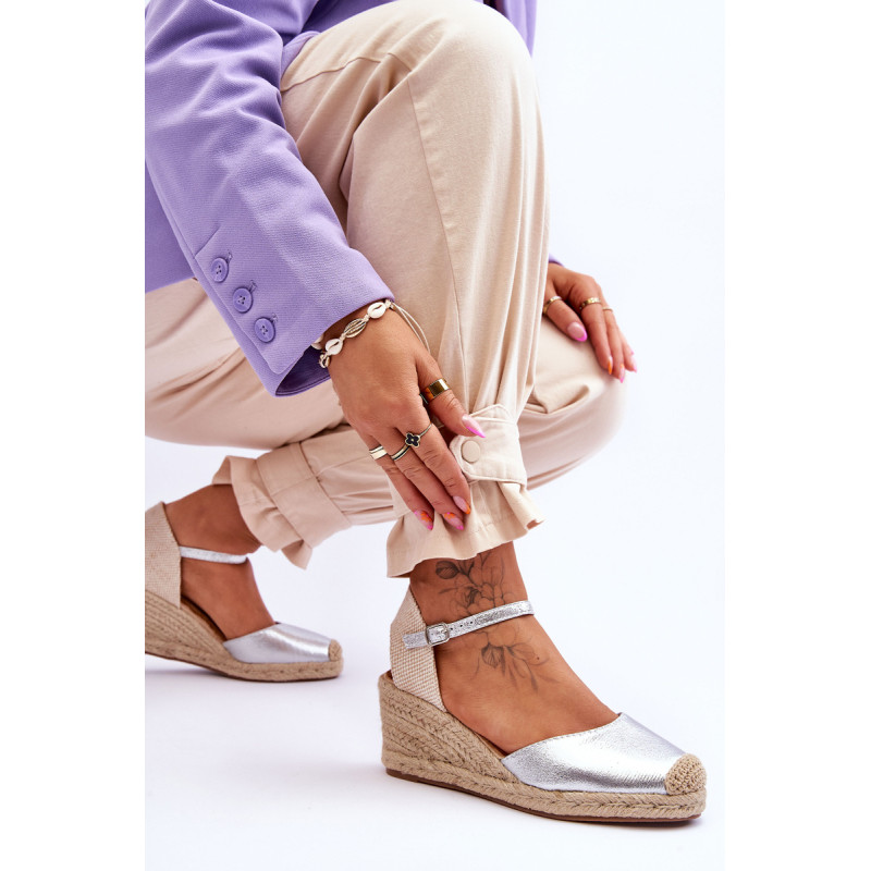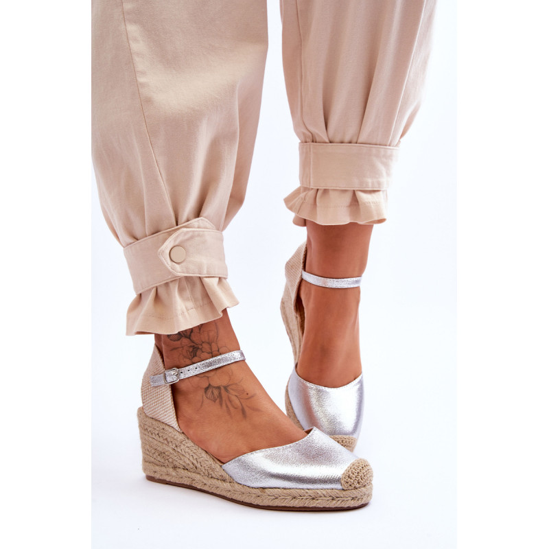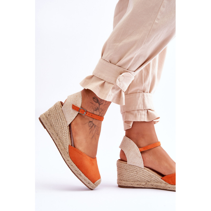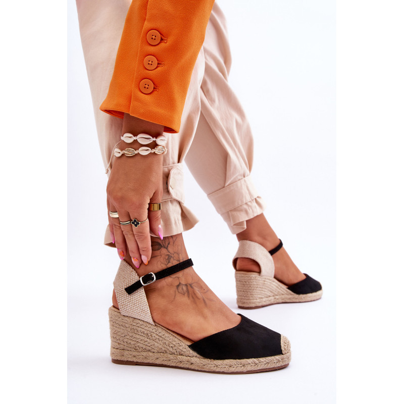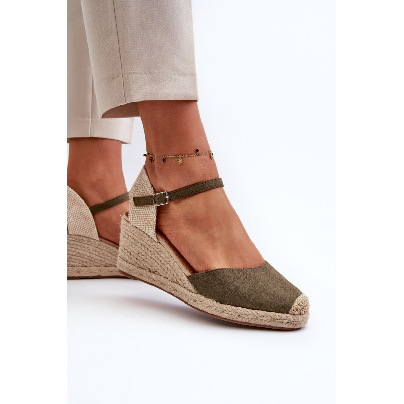 Klasikinės moteriškos espadrilės basutės yra pagamintos iš ekologiškos zomšos ir audinio derinio. Šie sandalai turi reguliuojamą dirželį su sagtimi aplink kulkšnį. Įrenginys ant pleišto ir platformos, papuoštos džiuto pyne. Šių batų padas yra guminis ir neslidus. Minkštas, ekologiškas zomšinis vidpadis pasirūpins Jūsų komfortu ir patogumu. Renkantis dydį, vadovaukitės dydžių lentele.