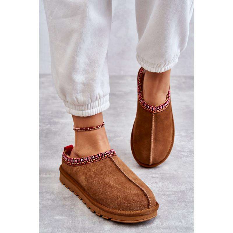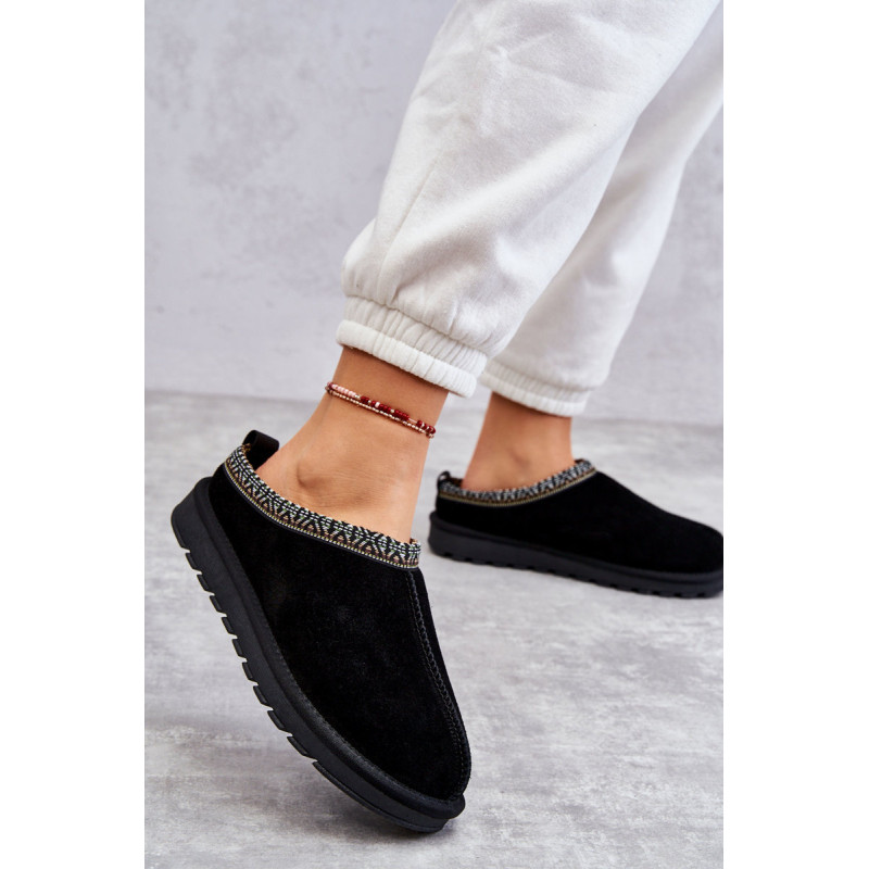 Šios užsegamos šlepetės yra puikus pasirinkimas šaltomis dienomis namuose! Pagaminta iš aukštos kokybės natūralios odos, su papildomu papuošimu viršutinėje dalyje. Šlepetės ant masyvios platformos, su neslystančiu padu. Šlepetės buvo izoliuotos viduje su maloniu liesti, storu kailiu. Rinkdamiesi dydį žiūrėkite dydžių lentelę.