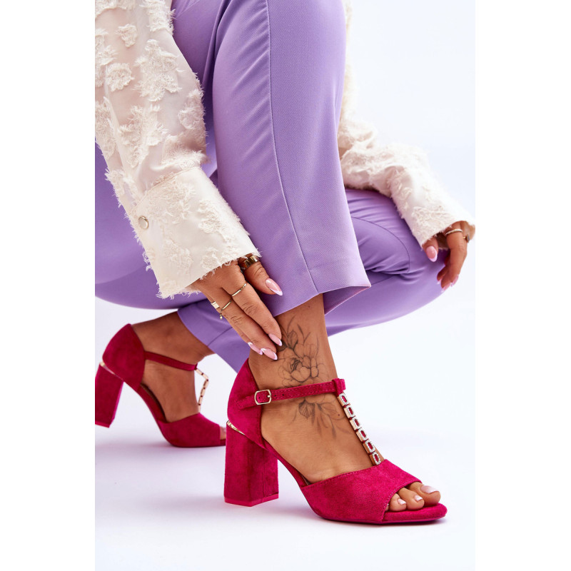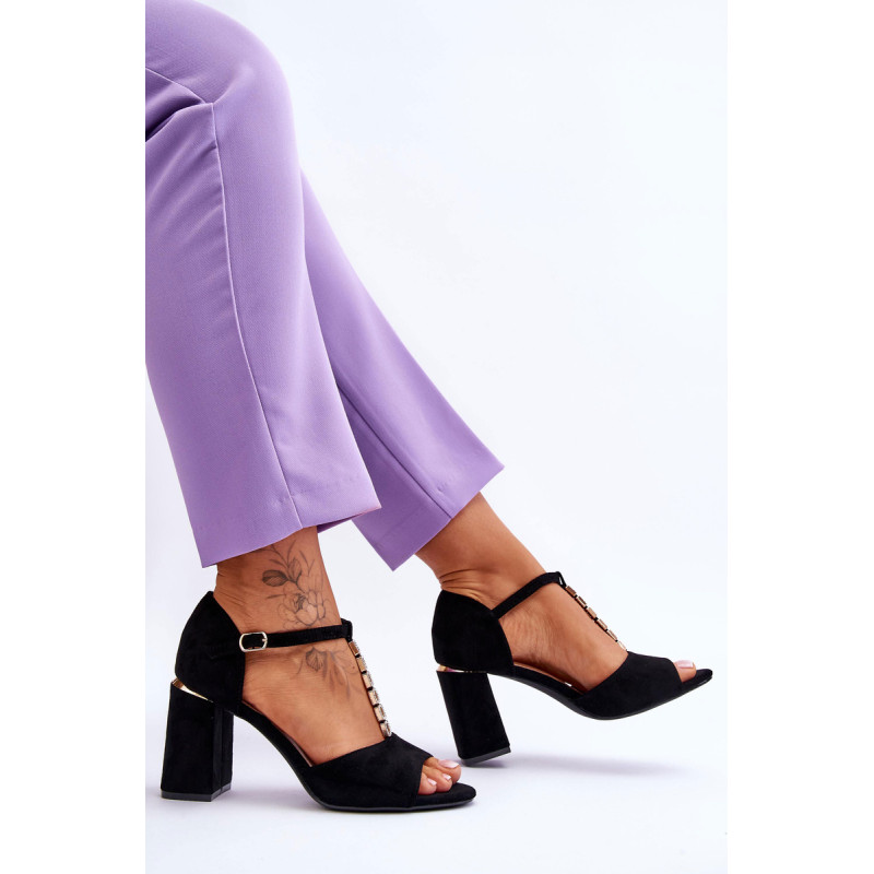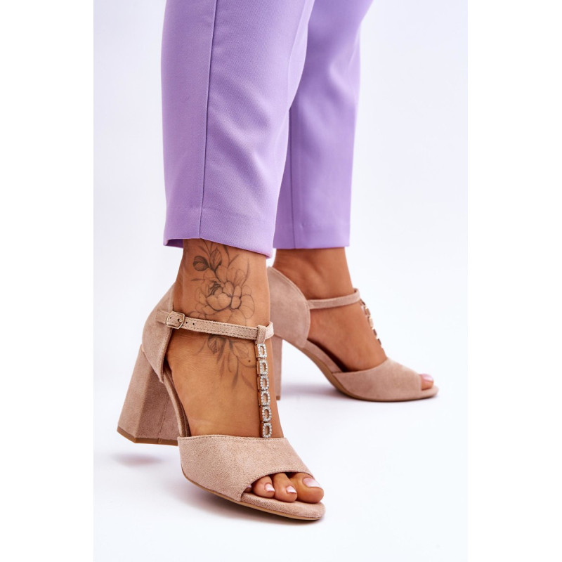 Klasikiniai moteriški sandalai yra pagaminti iš ekologiškos zomšos. Šis modelis papuoštas putojančiais cirkonį imituojančiais cirkonio akmenukais. Sandalai turi standintą kulno atlošą ir ekoodinį, minkštą vidpadį. Šis modelis buvo pastatytas ant kulno stulpelio pavidalu ir užsegamas reguliuojamu dirželiu su sagtimi. Rinkdamiesi dydį, žiūrėkite dydžių lentelę.