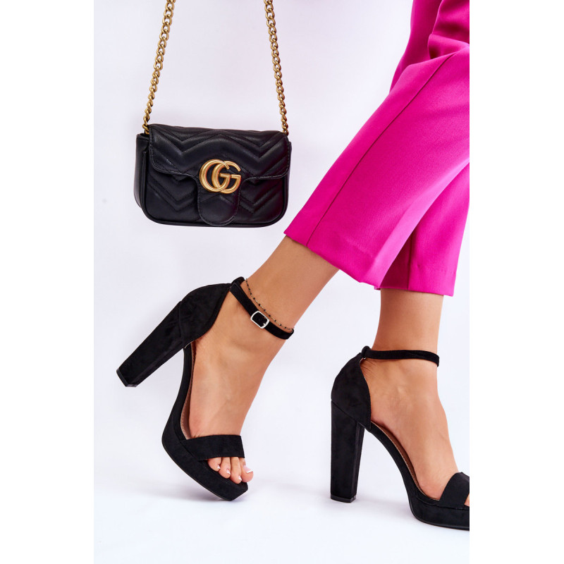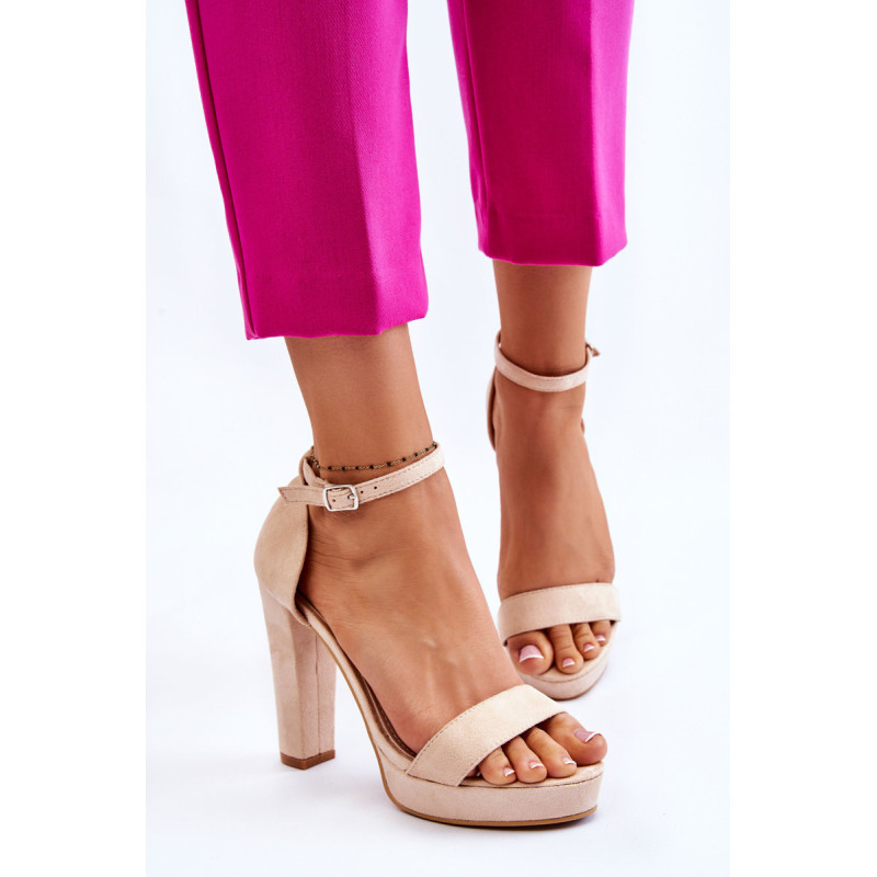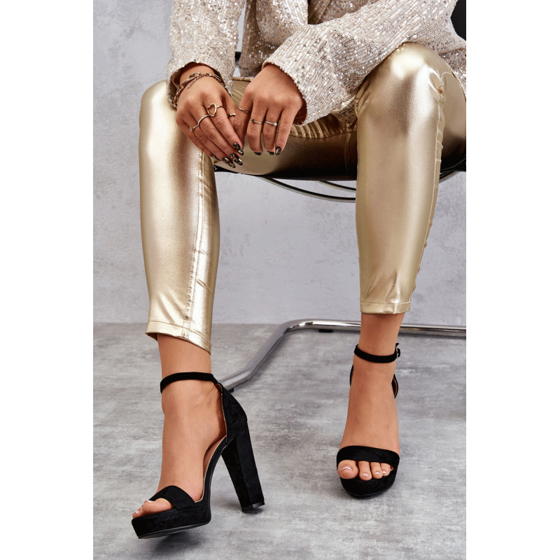 Sandalai uždedami ant platformos, o aukštakulniai – plono stulpelio formos. Vidpadis pagamintas iš eko odos. Modelis užsegamas aplink kulkšnį reguliuojamu dirželiu su sagtimi. Puikus modelis daugeliui svarbių švenčių. Puikiai tinka prie suknelių, sijonų ir kelnių. Rinkdamiesi dydį, žiūrėkite dydžių lentelę.