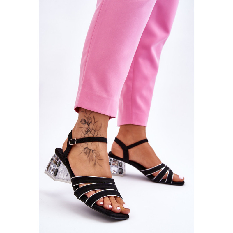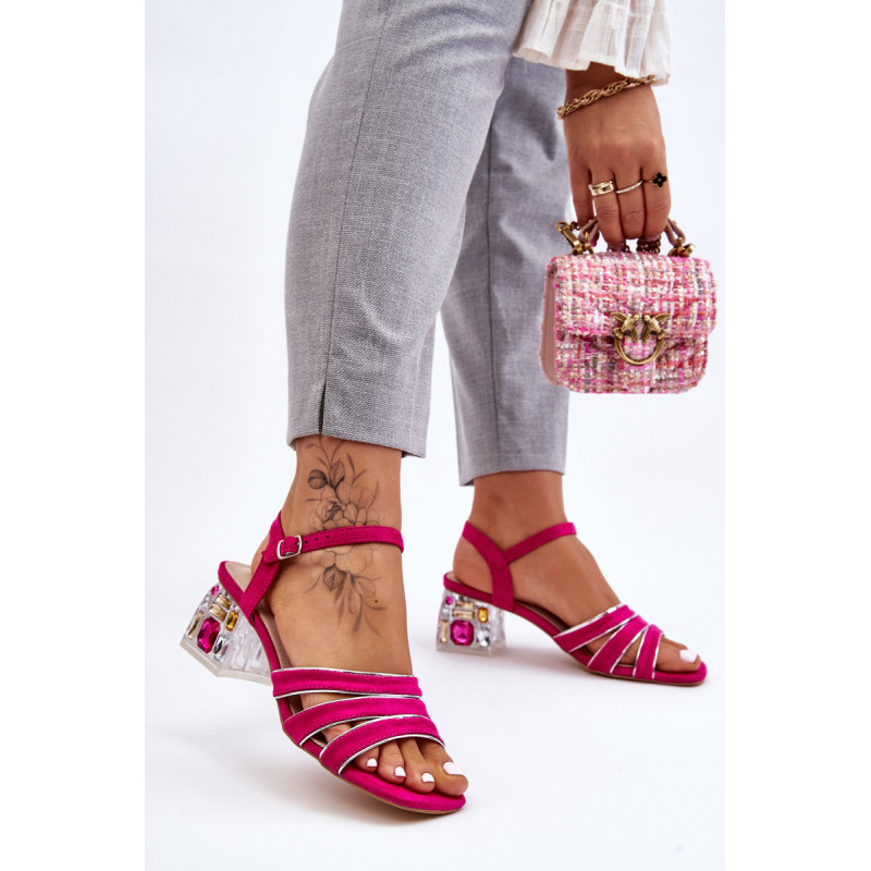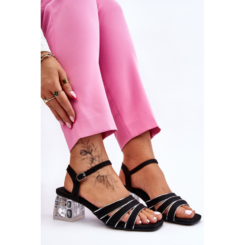 Fenomenalūs moteriški sandalai, pagaminti iš ekologiškos zomšos. Jie buvo dedami ant dekoruoto bloko formos kulno. Nosis atvira, kampuota. Minkštas vidpadis iš natūralios odos užtikrins komfortą naudojimo metu. Šis modelis idealiai tinka svarbiems susitikimams ar šventėms. Jūs tiesiog turėtumėte juos turėti savo drabužių spinta! Pasirinkdami dydį, vadovaukitės dydžių lentele.