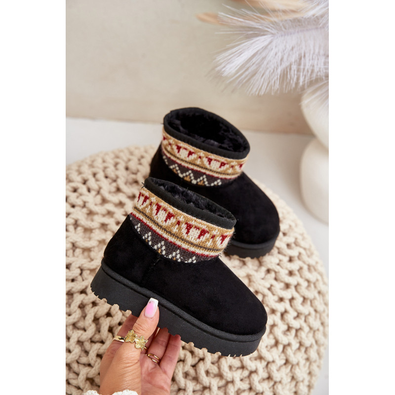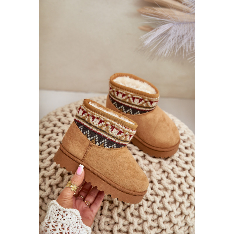 Vaikų sniego batai, pagaminti iš ekologiško zomšo, yra puikus pasirinkimas žiemai. Šiltai aptraukti minkšta pūkine medžiaga, jie suteikia šilumą ir komfortą dėvint. Viršus, dekoruotas raštuotu įdėklu, suteikia jiems madingą charakterį. Užsidedamas dizainas palengvina greitą užsidėjimą, todėl jie yra praktiški ir stilingi batai šaltoms dienoms. Renkantis dydį, vadovaukitės dydžių lentele.
