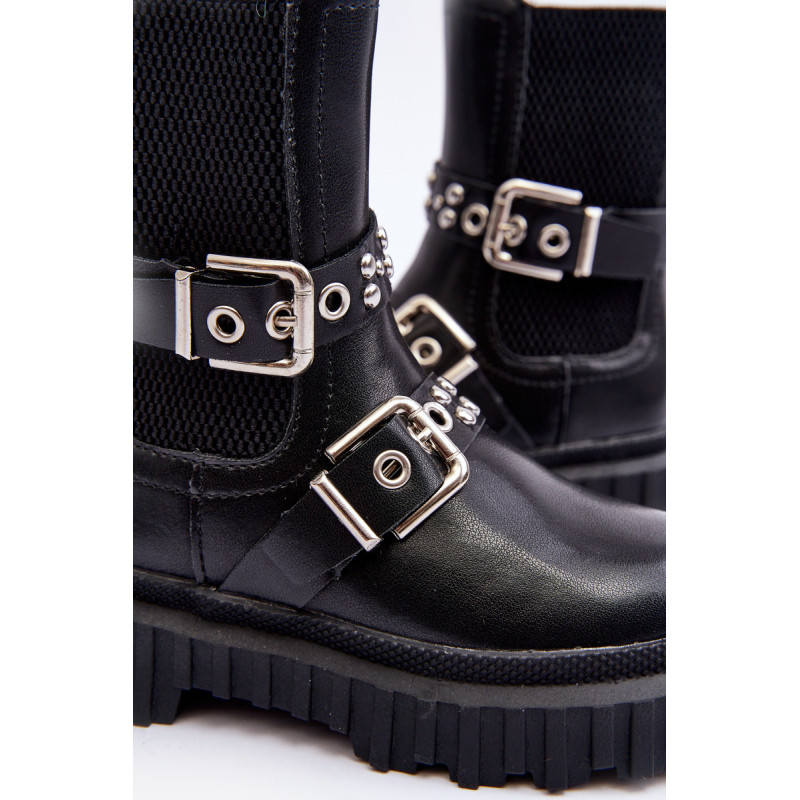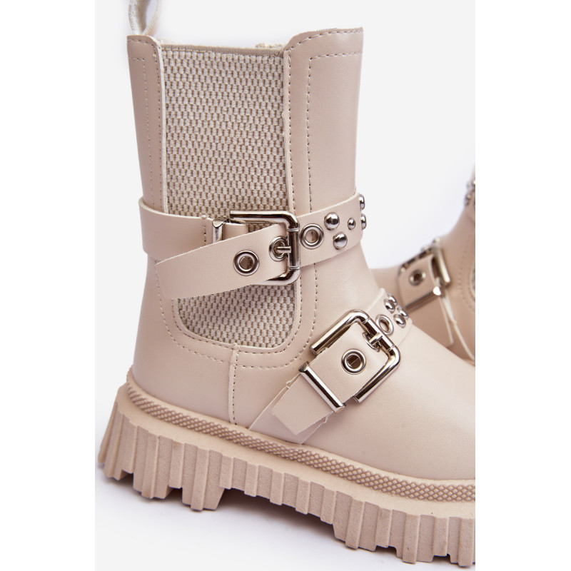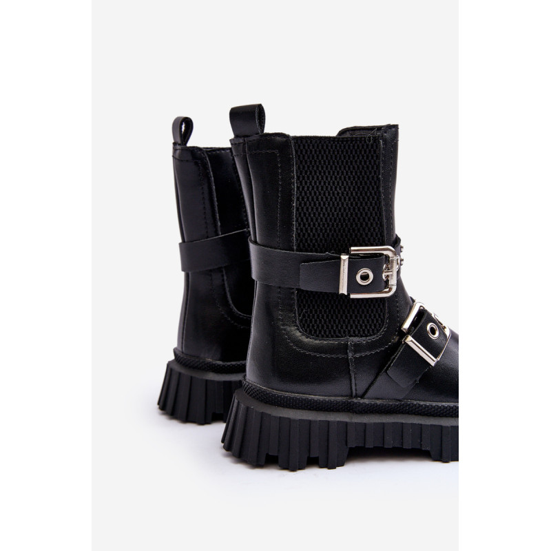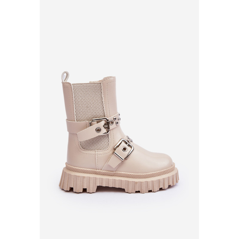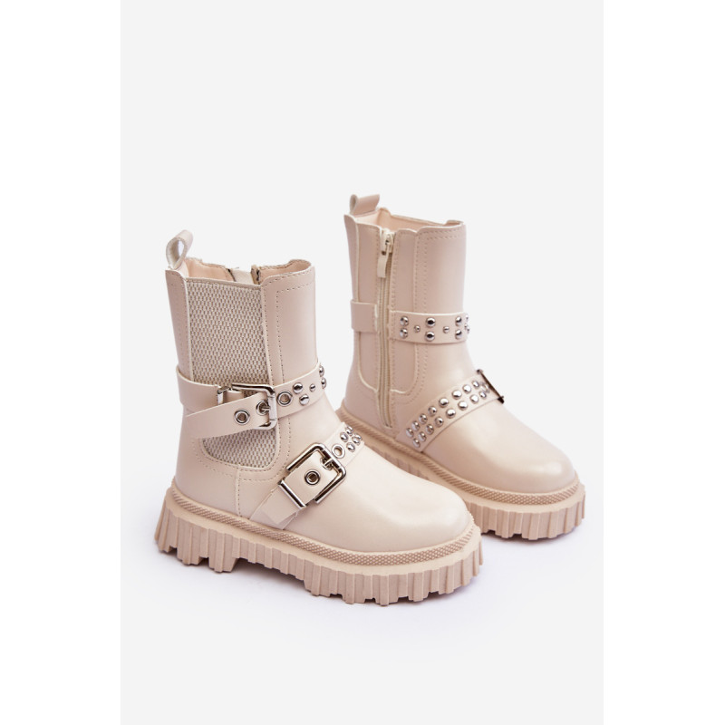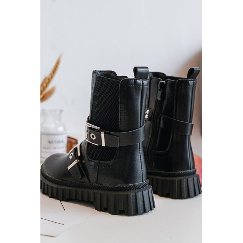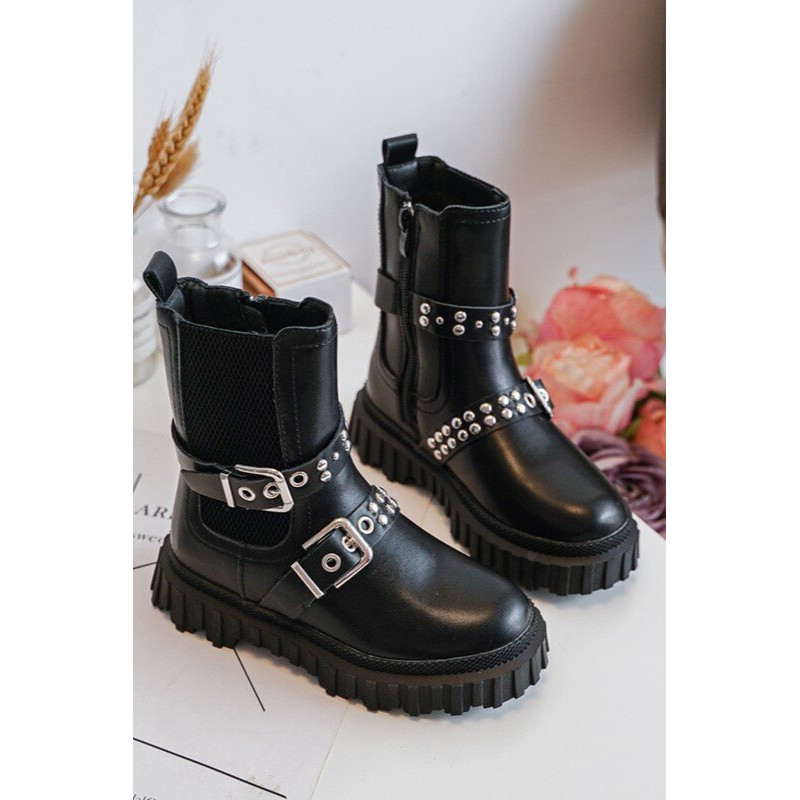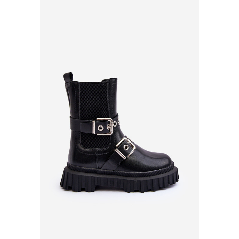 Vaikiški batai iš ekologiškos odos. Užsegamas užtrauktuku šone. Viršus dekoruotas petnešėlėmis su sagtimi. Pastatas ant platformos ir plokščias kulnas pagamintas iš guminės medžiagos. Vidus apšiltintas kailiu. Suapvalinti kojų pirštai. Puikus modelis Jūsų vaikui! Būtinai peržiūrėkite kitus vaikiškų batų modelius! Rinkdamiesi dydį žiūrėkite dydžių lentelę.