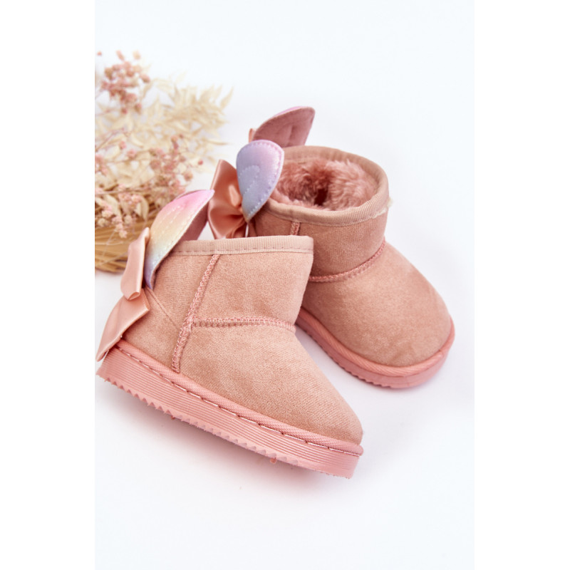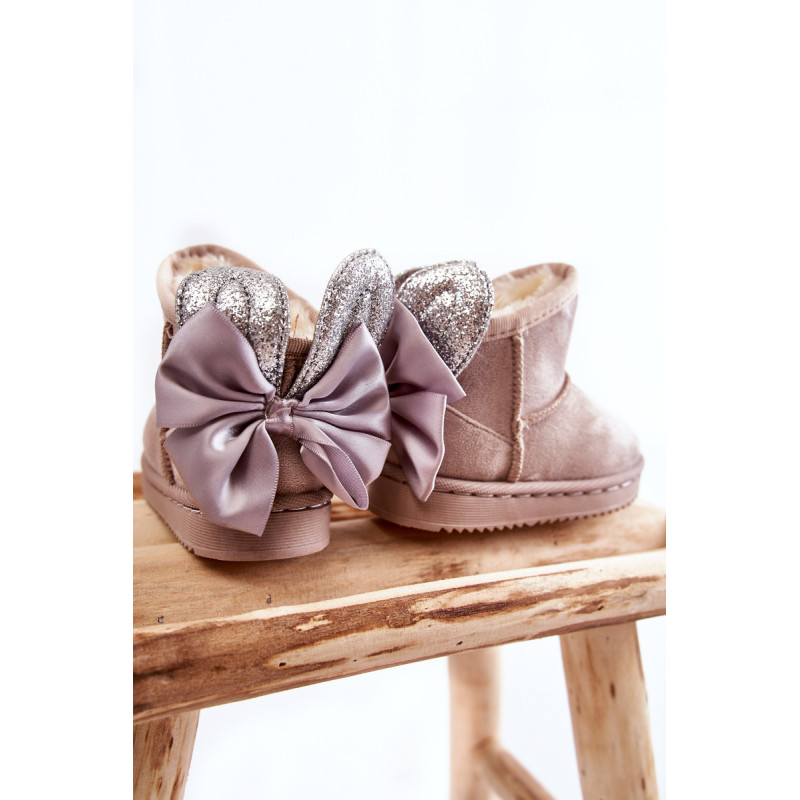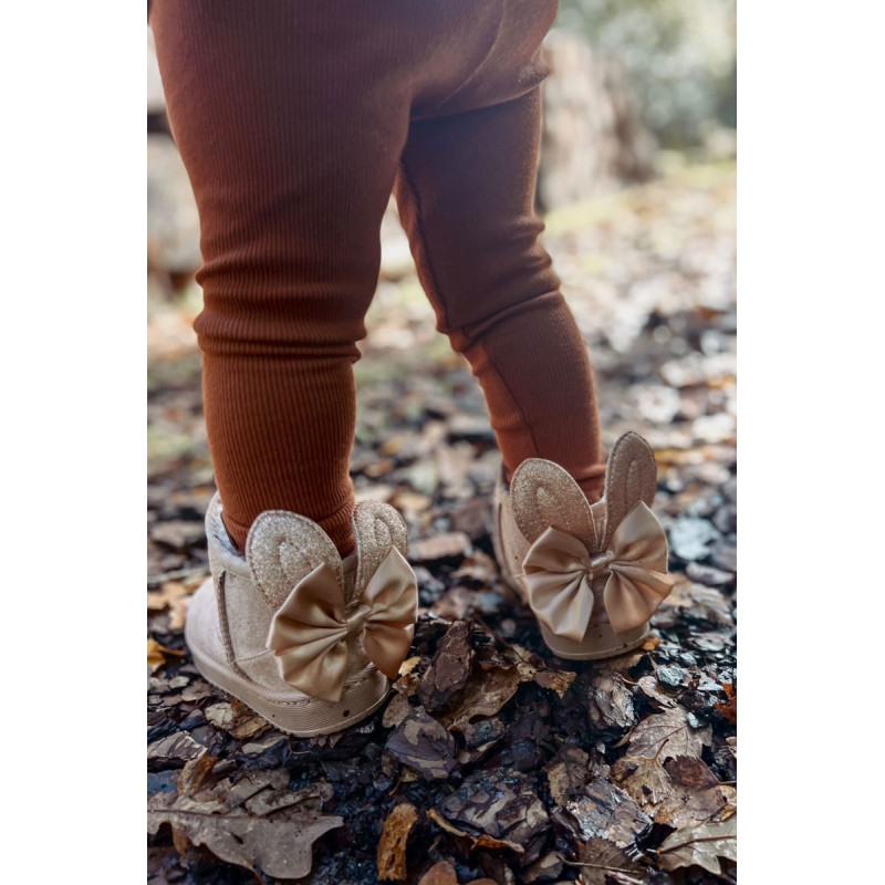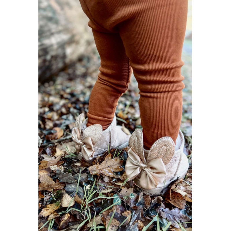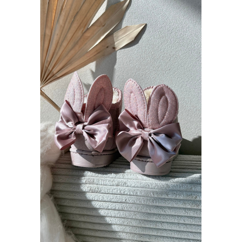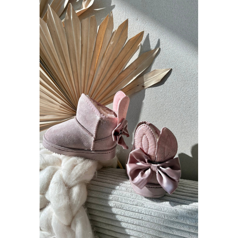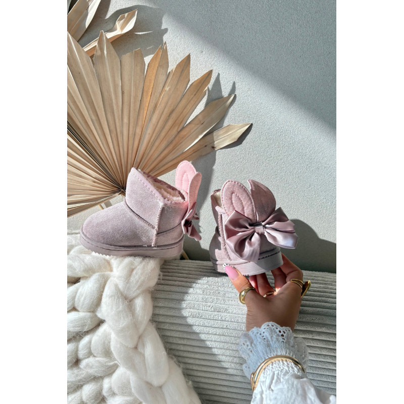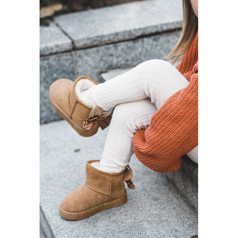 Šaltomis dienomis verta pasirūpinti patogia avalyne. Puikus pasirinkimas žiemos pramogoms bus mieli sniego batai ant subtilios platformos. Minkšto kailio pavidalo stora izoliacija gražiai apgaubs Jūsų vaiko pėdutes. Didelis lankas ir blizgančios ausys nugaroje suteikia labai mergaitišką charakterį. Jūsų vaikui patiks šis modelis! Renkantis dydį, naudokite dydžių lentelę.