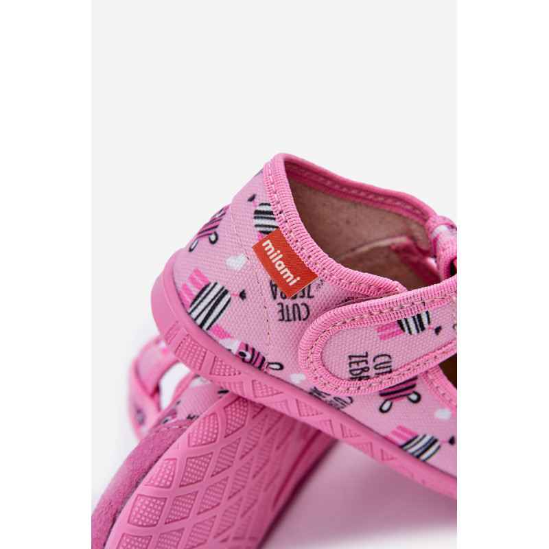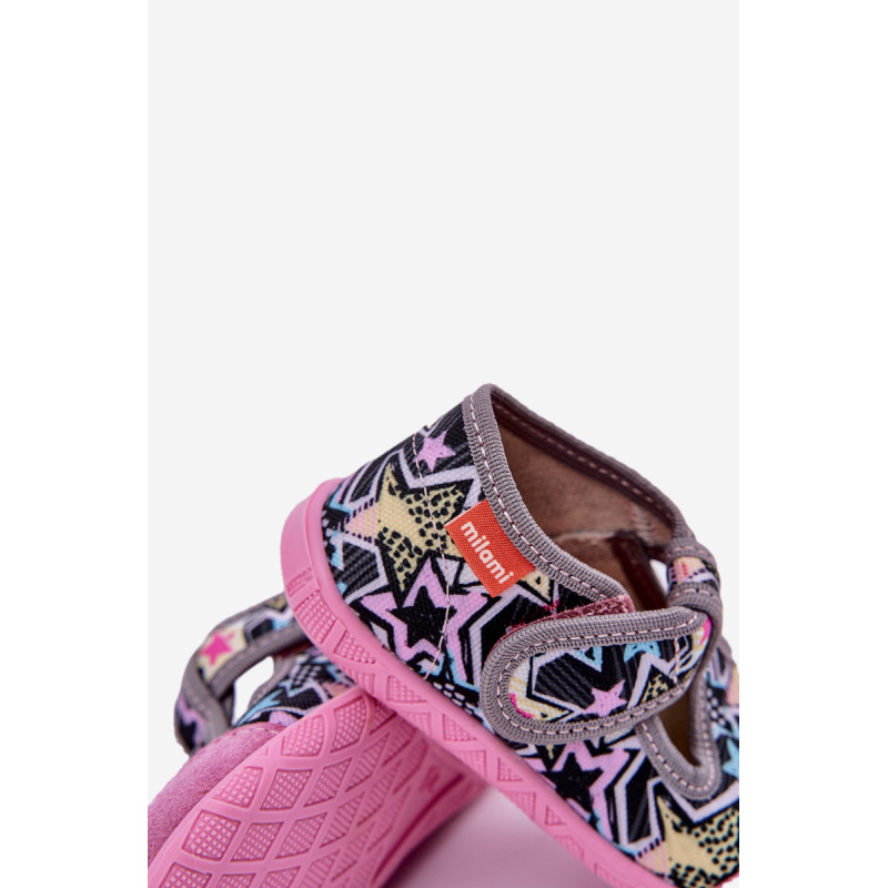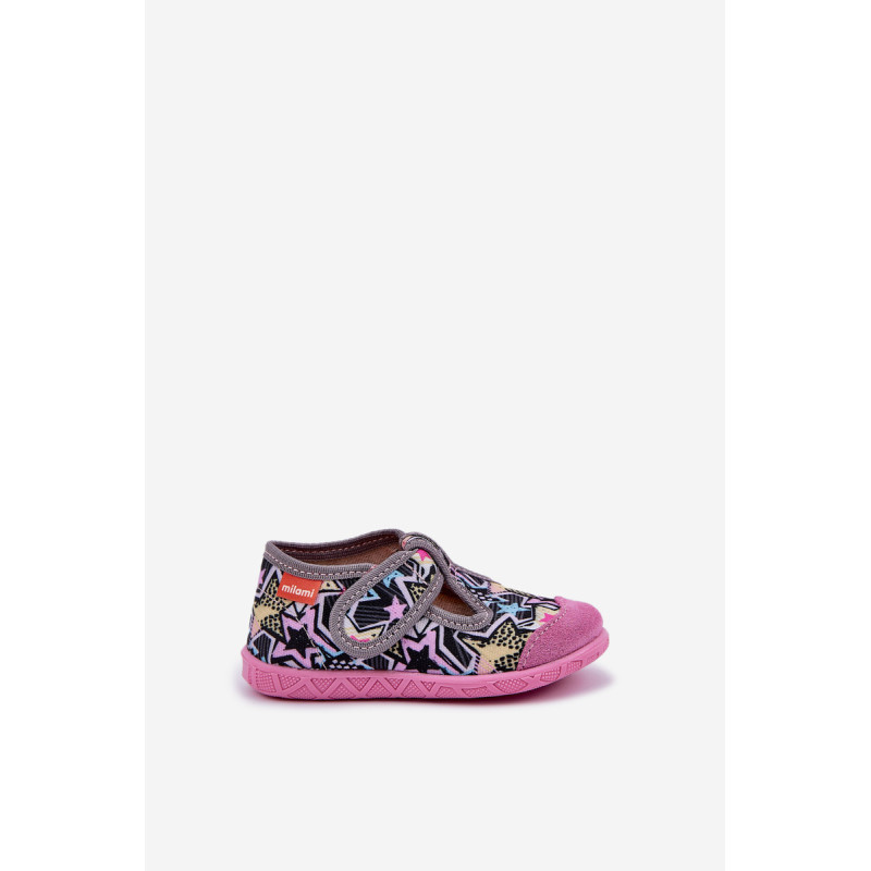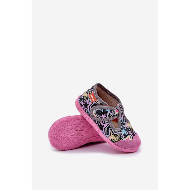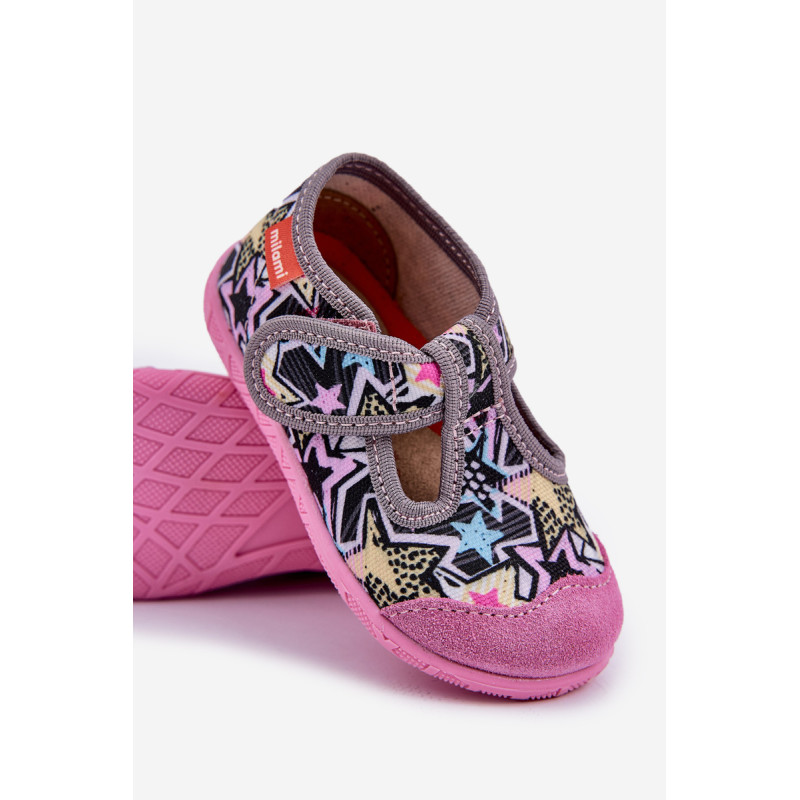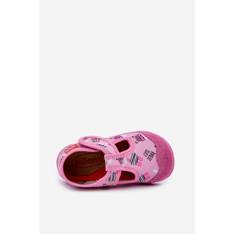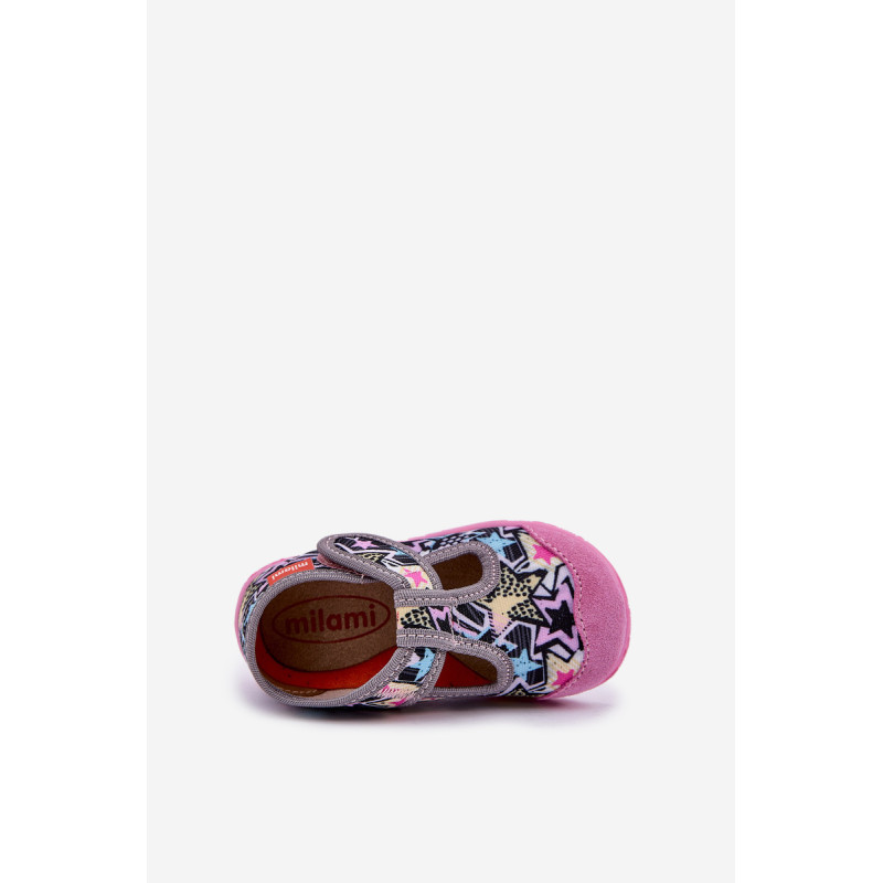 Milami prekės vaikų šlepetės sujungia komfortą ir funkcionalumą. Jos pagamintos iš tekstilės ir natūralios zomšos, užtikrinančios tinkamą pralaidumą orui ir atsparumą. Modelis su lipniais užsegimais palengvina greitą užsidėjimą ir nusiėmimą, taip pat garantuoja puikų pritaikymą vaiko pėdai. Aromatinė, anatominė padas puikiai palaiko natūralią pėdos formą, skatindama sveiką vystymąsi. Lanksti padas suteikia laisvę judesiams, o plačios nosys suteikia erdvės mažiems pirštams. Tai ideali šlepetės kasdienai, sujungiančios komfortą su rūpesčiu dėl vaiko pėdų sveikatos! Renkantis dydį, vadovaukitės dydžių lentele.