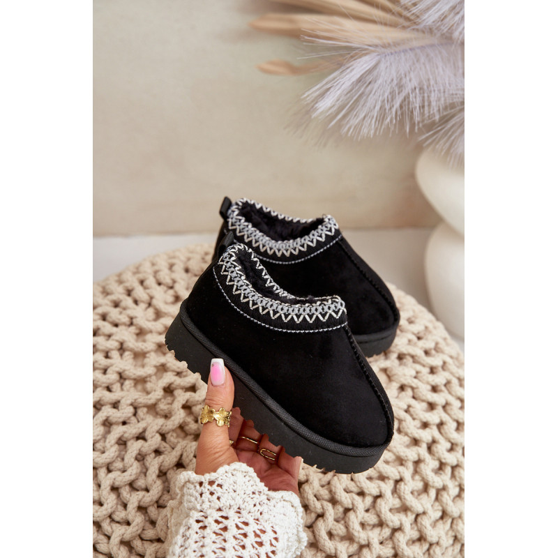 Vaikiški sniego batai su žavingu raštu viršutinėje koto dalyje. Viduje izoliuotas sintetinis, storas kailis, užtikrinantis šilumą šalčiausiomis dienomis. Pagaminta iš ekologiškos zomšos. Padėkite ant storo pado, kuris efektyviai izoliuoja nuo šaltos žemės. Šis modelis taip pat yra moteriškų dydžių. Sukurkite rinkinį mamai + vaikui! Rinkdamiesi dydį, žiūrėkite dydžių lentelę.