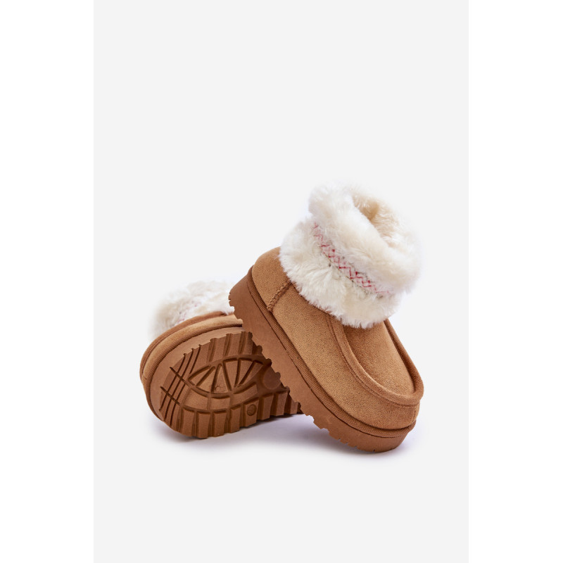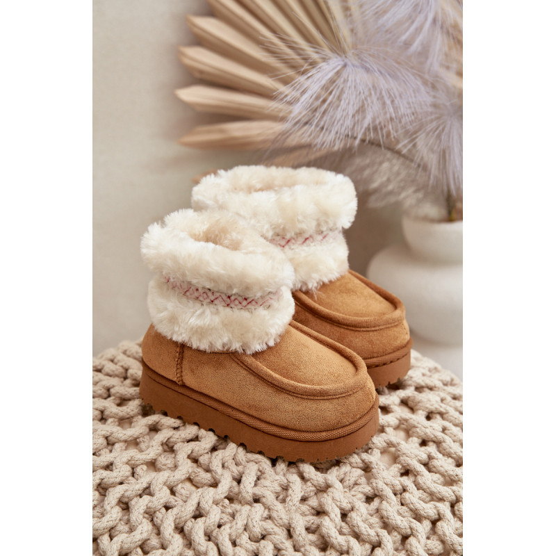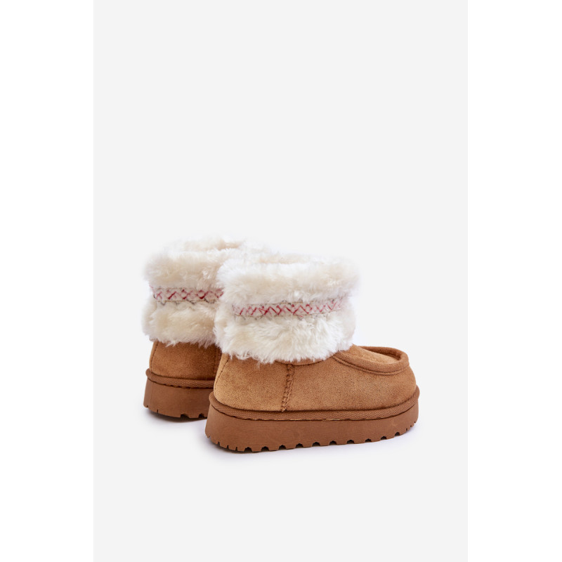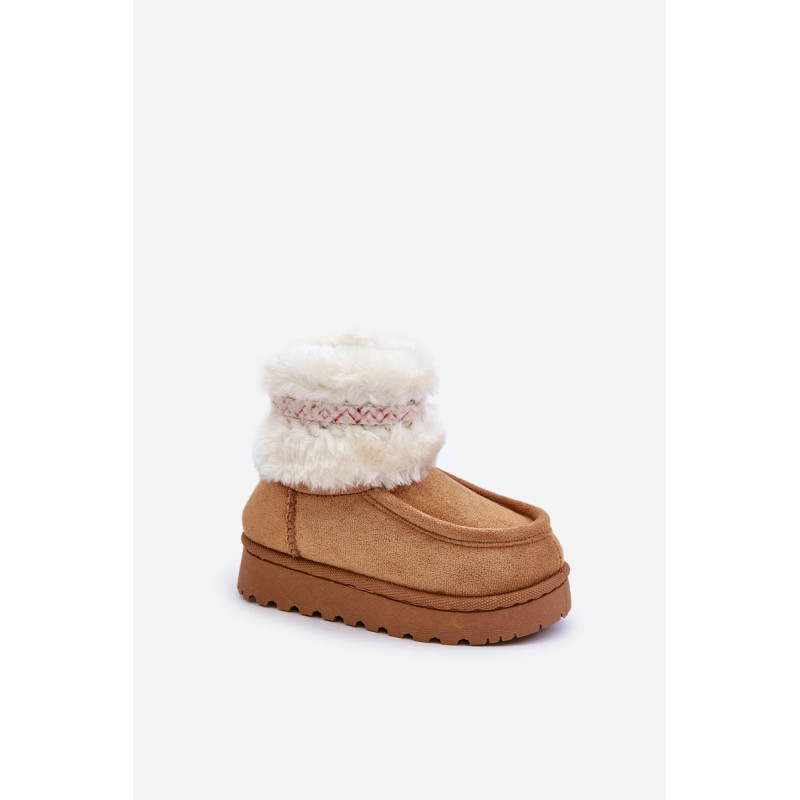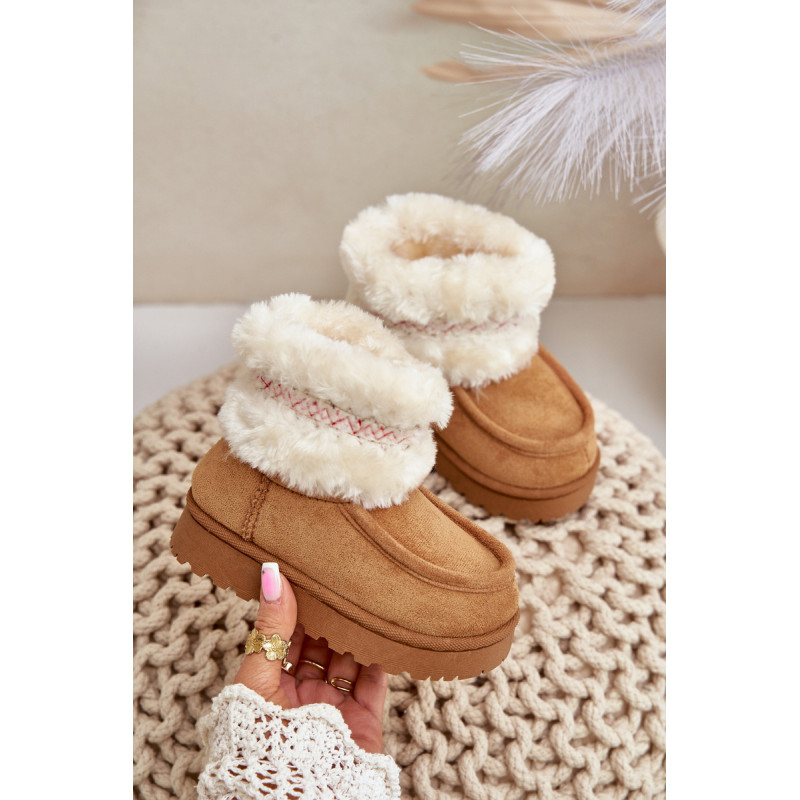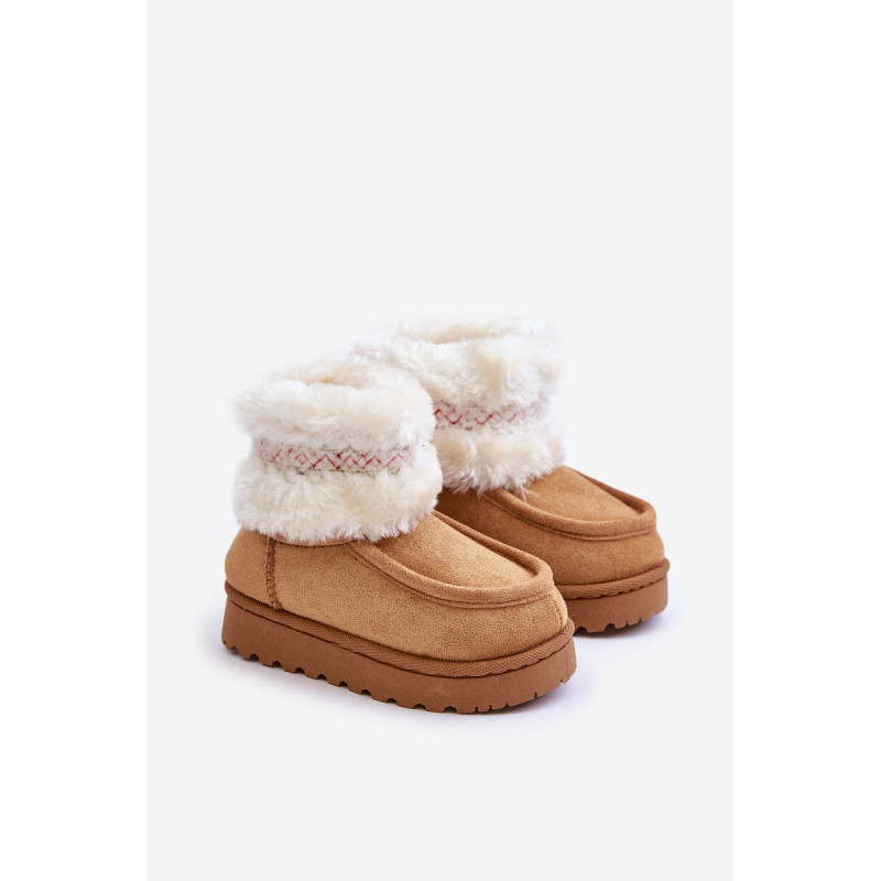 Vaikiški sniego batai iš ekosamčio yra ideali avalynė žiemos dienoms. Jie yra ant guminės pado, kuris užtikrina gerą sukibimą slidžiose paviršiuose. Viršus, papuoštas kailiu ir mielu raštu, suteikia unikalų charakterį, o šiltas vidus užtikrina komfortą ir šilumą šaltomis dienomis. Tai praktiškas ir madingas pasirinkimas žiemos nuotykiams lauke. Renkantis dydį, vadovaukitės dydžių lentele.
