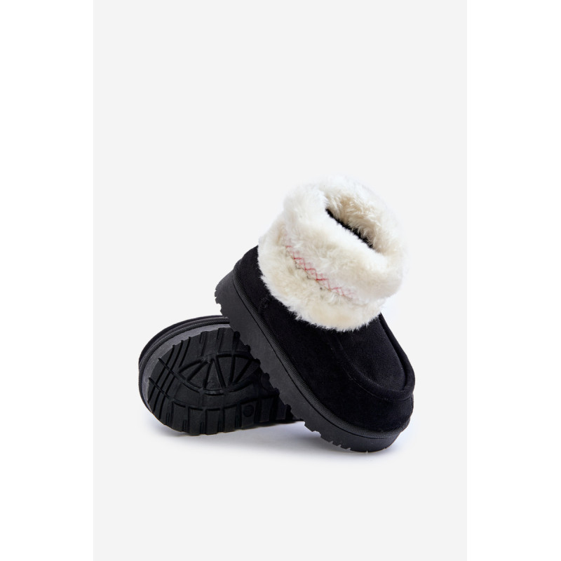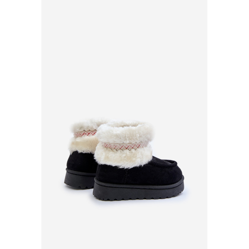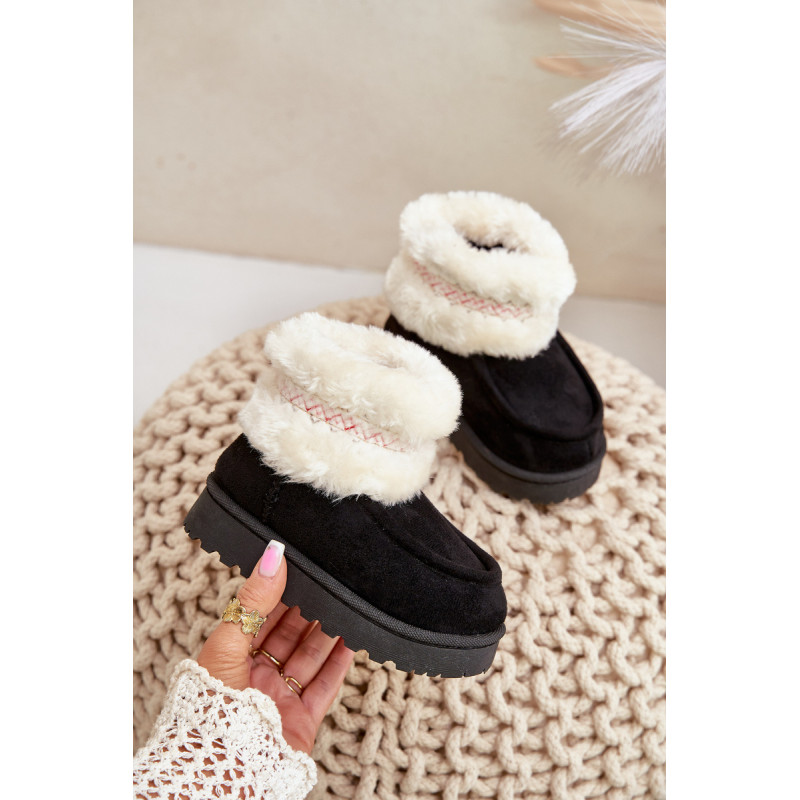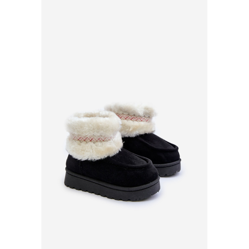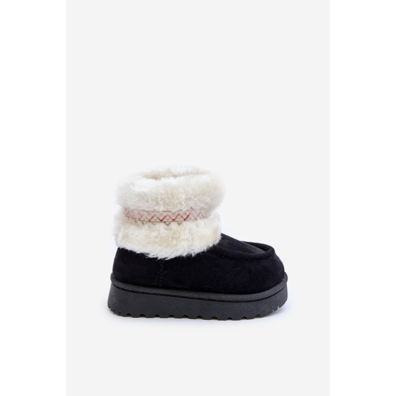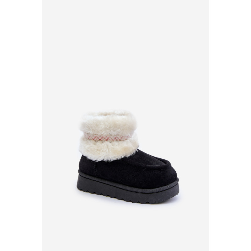 Vaikiški sniego batai iš ekosamčio yra ideali avalynė žiemos dienoms. Jie yra ant guminės pado, kuris užtikrina gerą sukibimą slidžiose paviršiuose. Viršus, papuoštas kailiu ir mielu raštu, suteikia unikalų charakterį, o šiltas vidus užtikrina komfortą ir šilumą šaltomis dienomis. Tai praktiškas ir madingas pasirinkimas žiemos nuotykiams lauke. Renkantis dydį, vadovaukitės dydžių lentele.