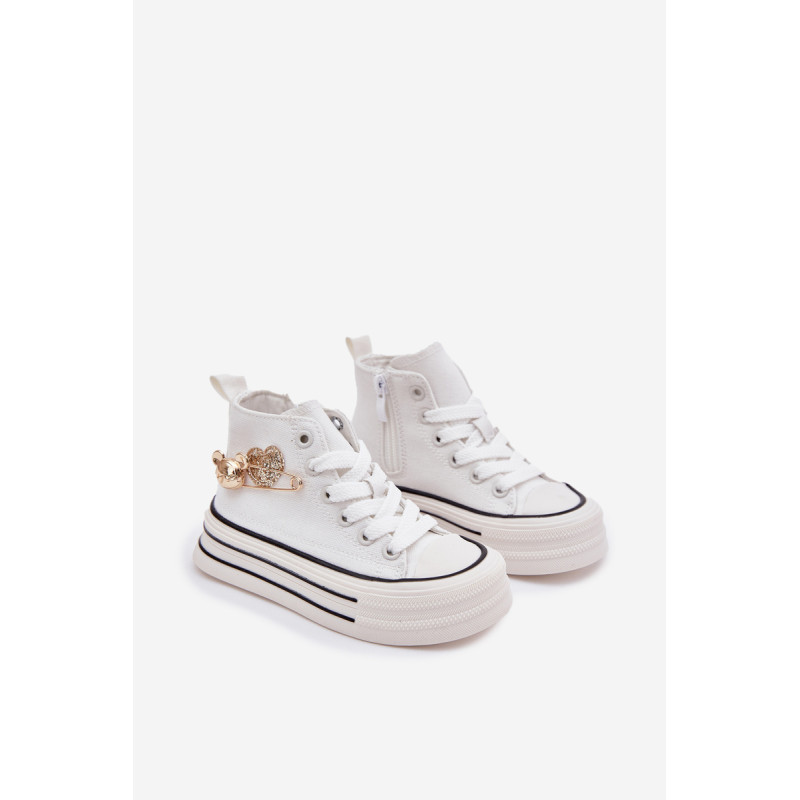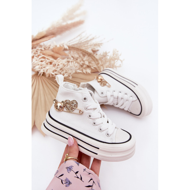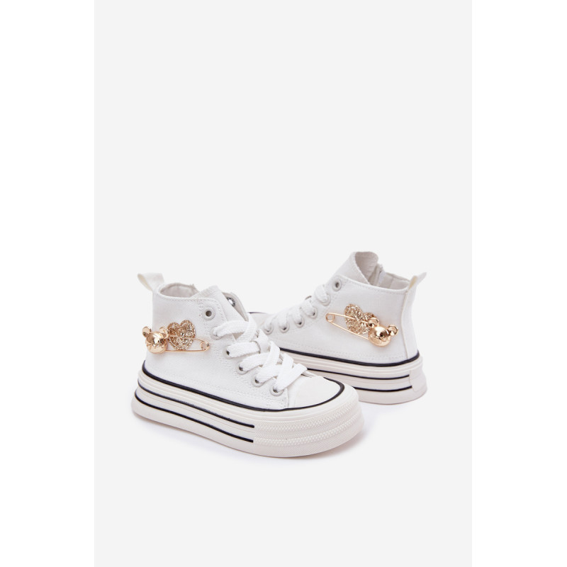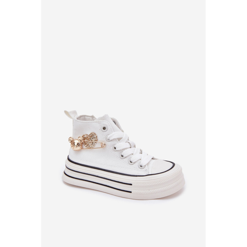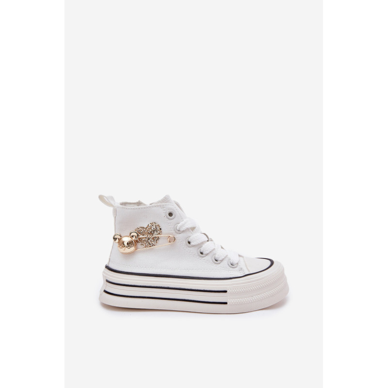 Vaikiški tekstiliniai sportbačiai, sumontuoti ant storos pado, yra patogi ir stilinga kasdienio nešiojimo galimybė. Šnypštimo modelis su papildomu užtrauktuku šone užtikrina lengvą užsidėjimą ir puikų pritaikymą. Dekoratyvinis auksinis segtukas ir širdelės šone suteikia ypatingo žavesio. Platūs, apvalūs pirštai užtikrina komfortą visą dieną, todėl jie yra ideali pasirinkimo galimybė darželiui, mokyklai ar žaidimams lauke. Renkantis dydį, vadovaukitės dydžių lentele.
