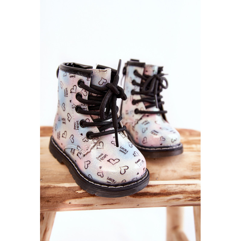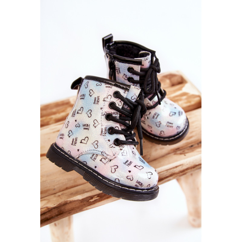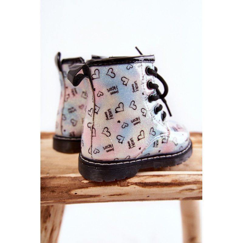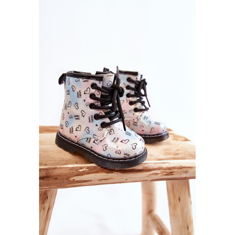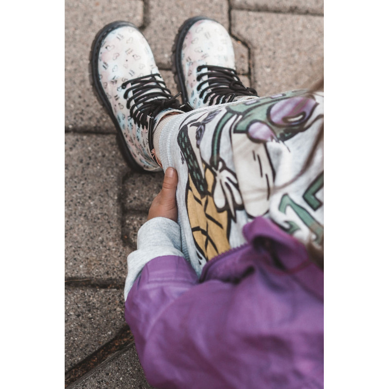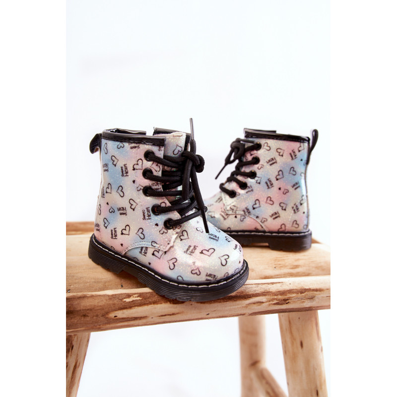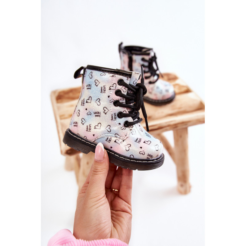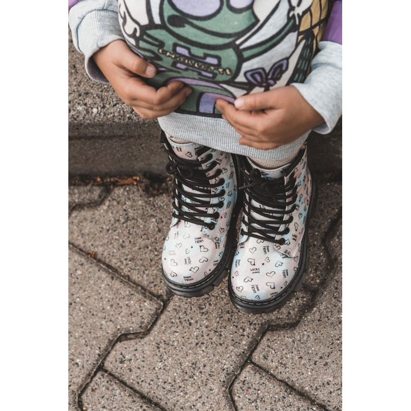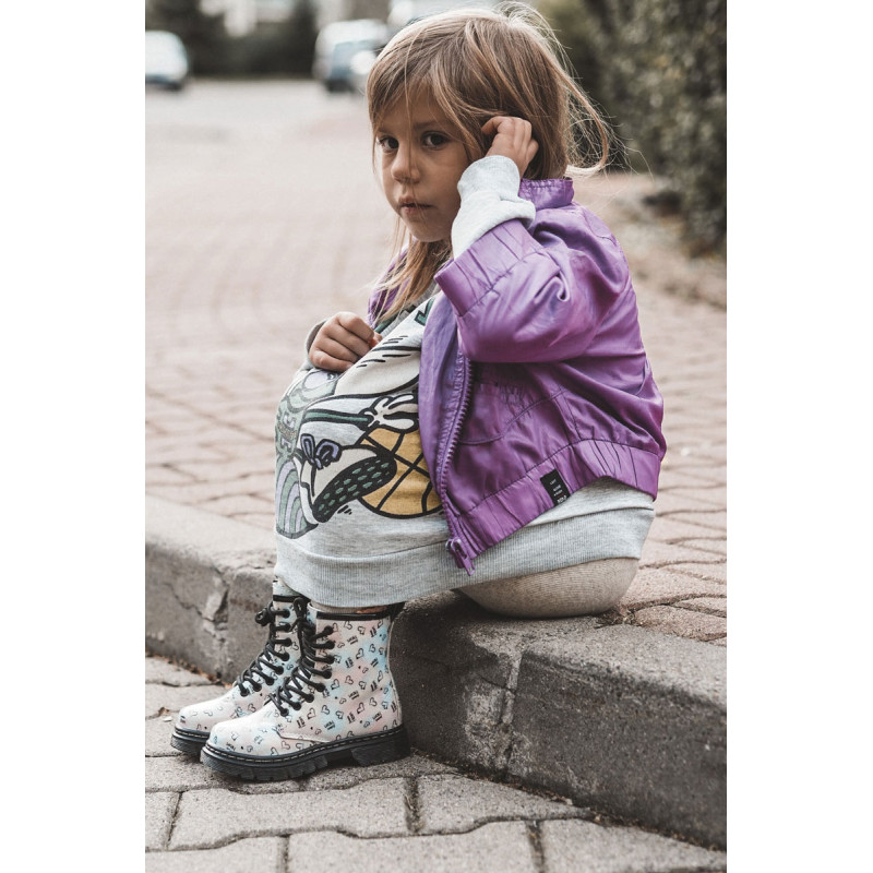 Gražūs, mergaitiški batai yra pagaminti iš ekologiškos odos su madingu raštu. Be to, jie dekoruoti blizgučiais. Batai turi užtrauktuką šone viršutinėje dalyje ir klasikinį suvarstymą. Batai montuojami ant plokščio kulno ir platformos su neslystančiu padu. Be to, jis yra siuvamas siūlais. Viduje jie buvo apšiltinti batų antklode. Puikus modelis Jūsų mažyliui! Renkantis dydį, naudokite dydžių lentelę.