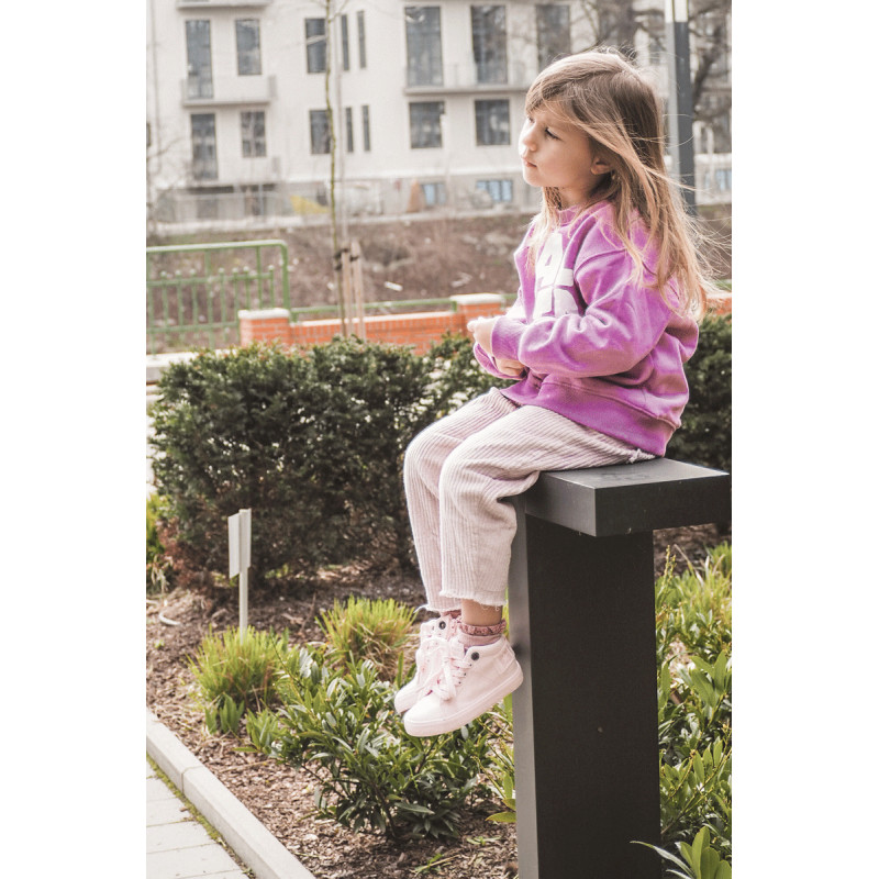 Vaikiški aukšti sportbačiai Big Star yra pagaminti iš tekstilės. Batai dedami ant guminės platformos su neslidžiu padu. Viršutinės dalies gale yra dekoratyvinė juostelė su Big Star logotipu. Sutvirtintas kulno skaitiklis užtikrins tinkamą pėdos stabilizavimą. Šis kulkšnis siekiantis modelis puikiai tiks pavasario-rudens sezonui. Rinkdamiesi dydį žiūrėkite dydžių lentelę.