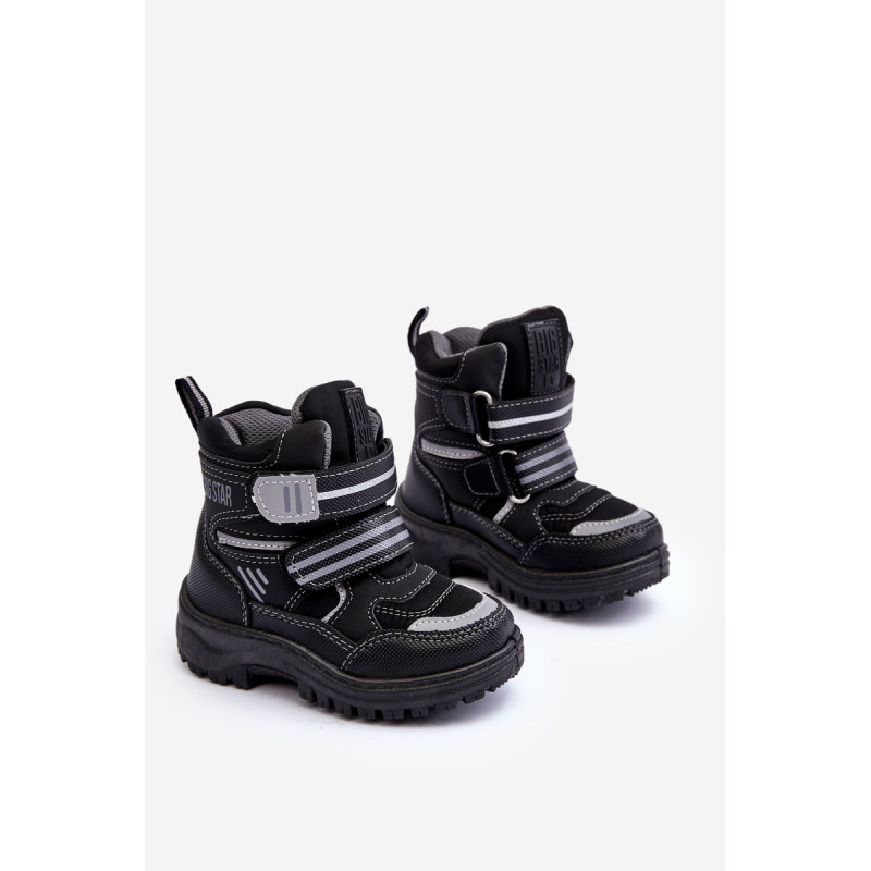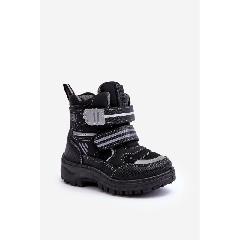 Puikūs žieminiai batai jūsų mažyliui! Šis modelis pagamintas iš tekstilės medžiagos ir eko odos derinio. Viduje jis išklotas kailiu. Jis pastatytas ant platformos, kuri veiksmingai apsaugo nuo šaltos žemės. Modelis turi velcro užsegimą. Jų turi būti jūsų vaiko spintoje! Rinkdamiesi dydį, vadovaukitės dydžių lentele.
